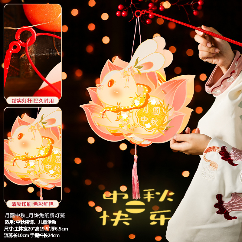 中秋节灯笼2025新款兔子花灯手工diy材料包 儿童手提发光卡通宫灯