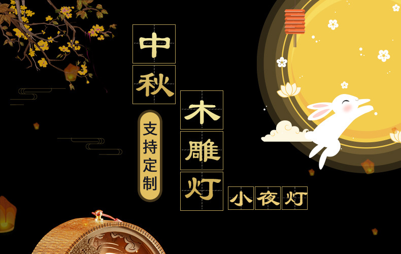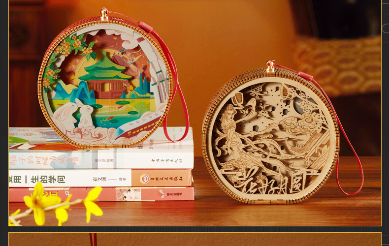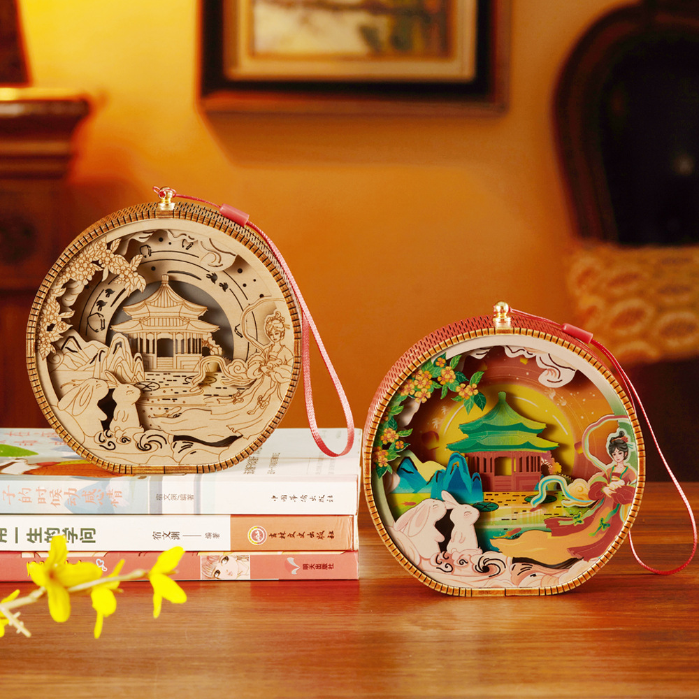 创意文创礼品中秋节卧室氛围3d小夜灯家用装饰摆件嫦娥木雕灯定制