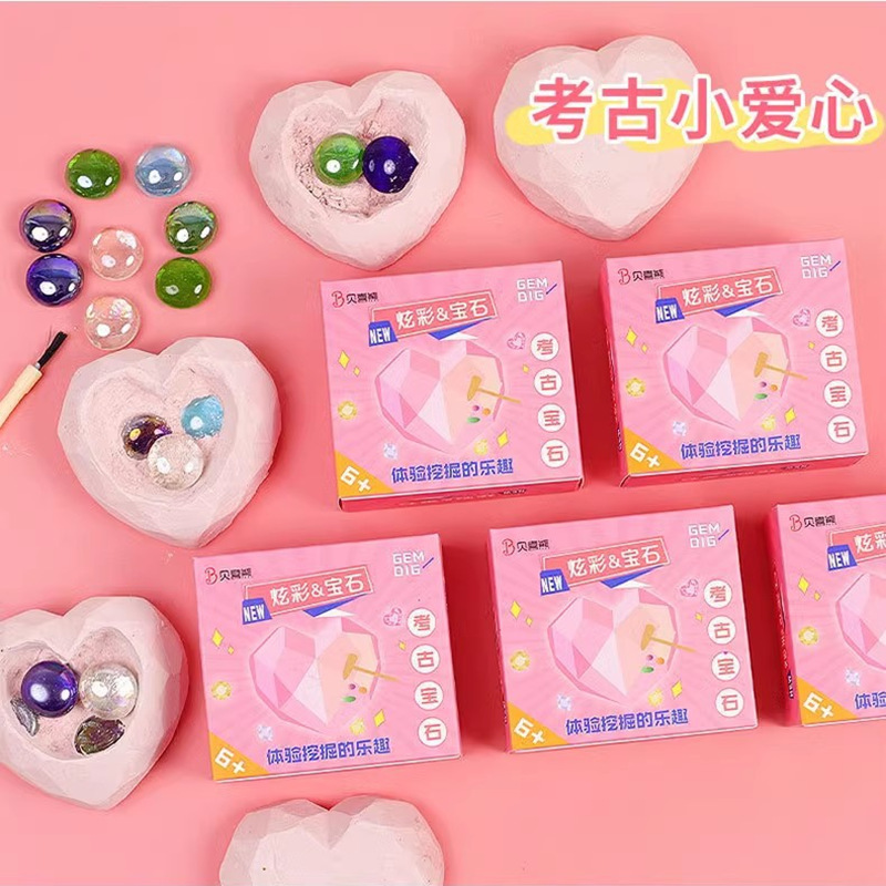 热卖儿童diy手工考古挖掘玩具 男女孩挖宝石恐龙蛋化石盲盒摆地摊