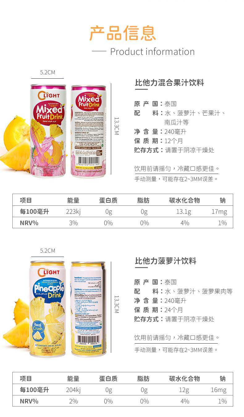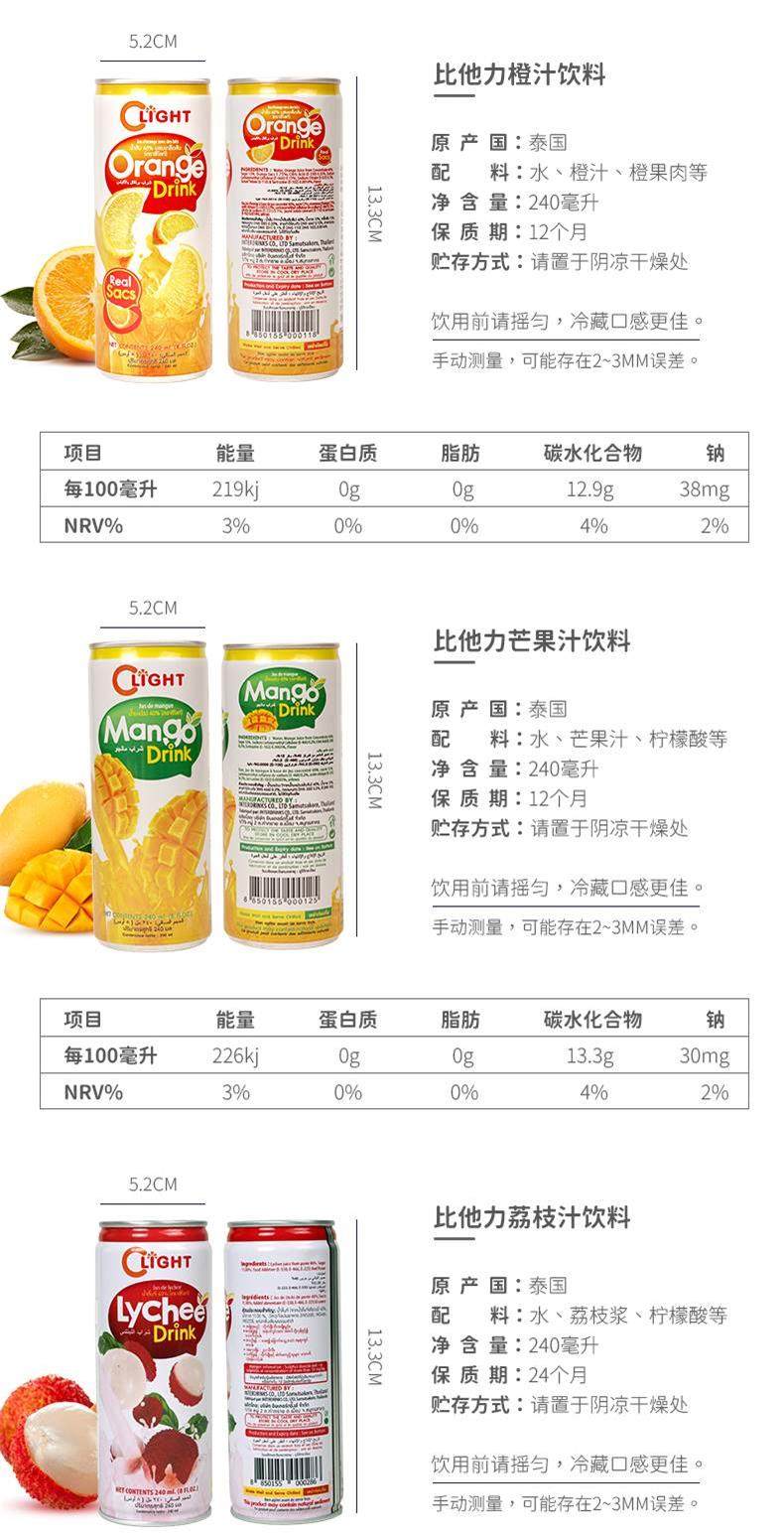 比他力泰国原装进口240ml饮料果汁荔枝番石榴橙汁芒果混合口味