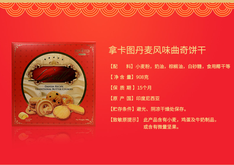 拿卡图丹麦风味黄油曲奇曲奇饼干礼盒年货进口礼盒装送礼伴手礼