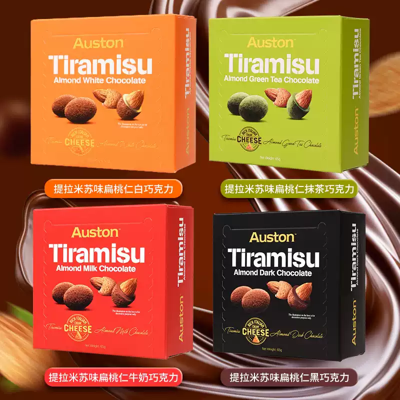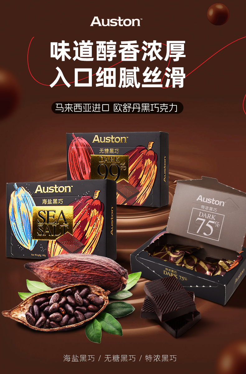 马来西亚Auston欧舒丹纯黑苦巧克力提拉米苏扁桃仁夹心巧克力零食