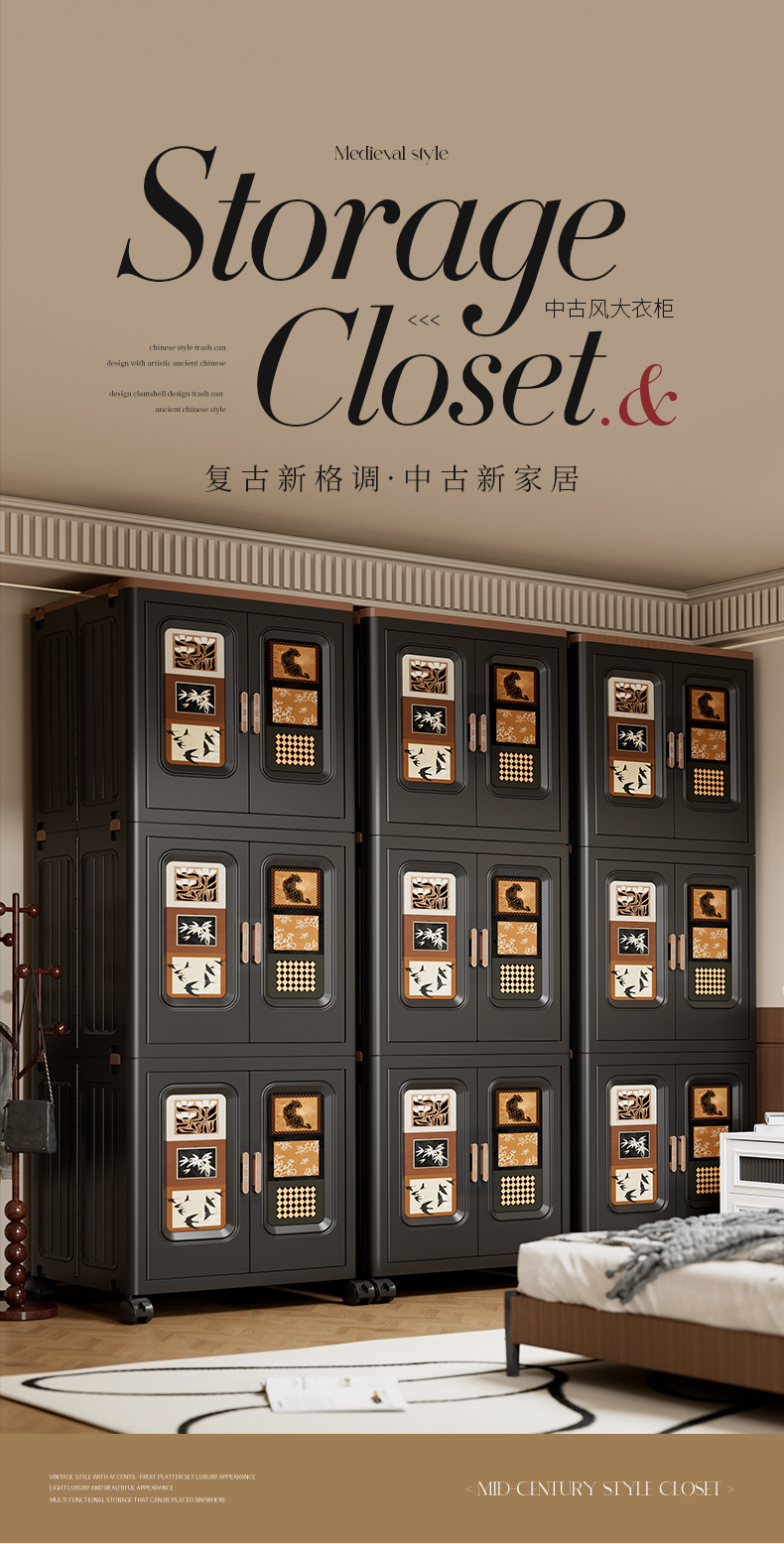 衣服中古风收纳箱大容量翻盖整理箱折叠储物箱衣服被子复古收纳柜