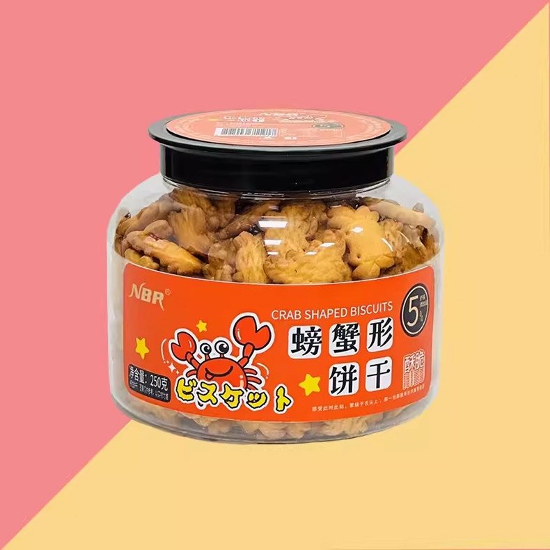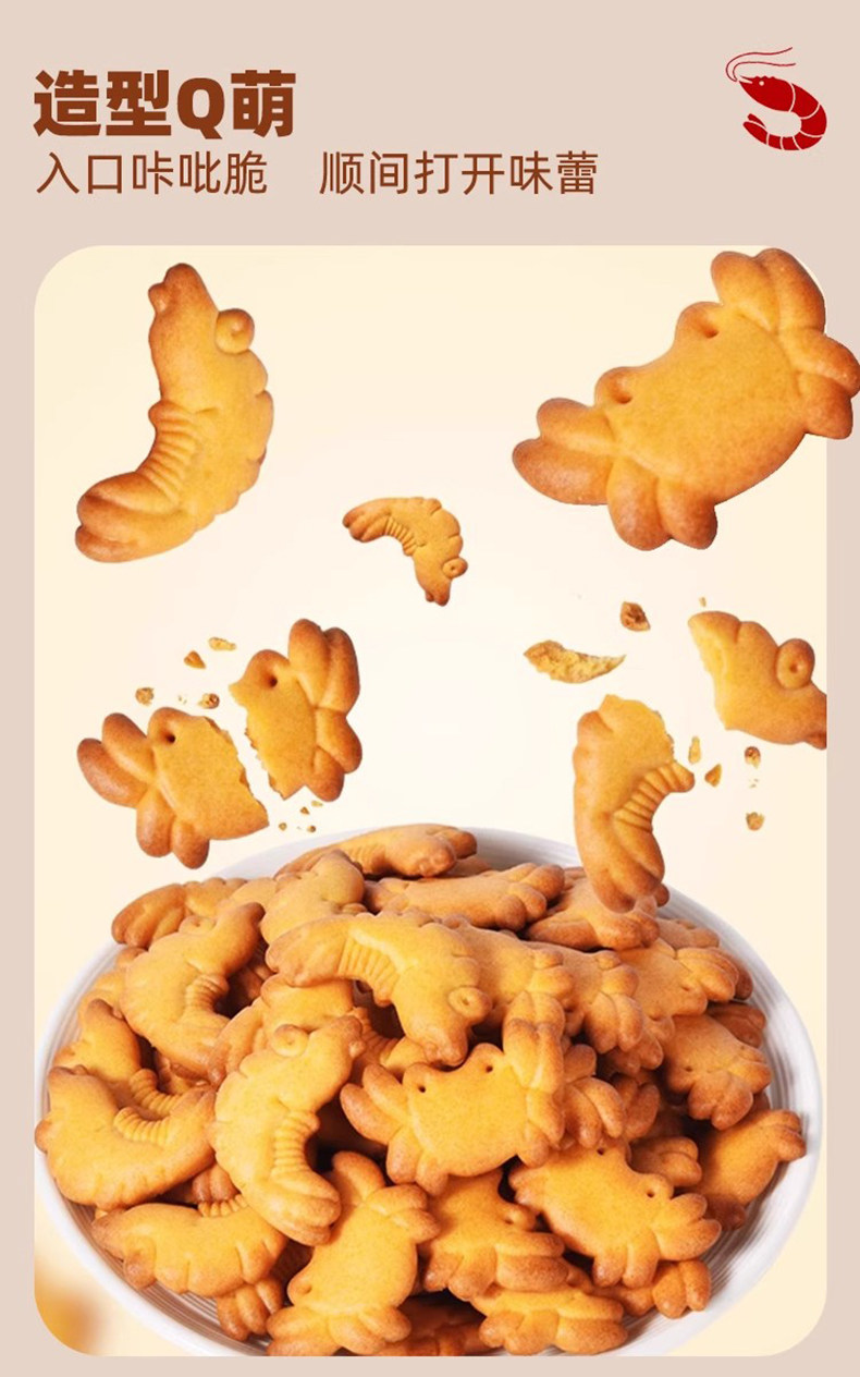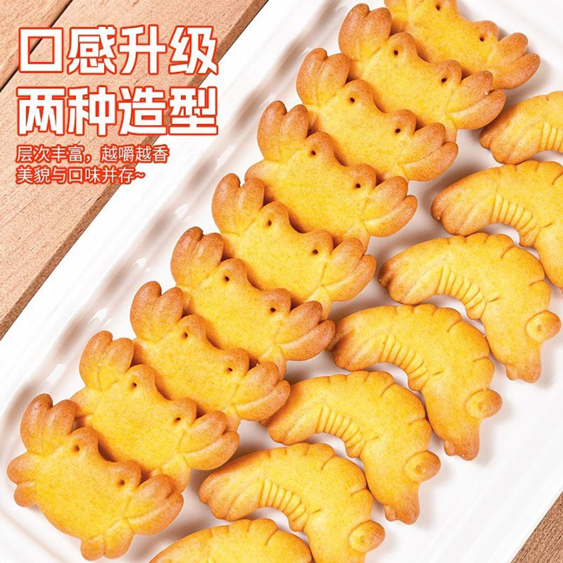 众星趣味造型饼干250g罐装海盐小圆饼螃蟹形虾形饼干网红儿童零食