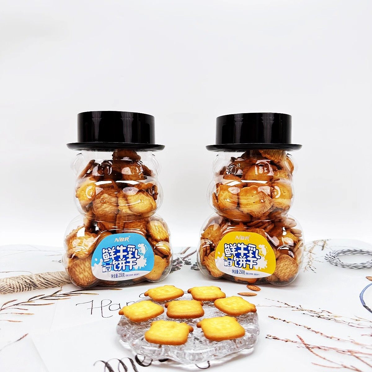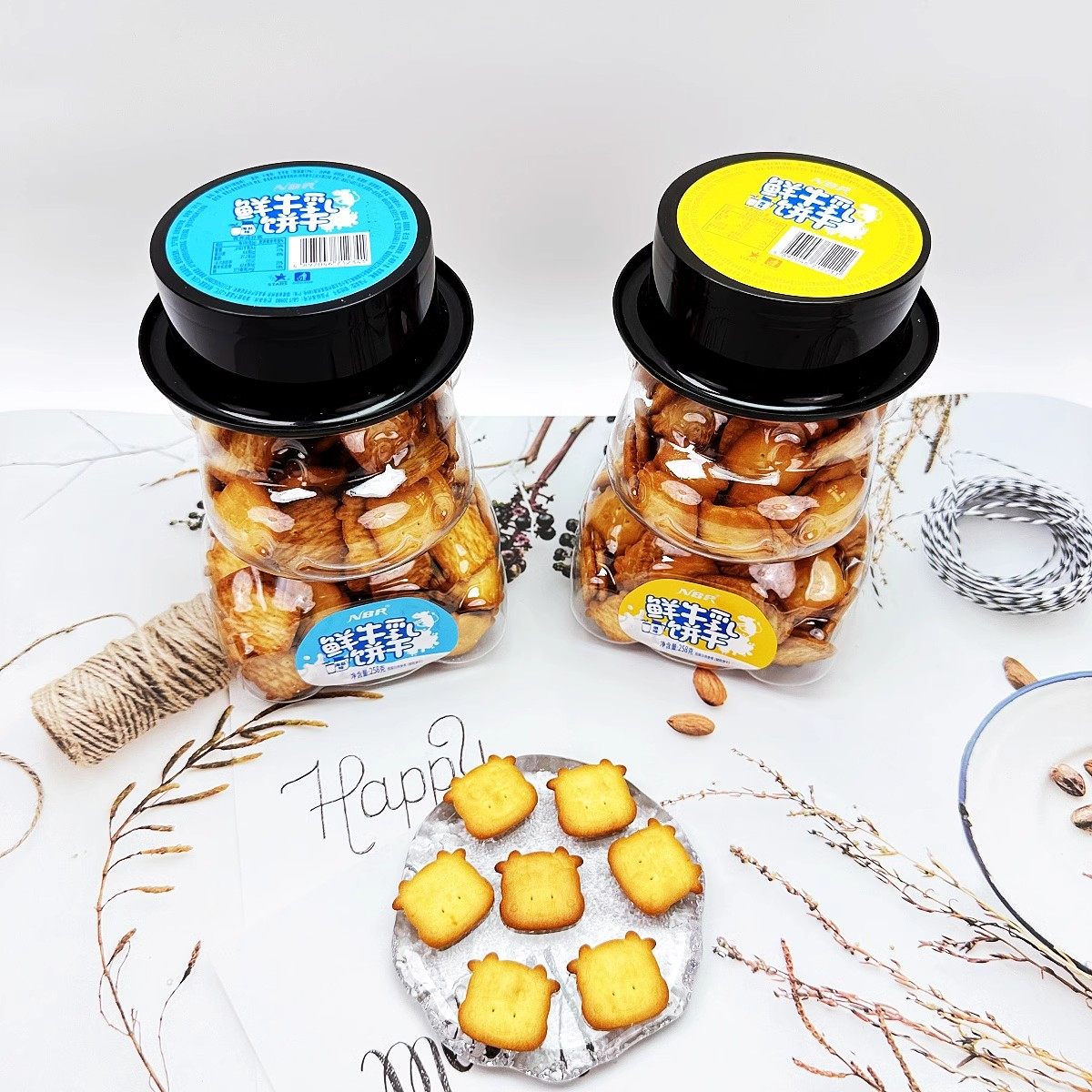 香港众星NBR鲜牛乳海盐味原味饼干258g 高罐小牛造型儿童零食批发