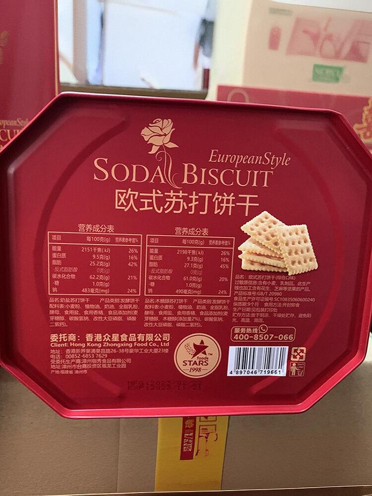 香港众星 欧式苏打饼干600g铁桶装 结婚送女朋友礼物曲奇食品礼包