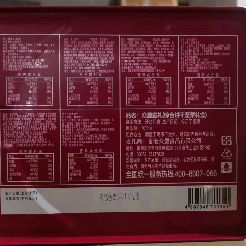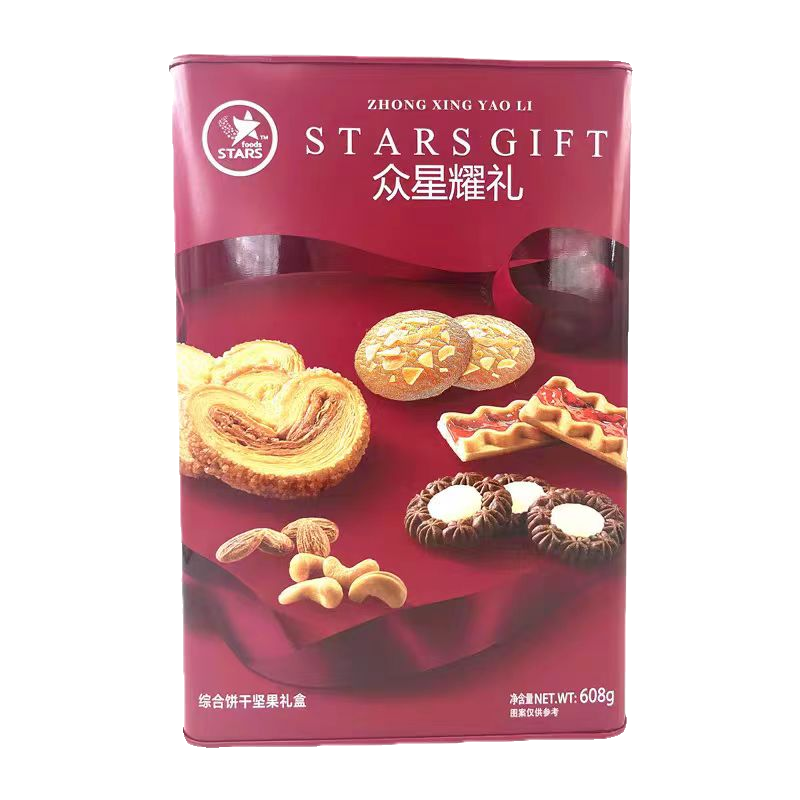 香港众星耀礼综合饼干坚果礼盒608g铁罐装结婚喜庆节日伴手礼蝴蝶
