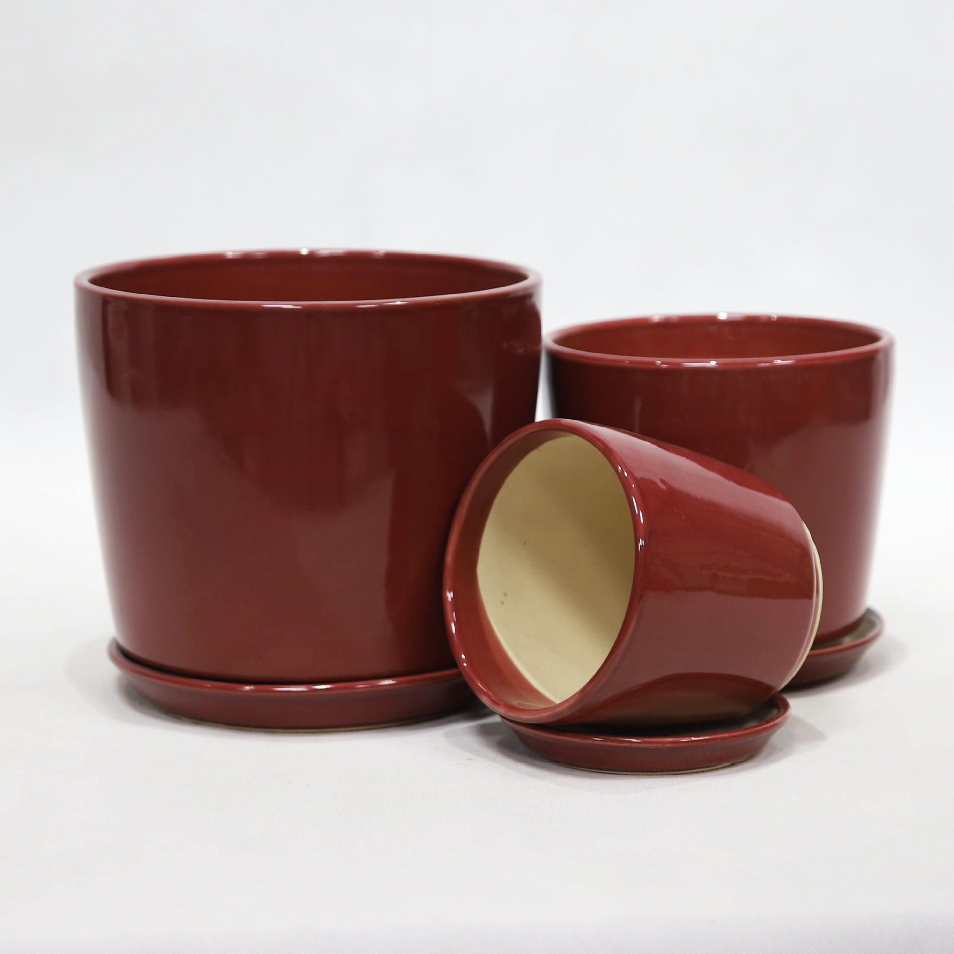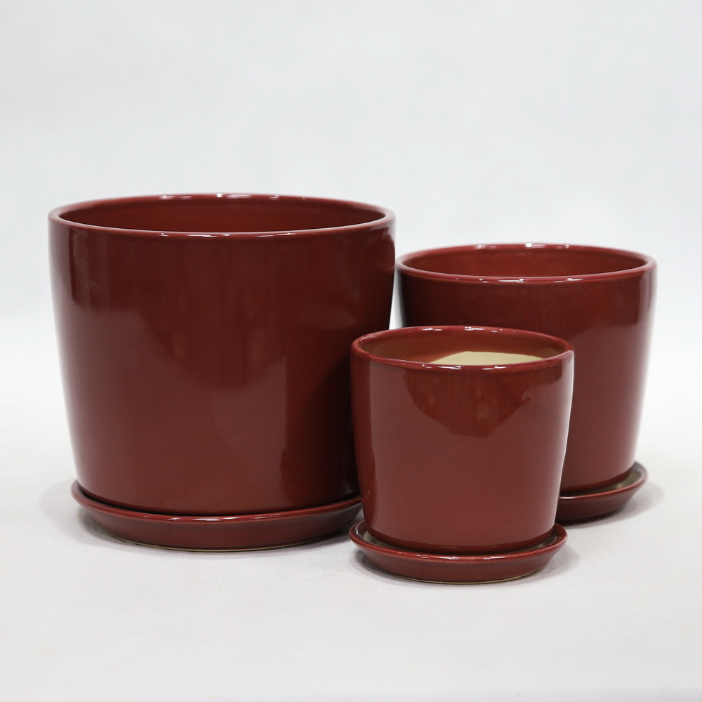 陶瓷花盆三件套家居商场摆饰多肉绿植盆栽简约时尚潮流030玛瑙红