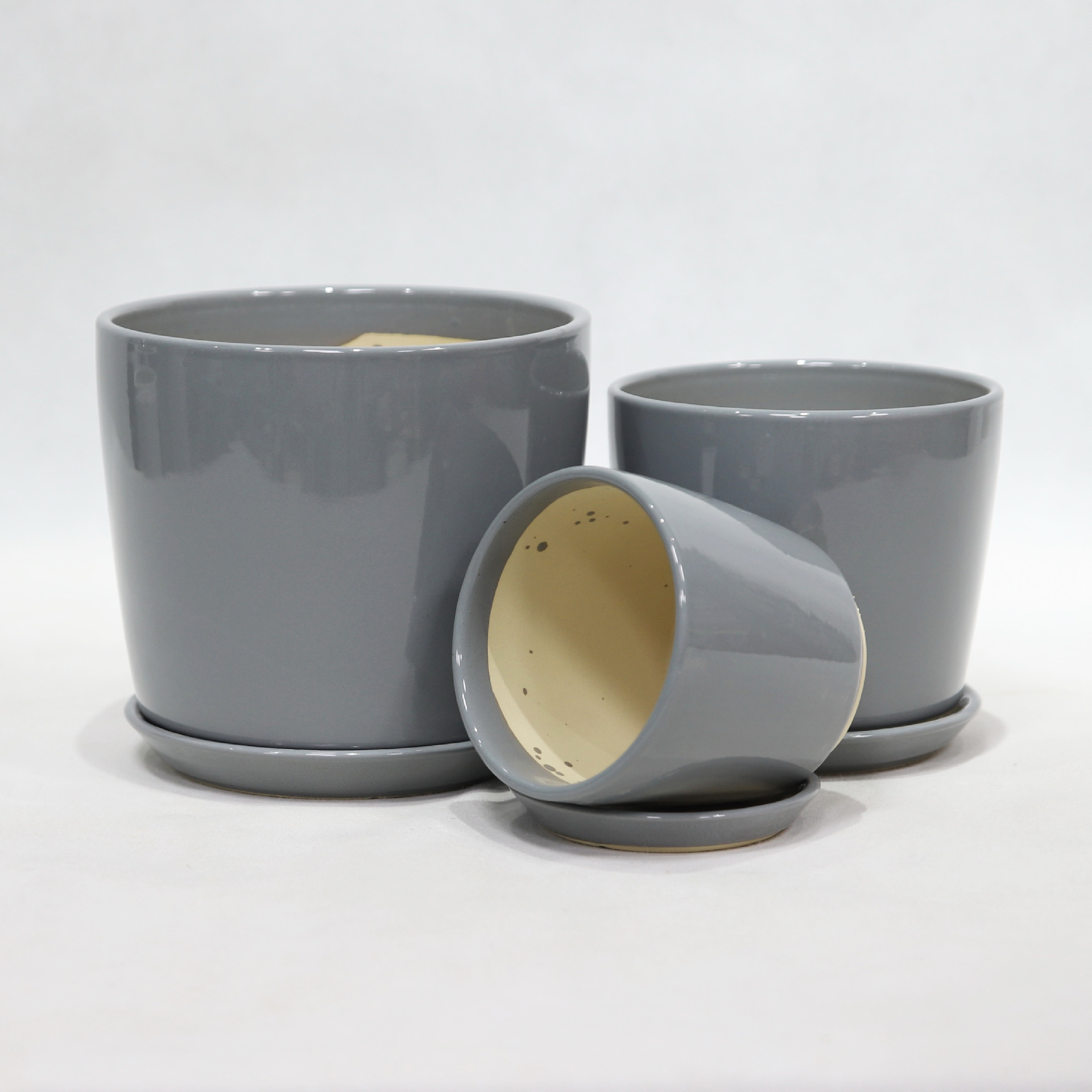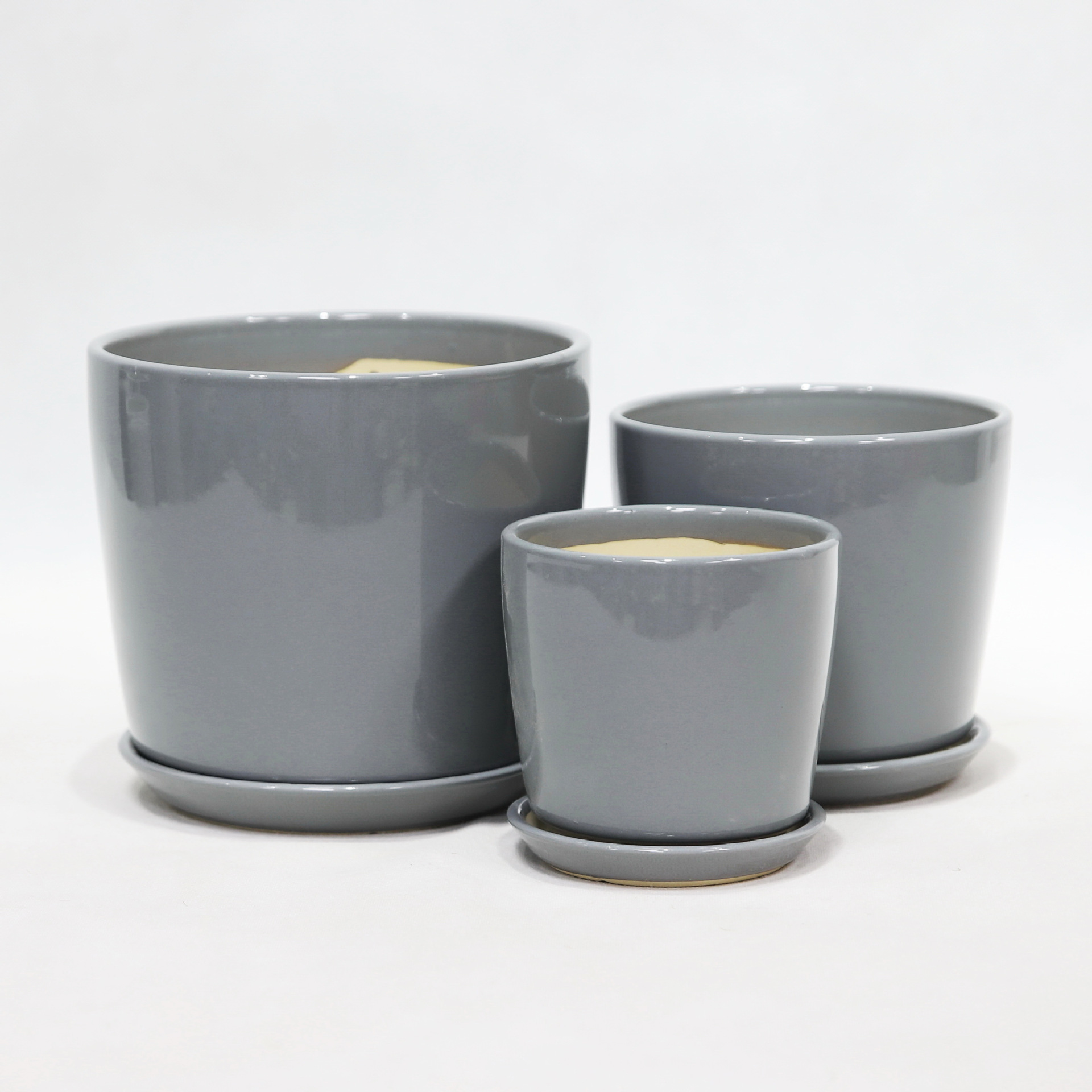 陶瓷花盆三件套多肉绿植盆栽办公桌园艺商场摆饰时尚潮流030灰