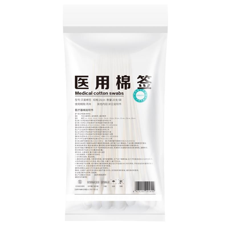 医用大头棉签检查上药用口腔清洁一次性20cm长消毒棉花棒