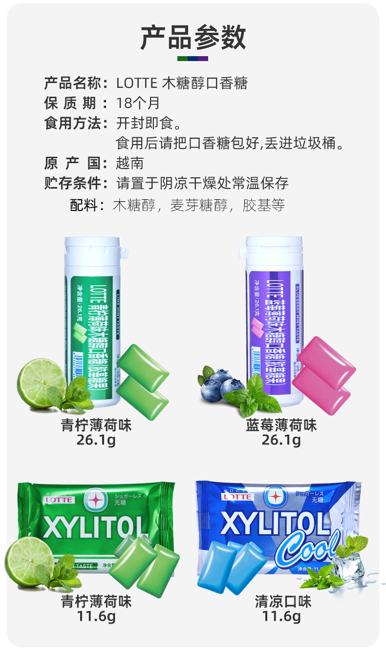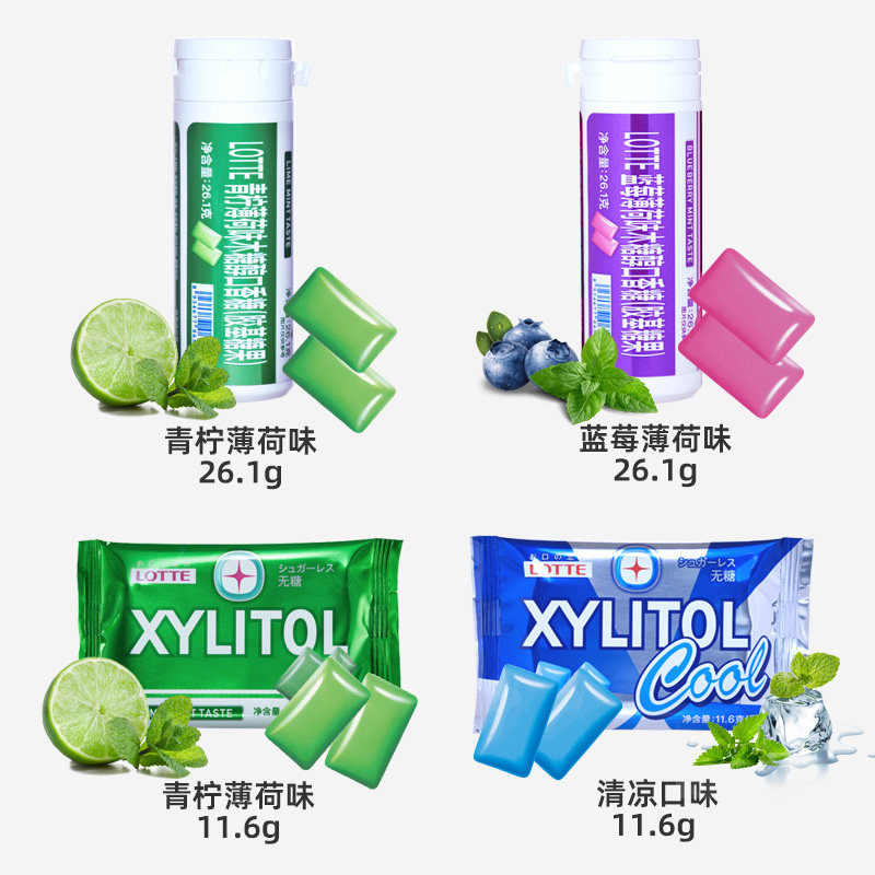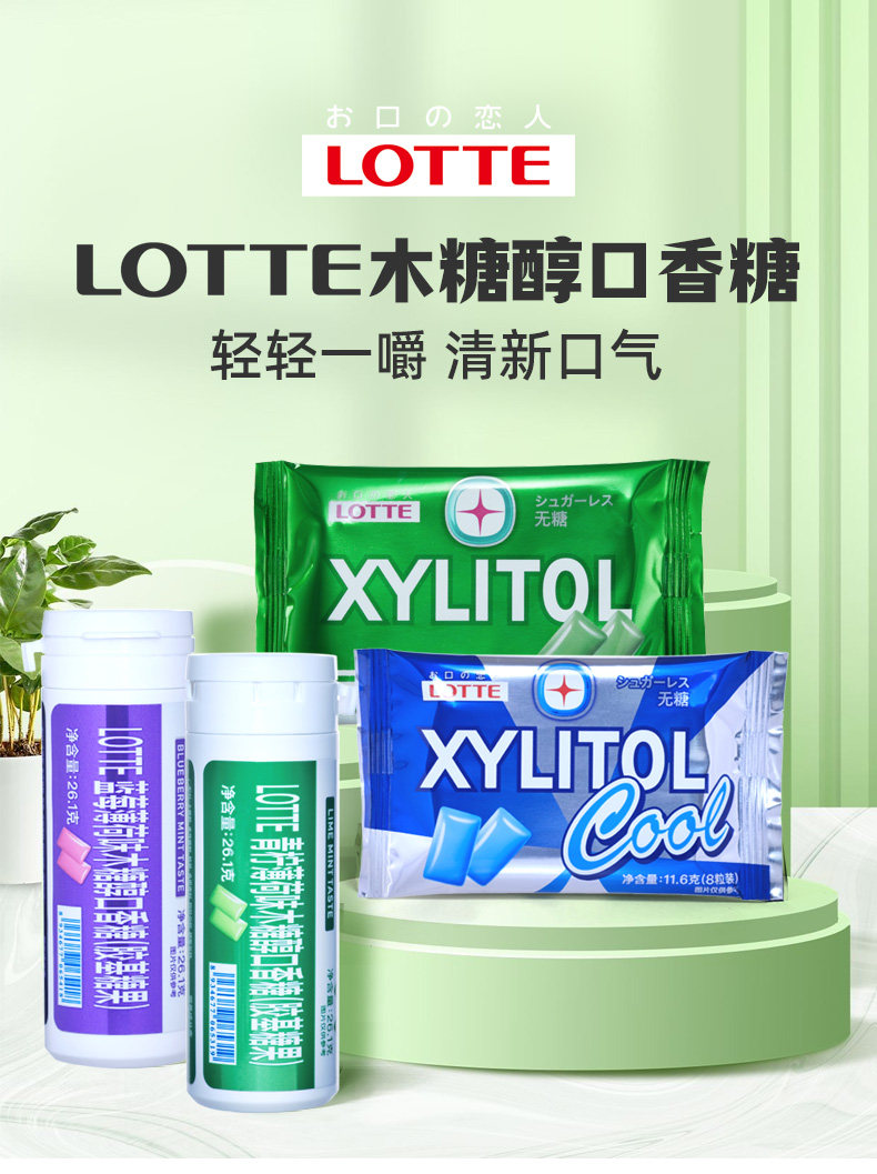 进口LOTTE乐天木糖醇口香糖青柠薄荷味清新口气