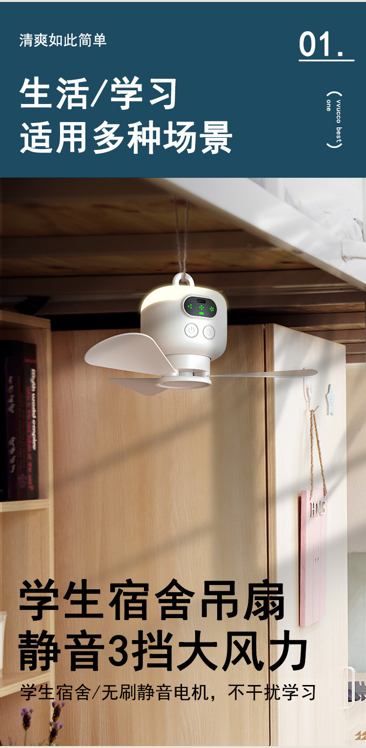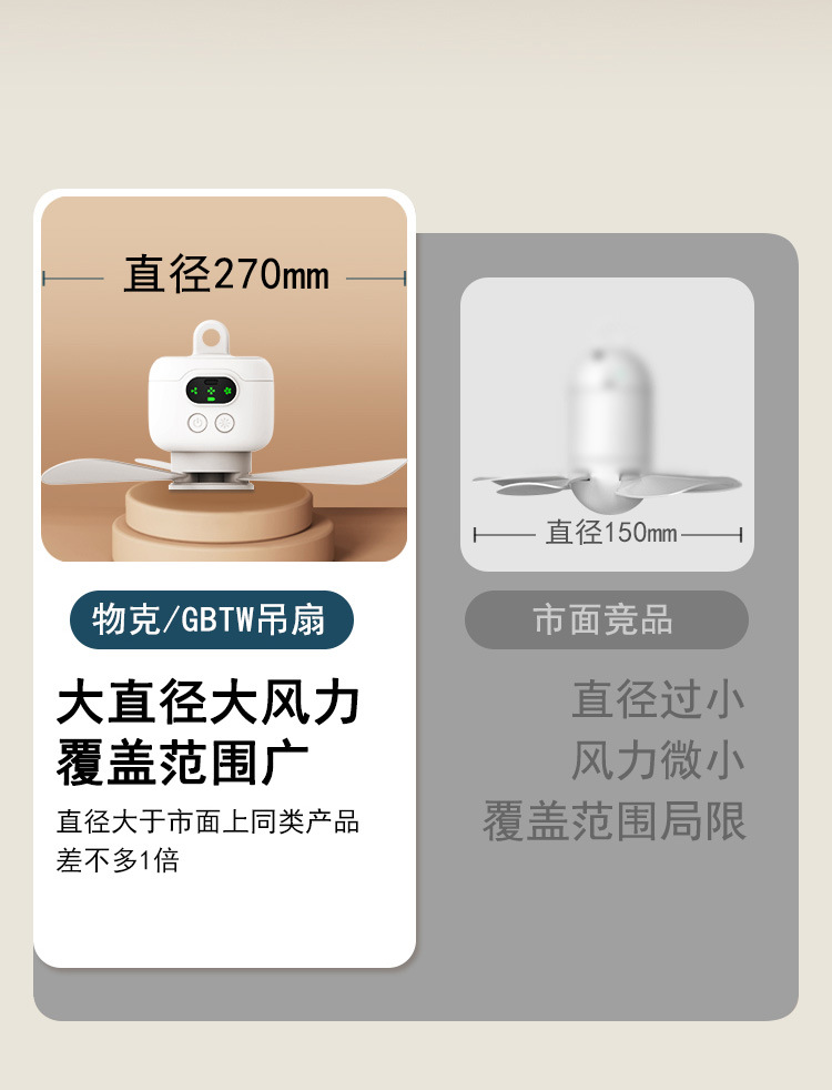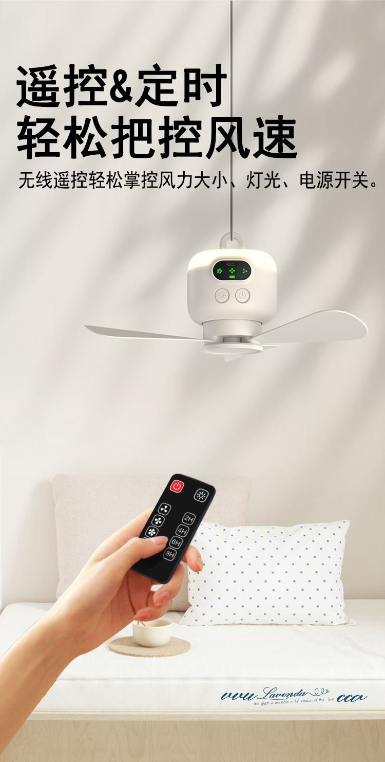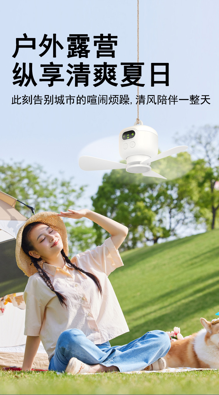 物克USB充电小吊扇露营风扇宿舍带夜灯户外便携超长续航大风力