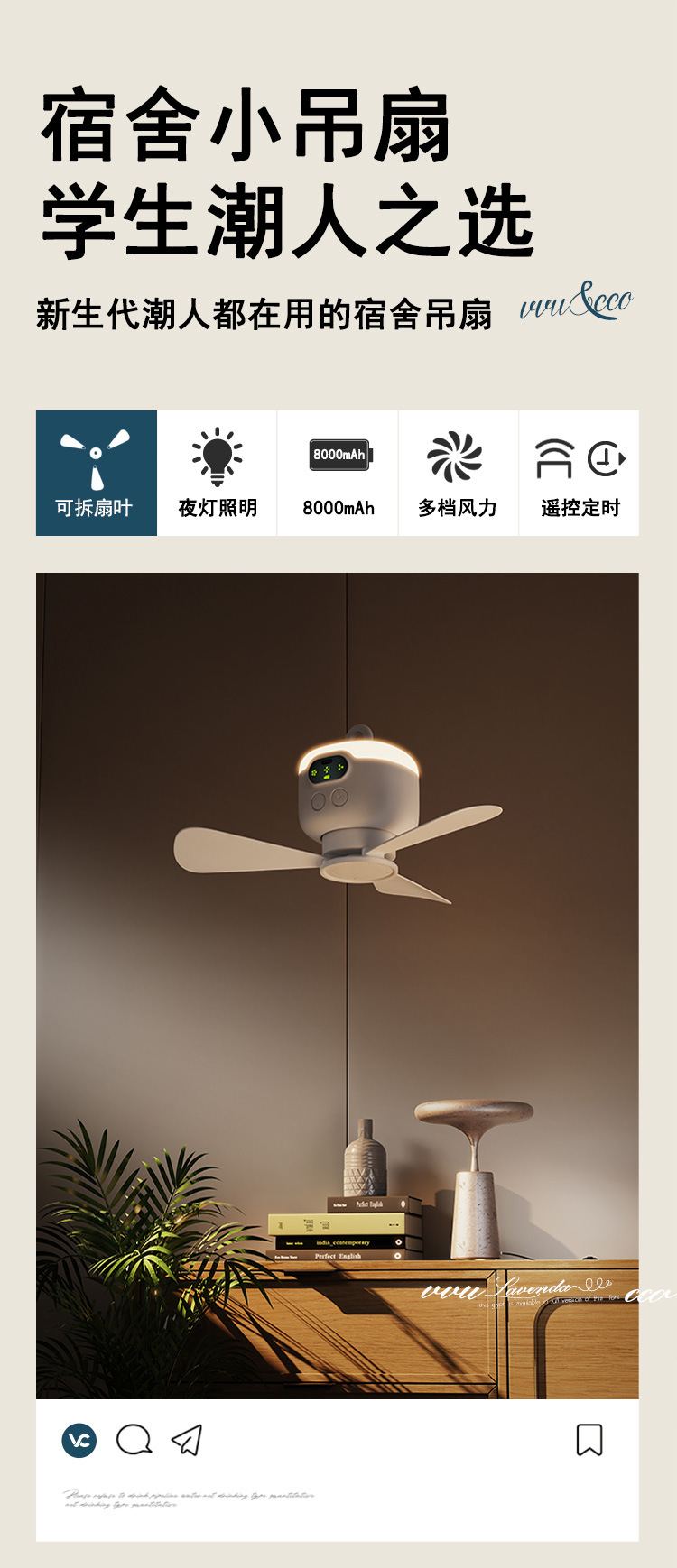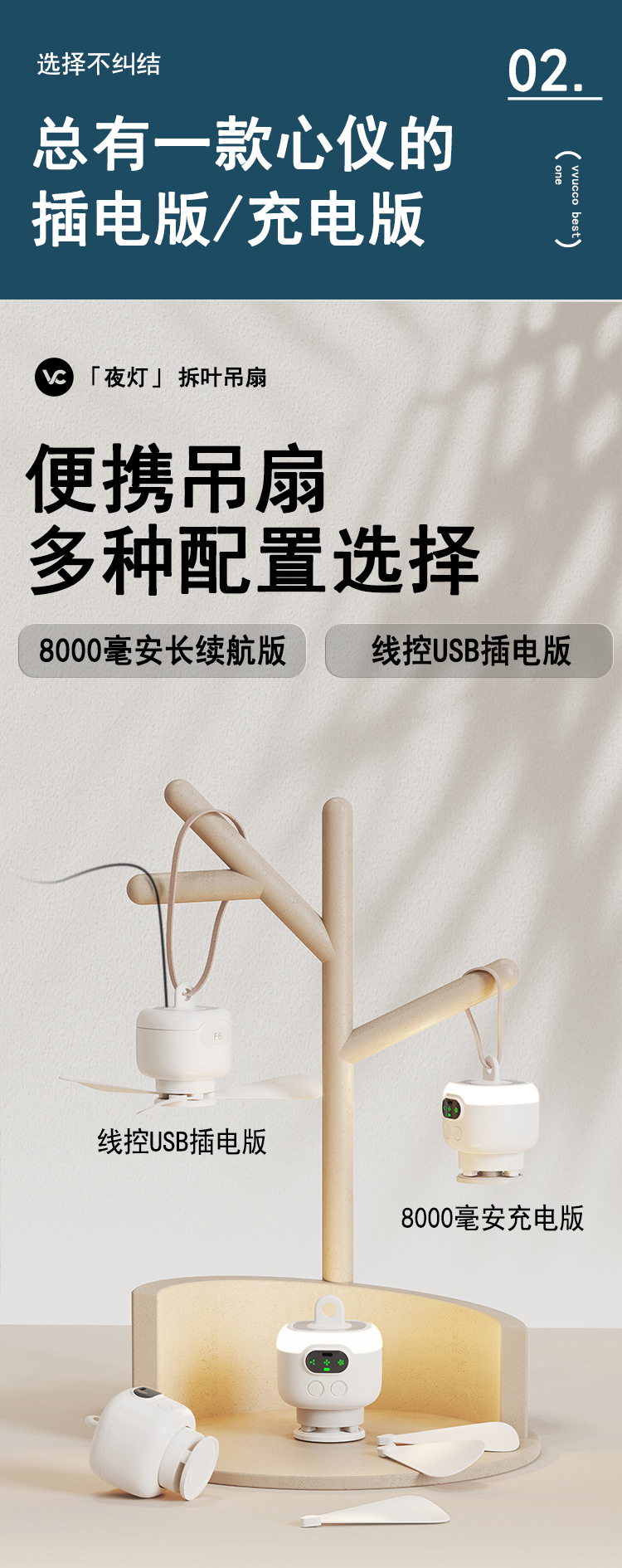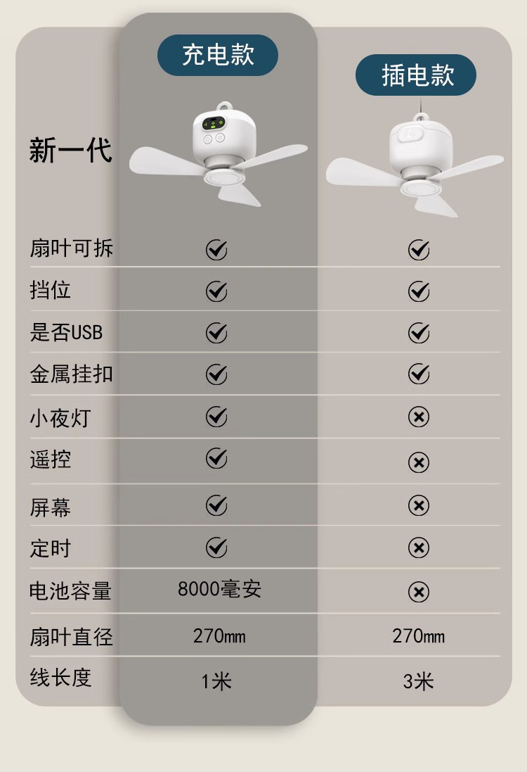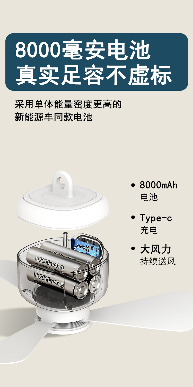 物克USB充电小吊扇露营风扇宿舍带夜灯户外便携超长续航大风力