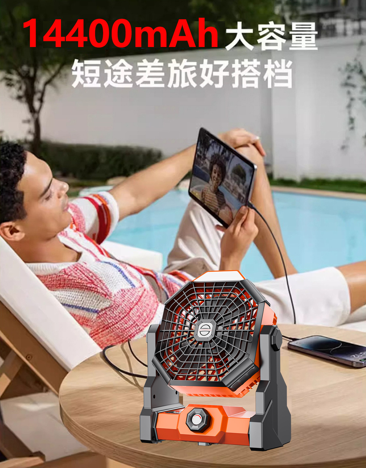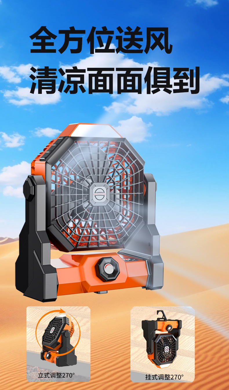 户外露营充电风扇钓鱼小型野营帐篷宿舍制冷USB 反充电超长续航