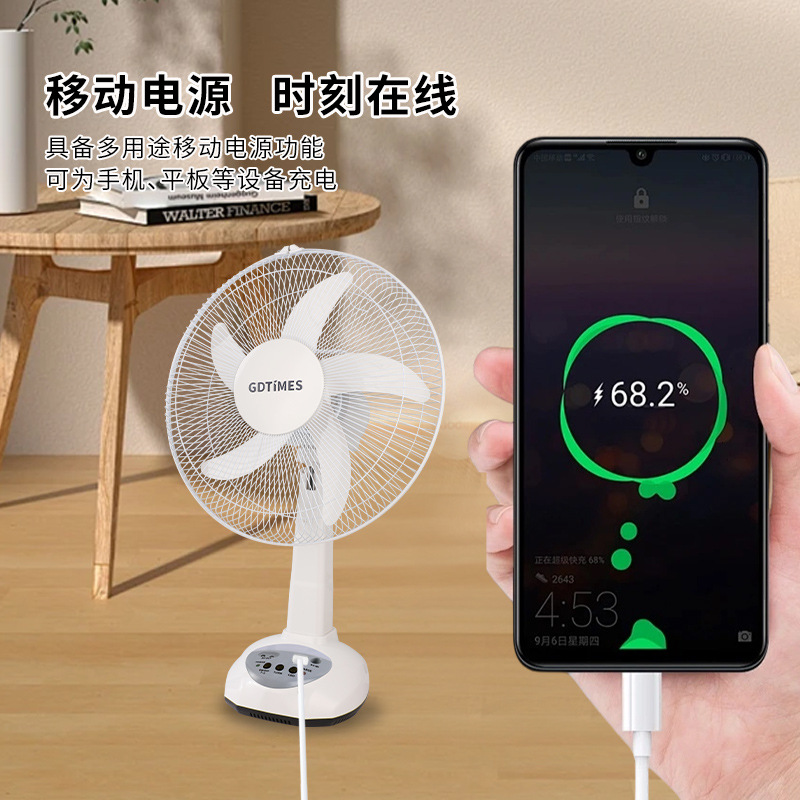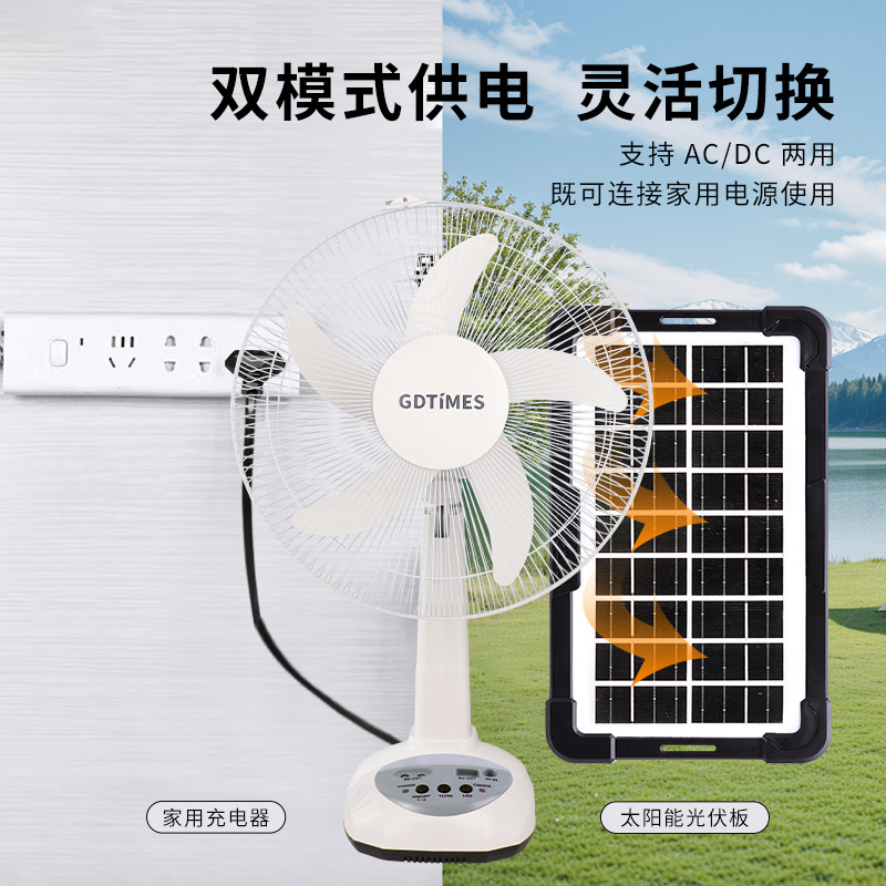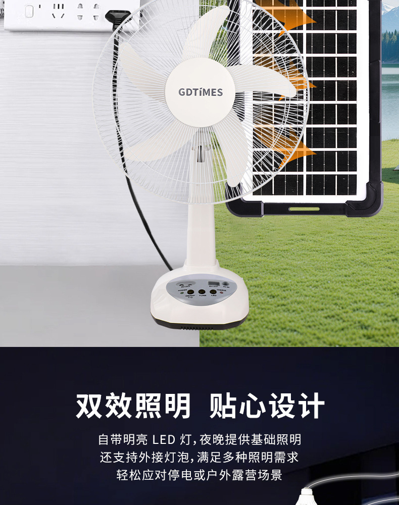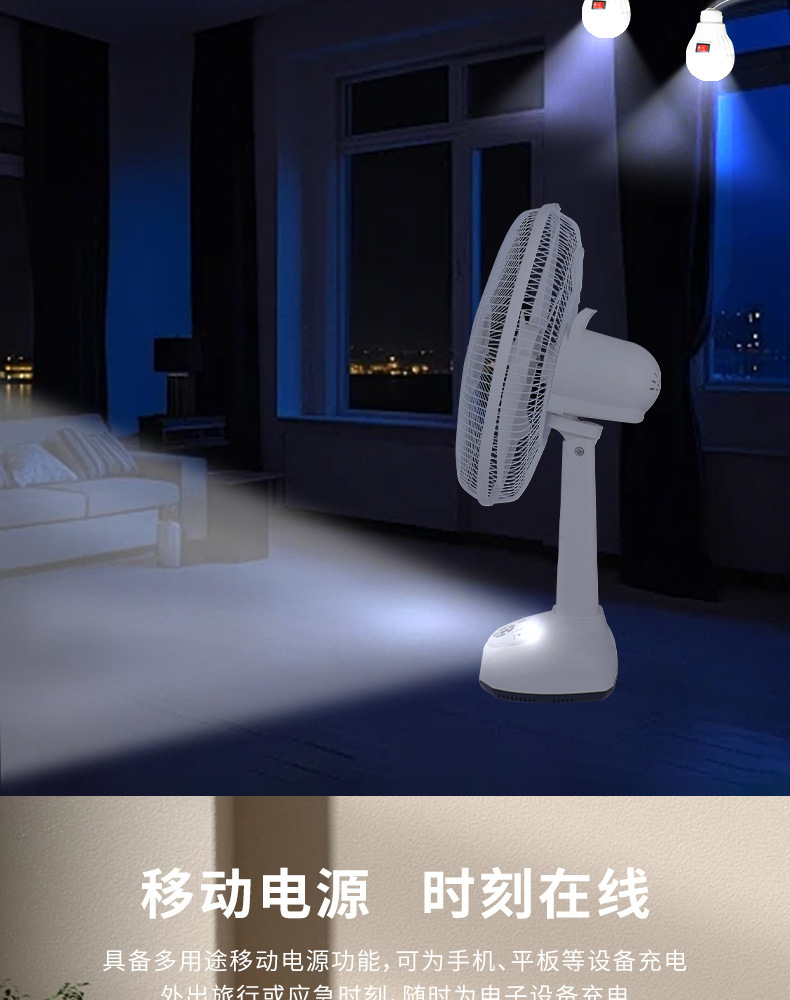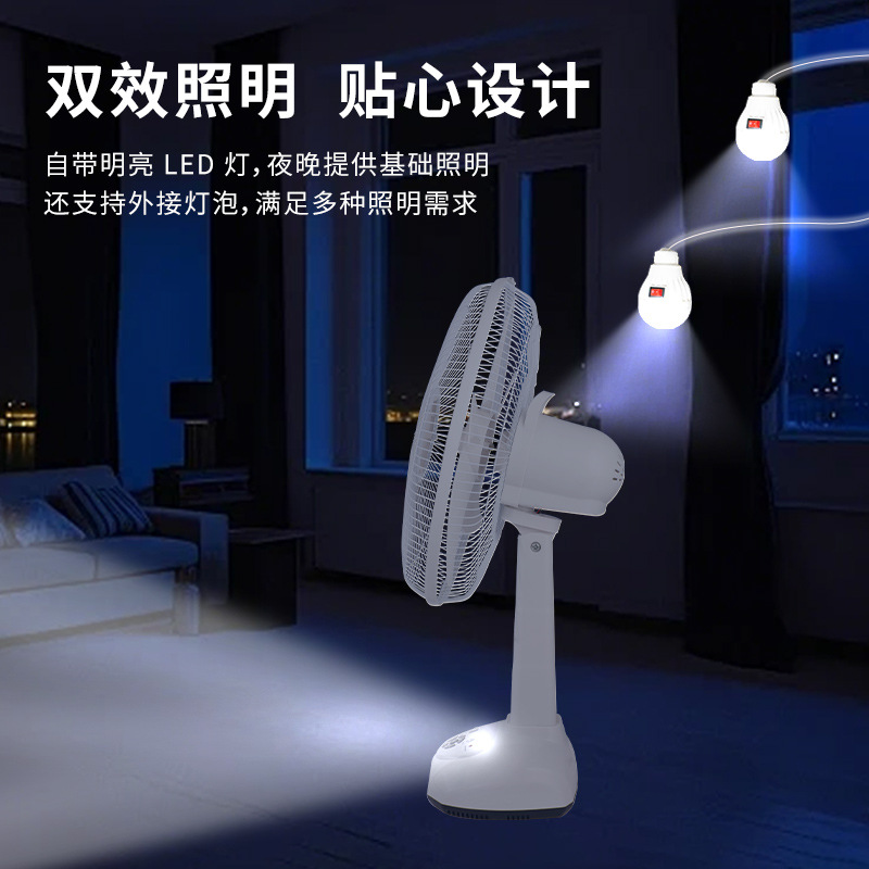 太阳能风扇14寸长续航大风力按键式摇头带灯应急台扇东南亚热销