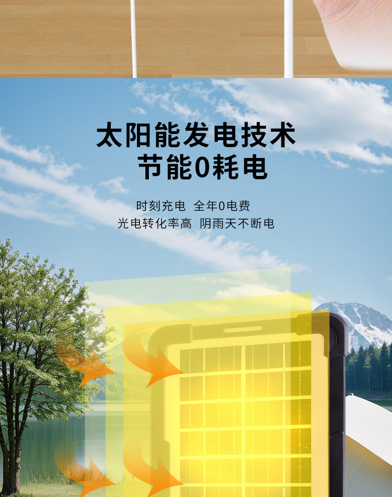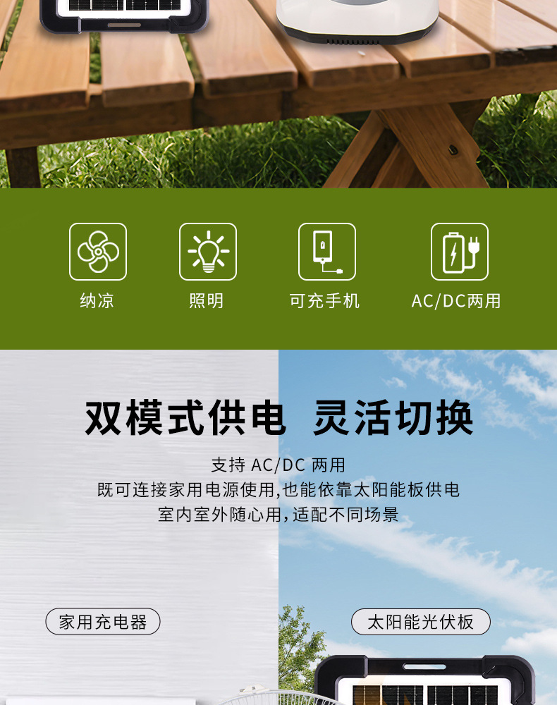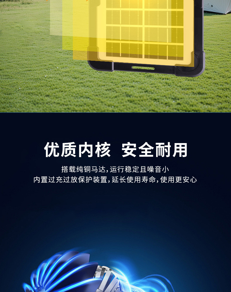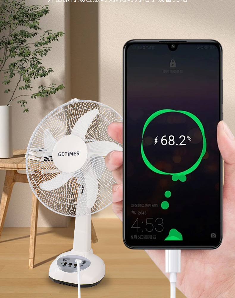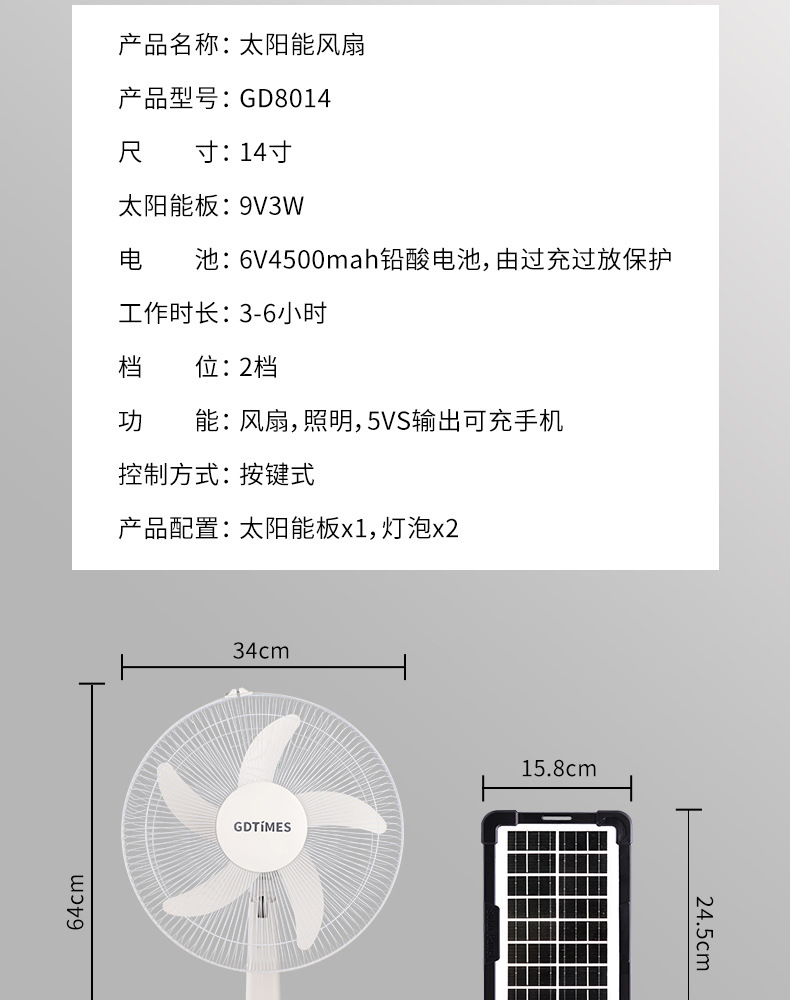 太阳能风扇14寸长续航大风力按键式摇头带灯应急台扇东南亚热销