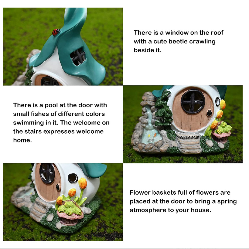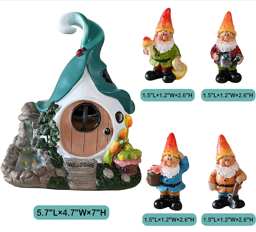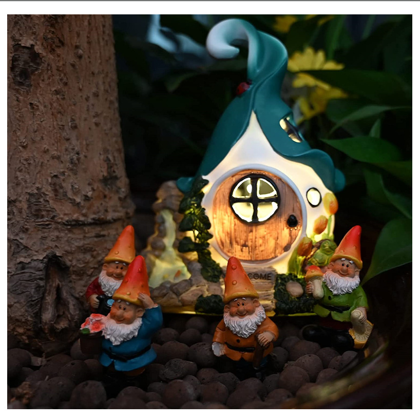太阳能仙女花园屋套装微型小矮人小雕像 4 件套树脂摆件户外室内