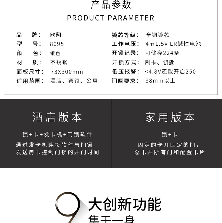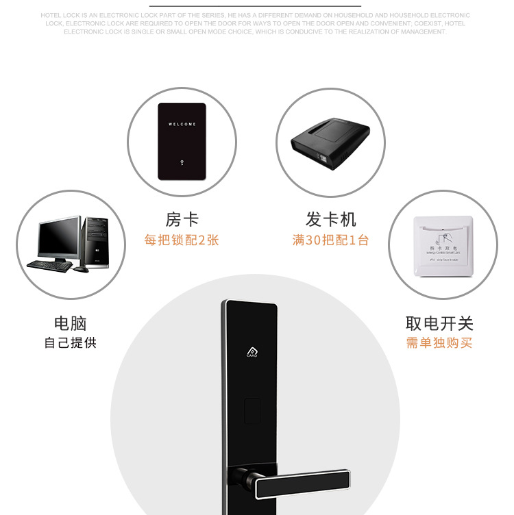 酒店门锁学校公寓磁卡锁不锈钢ic电子感应简约宾馆民宿酒店刷卡锁