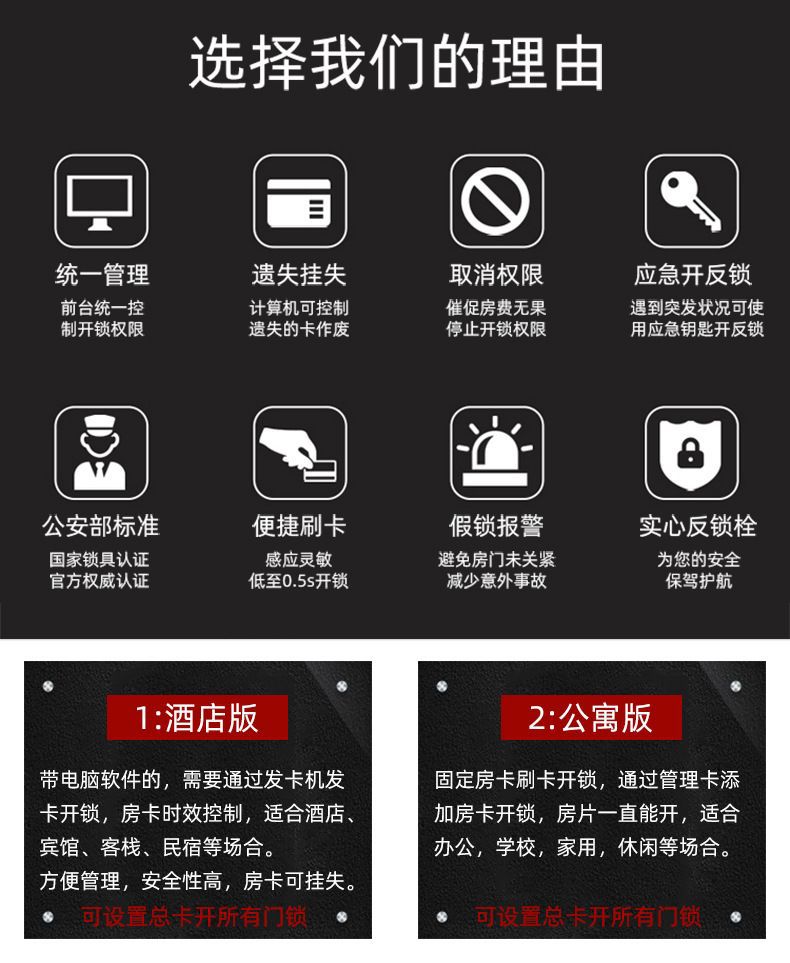 酒店门锁宾馆刷卡锁系统磁卡感应锁民宿公寓密码锁IC卡智能门锁