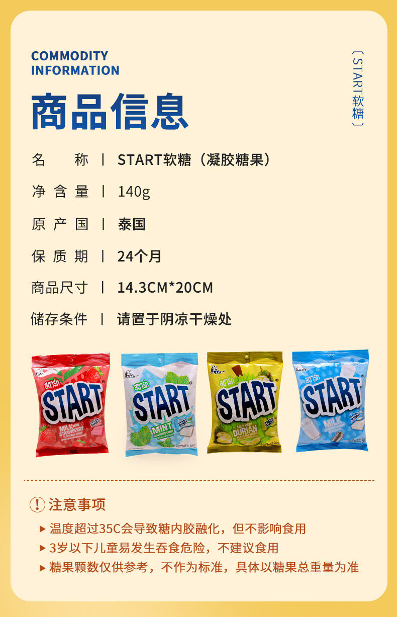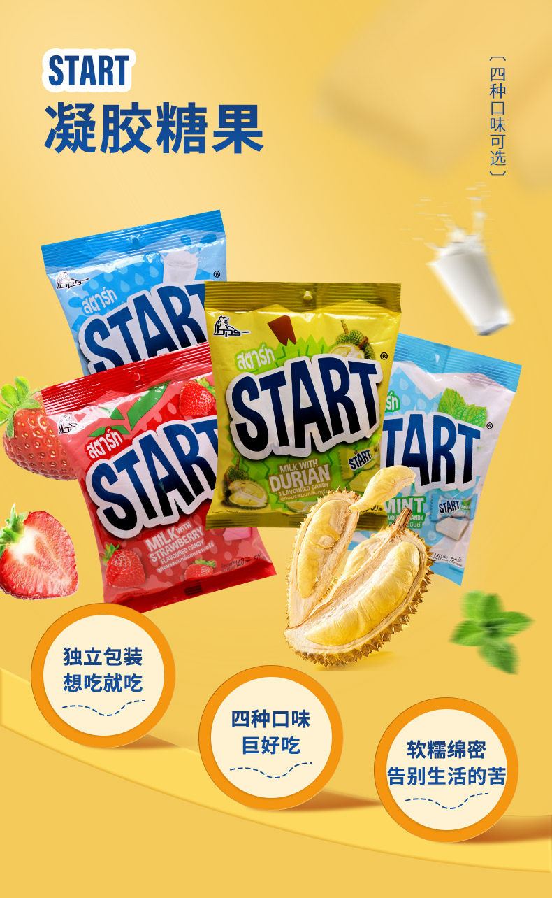 泰国原装进口Start水果软糖薄荷味草莓牛奶榴莲休闲零食喜糖