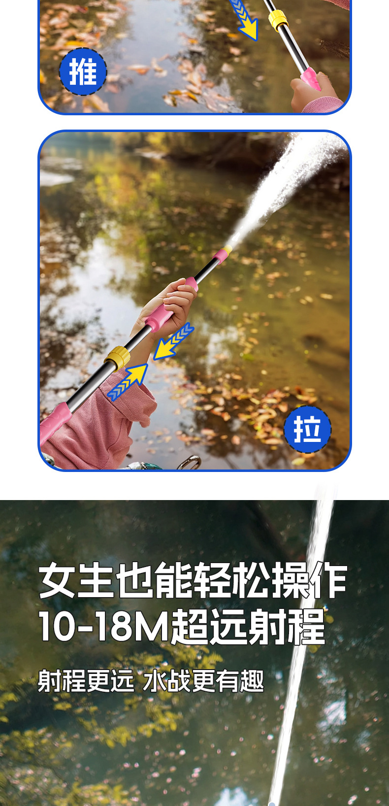 漂流水枪玩具高压不锈钢自吸往复式夏天戏水水炮景区摆摊厂家批发