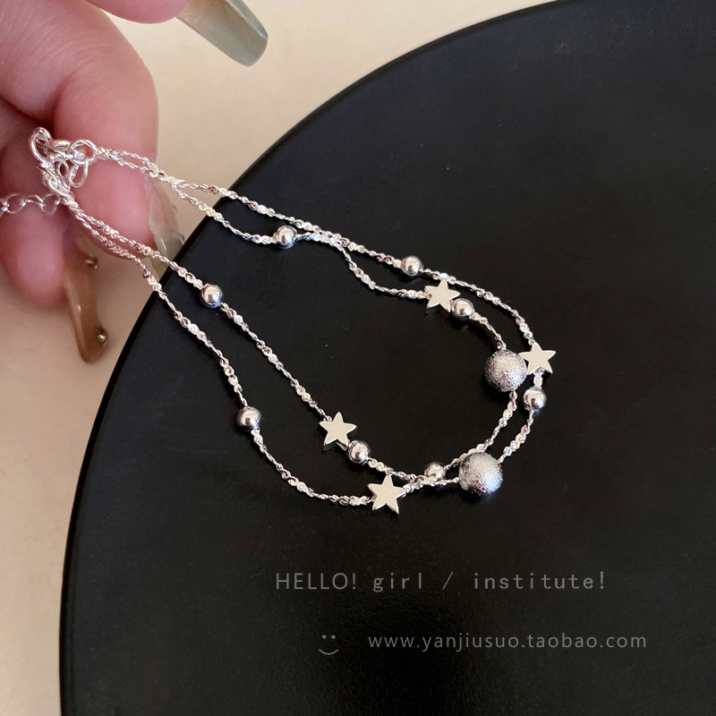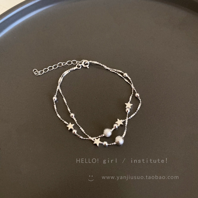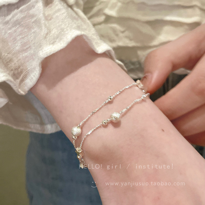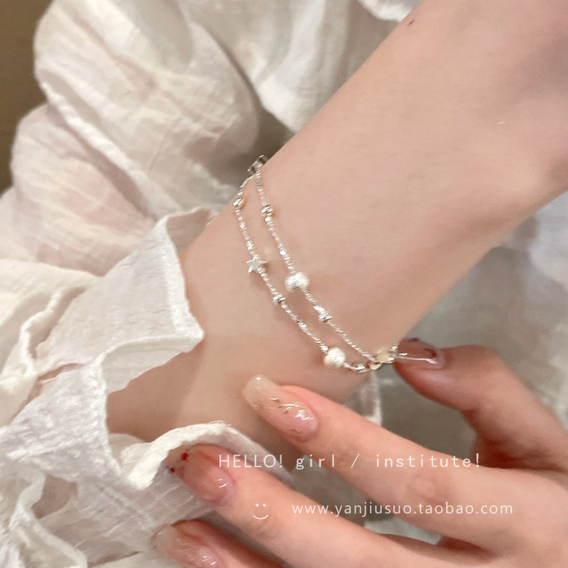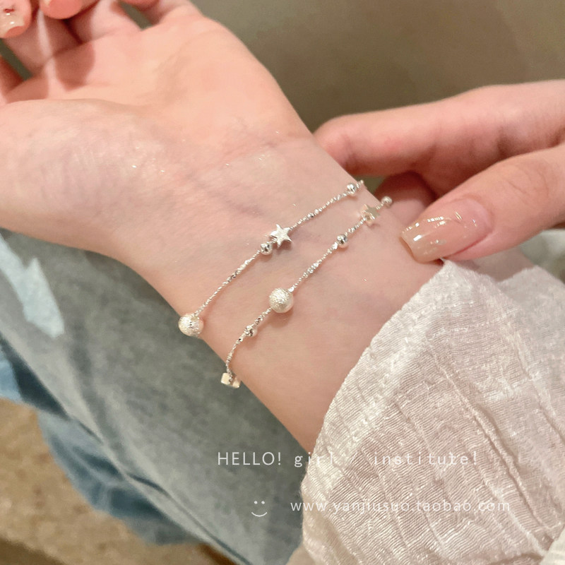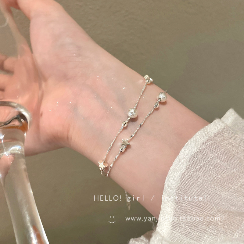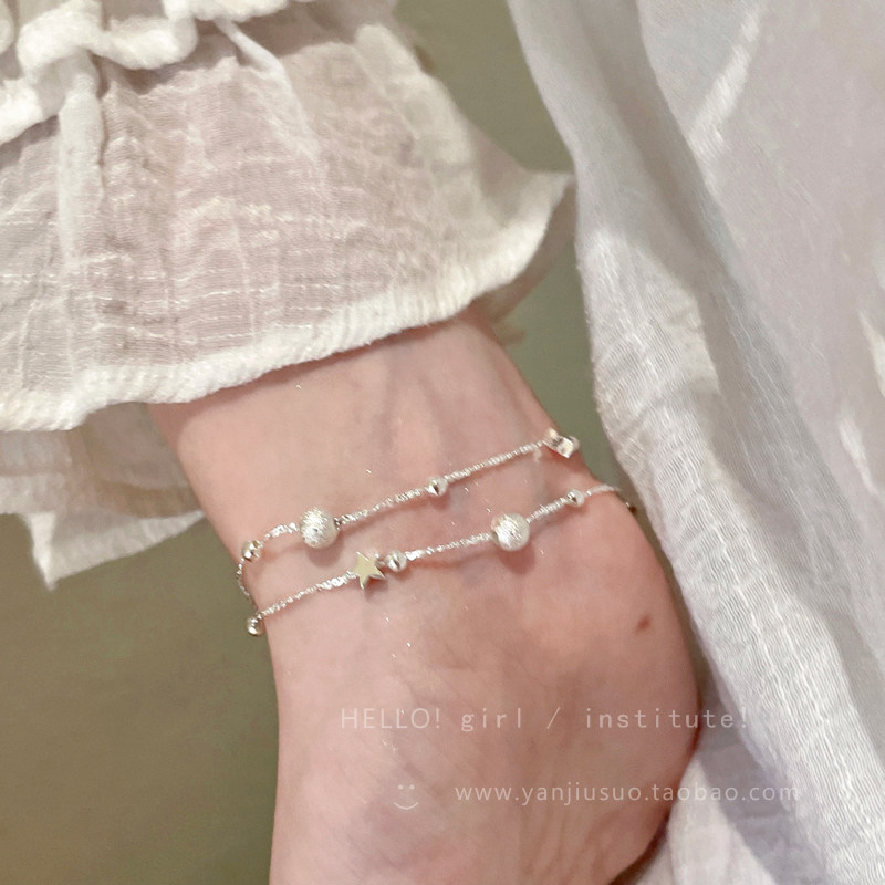 银色磨砂小球星星手链女2025年新款轻奢小众精致闺蜜双层叠戴手饰