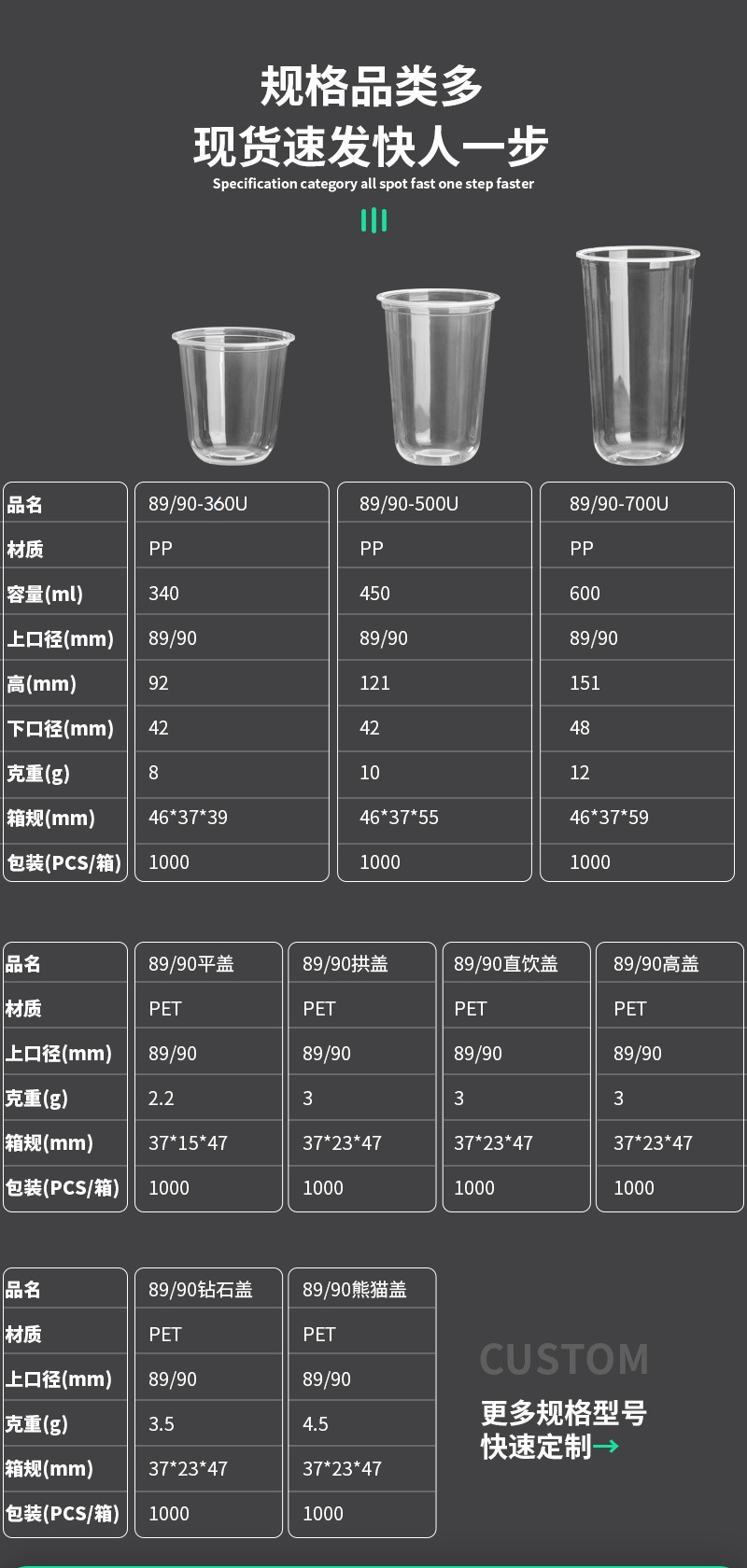 90口径PP材质网红U型胖胖杯脏脏杯奶茶杯果汁饮品塑料杯大容量