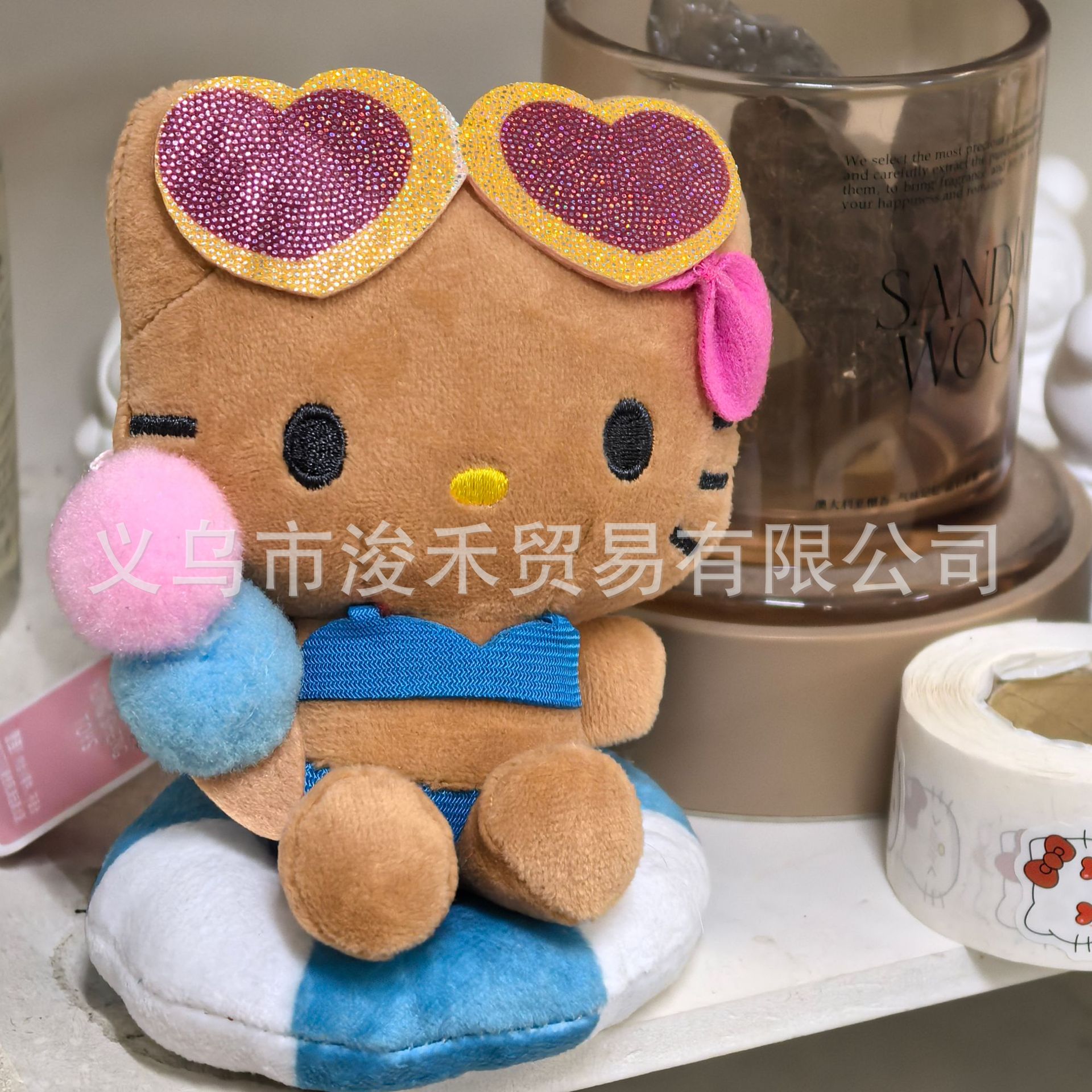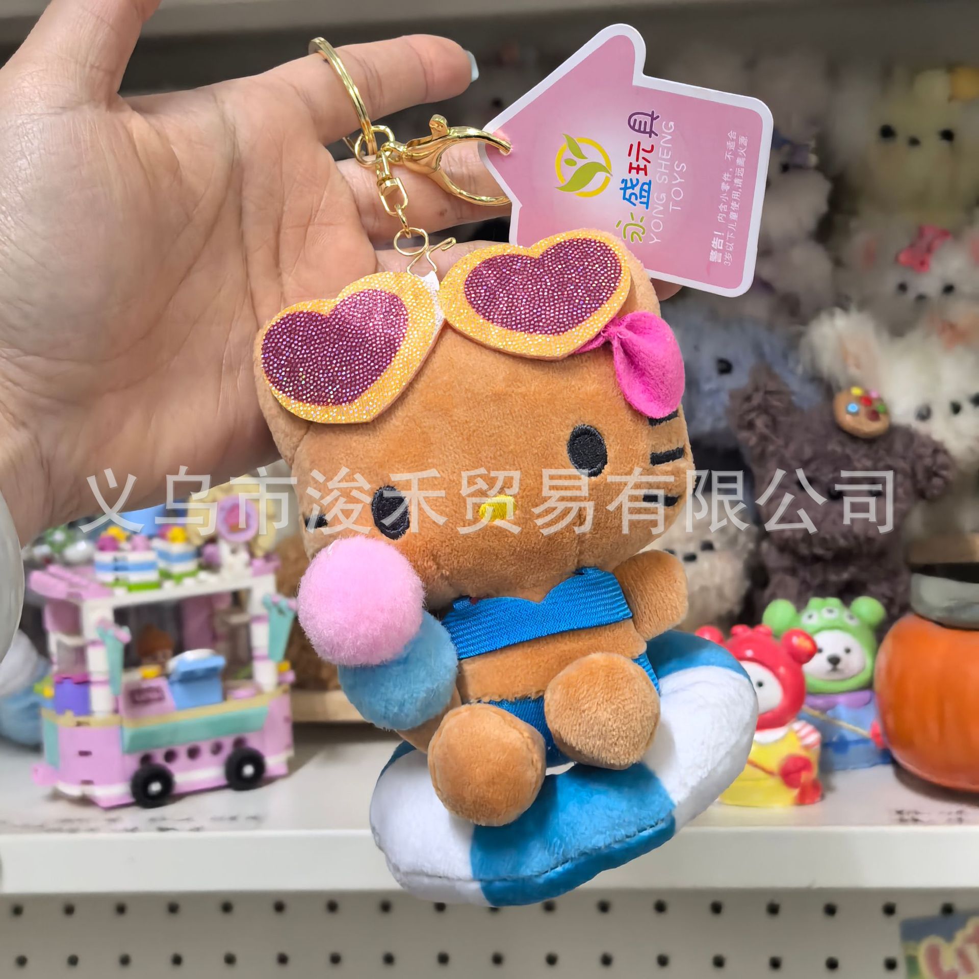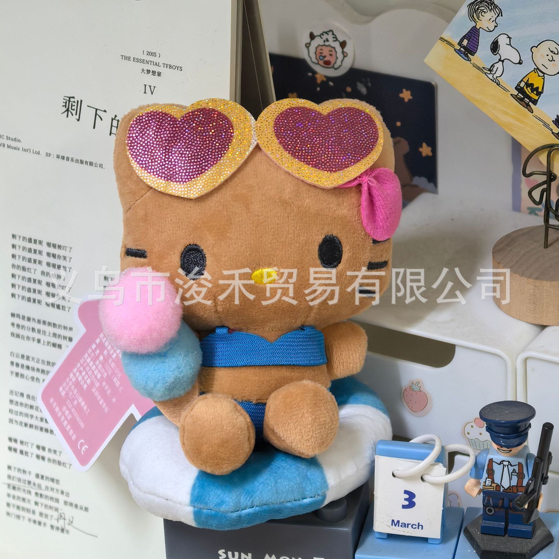 游泳圈夏威夷kitty黑皮包毛绒挂件公仔玩偶钥匙扣可爱挂饰