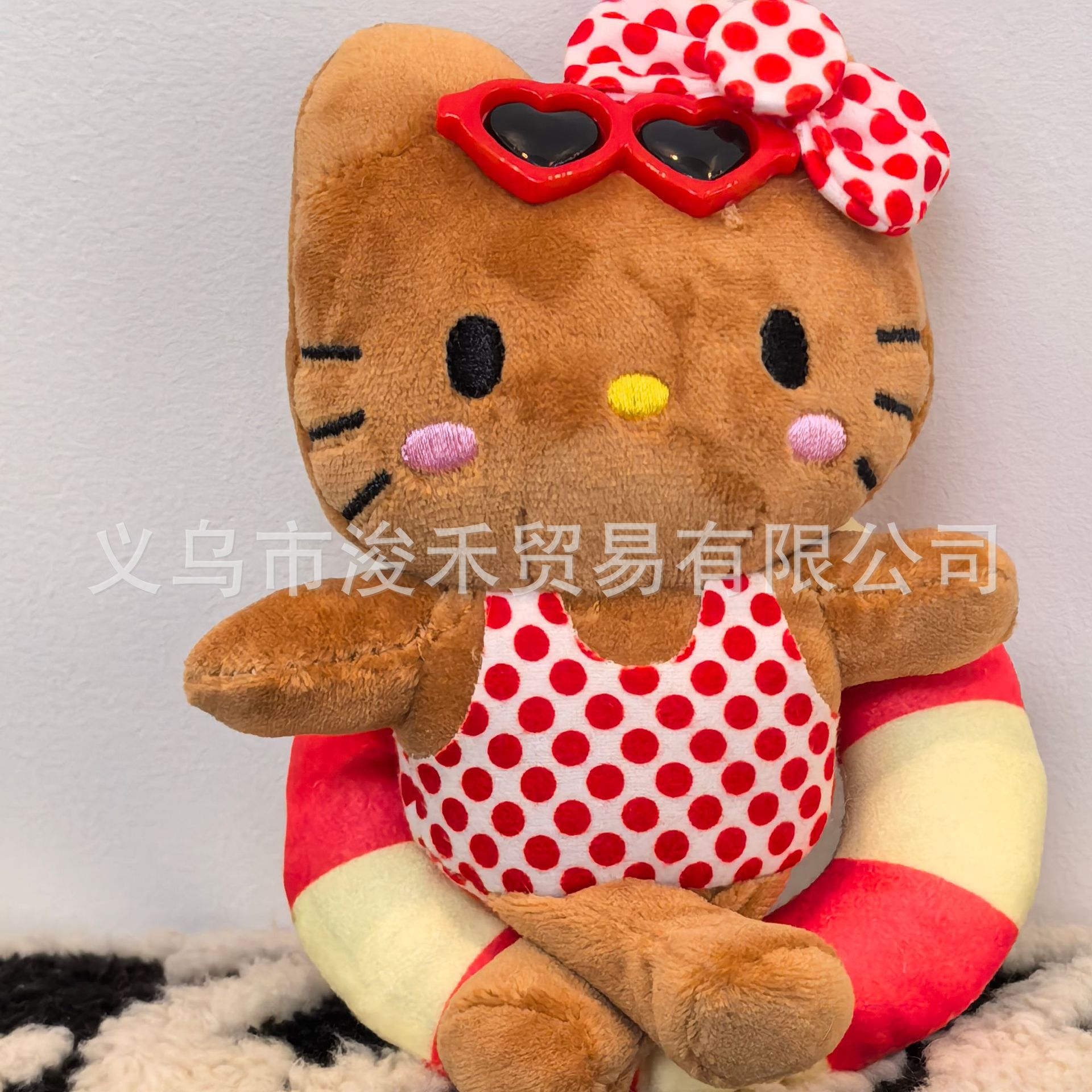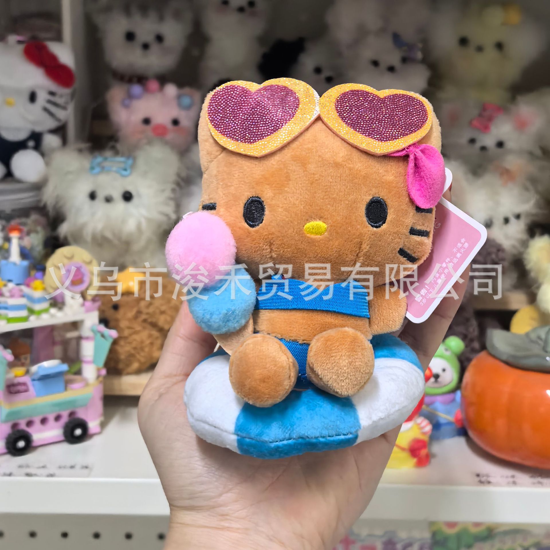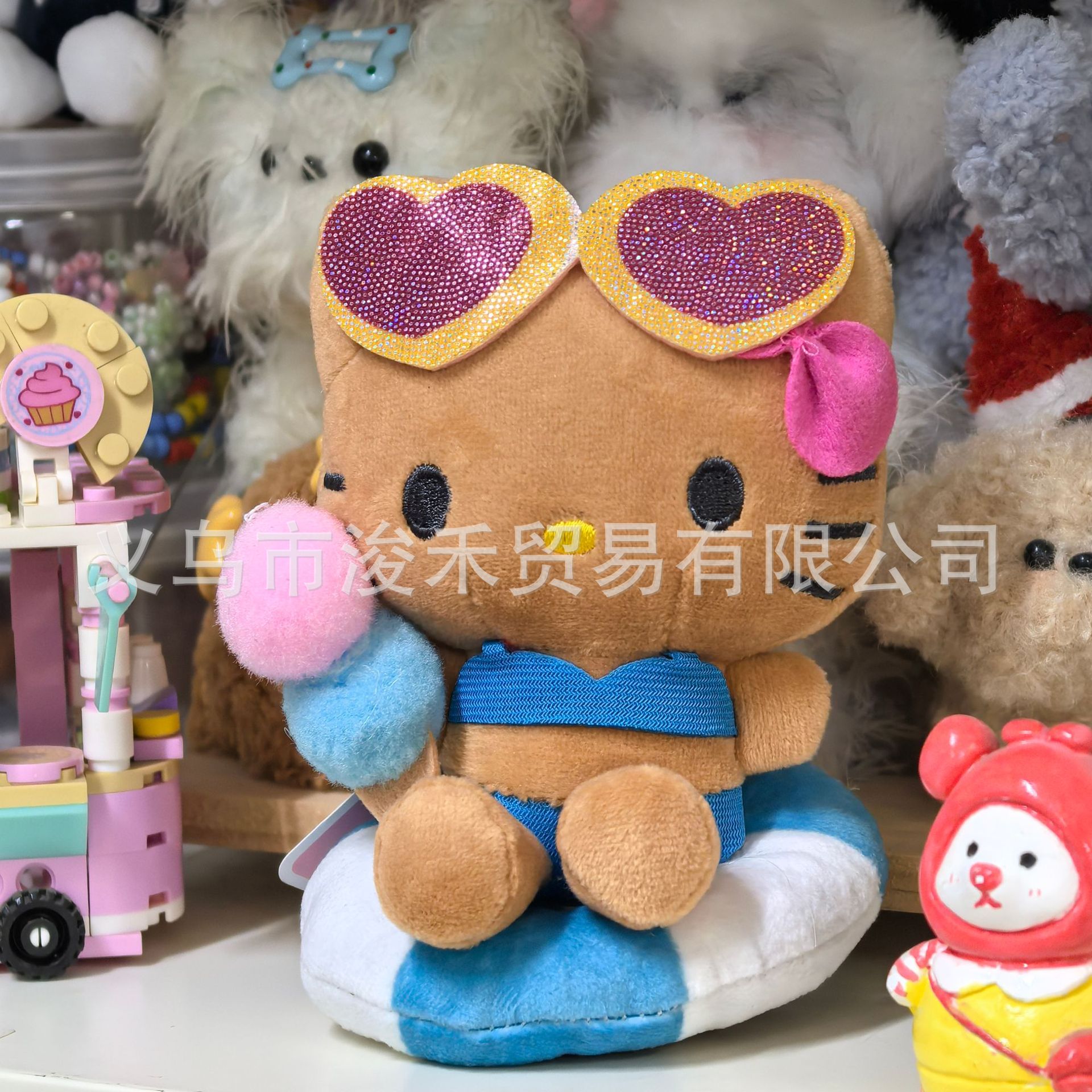 游泳圈夏威夷kitty黑皮包毛绒挂件公仔玩偶钥匙扣可爱挂饰