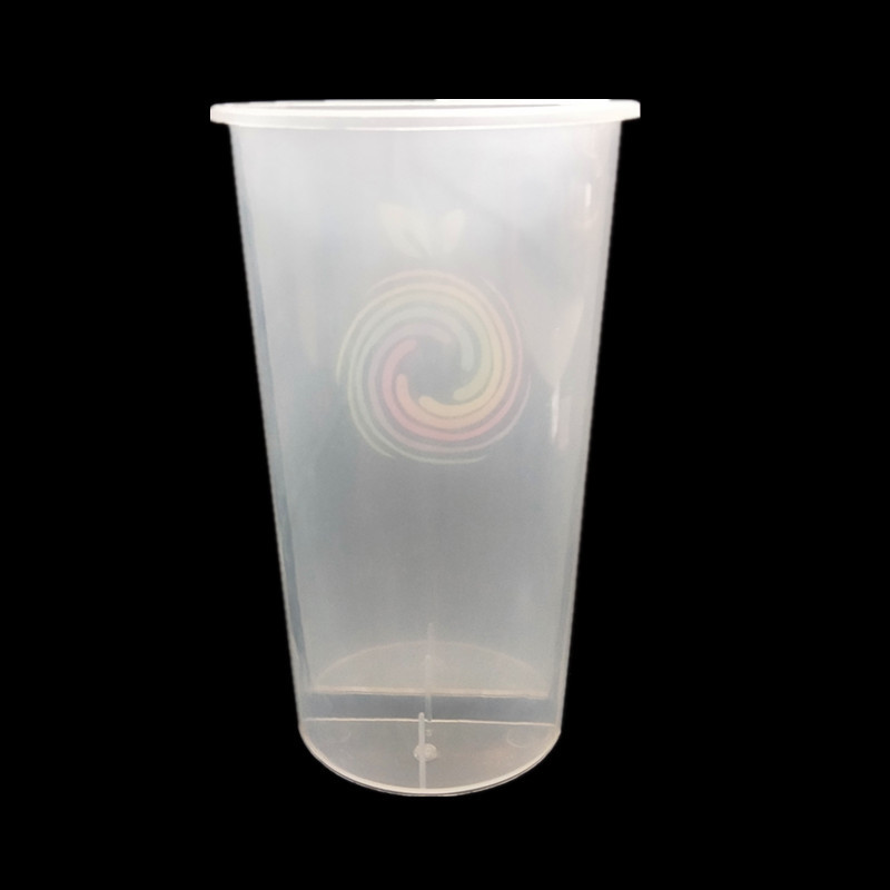 批发700ml一次性塑料奶茶杯注塑pp杯 双响炮情侣分享杯双格劈叉杯