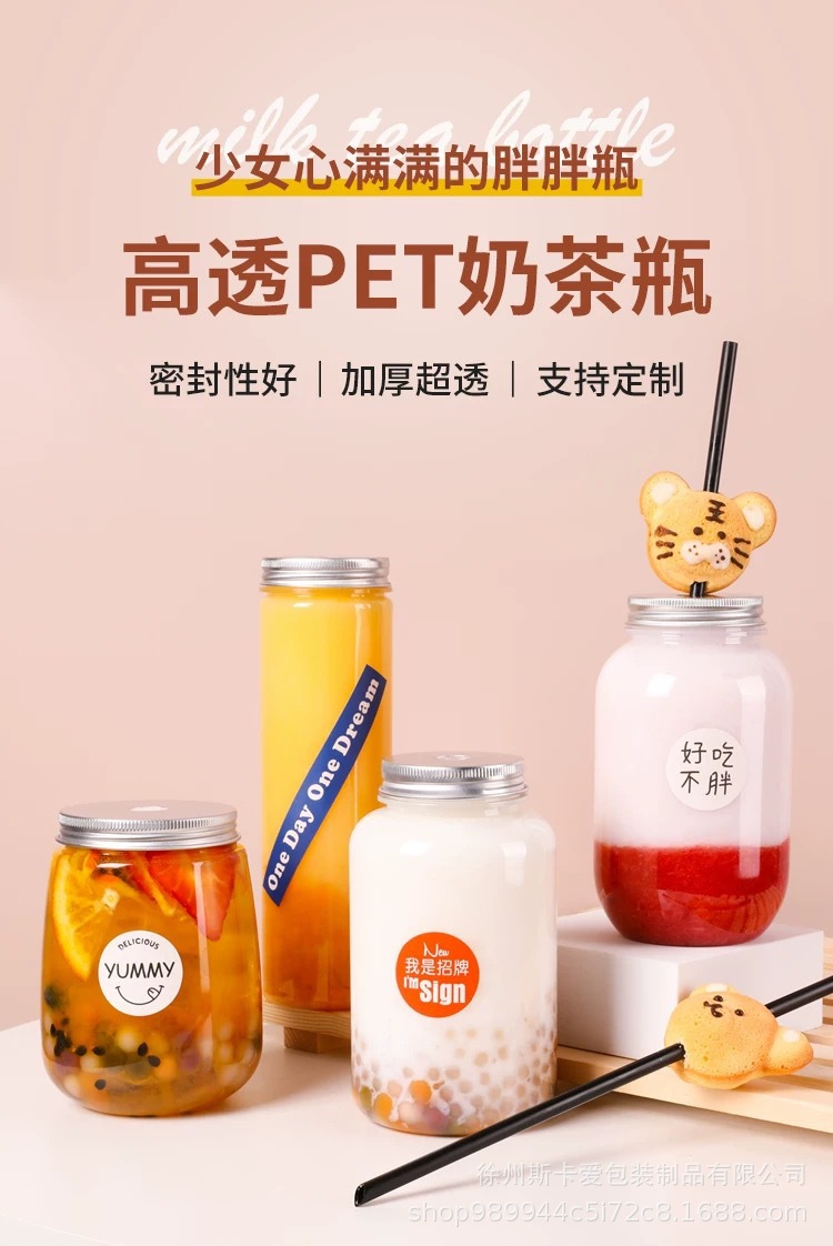 杨枝甘露外卖打包瓶子一次性塑料瓶饮料瓶加厚胖胖杯果汁奶茶杯