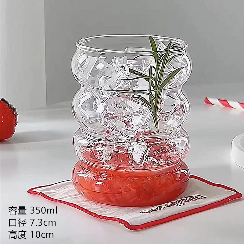 高硼硅玻璃毛毛虫杯子简约圈圈杯奶茶杯带吸管螺旋波纹玻璃杯水杯