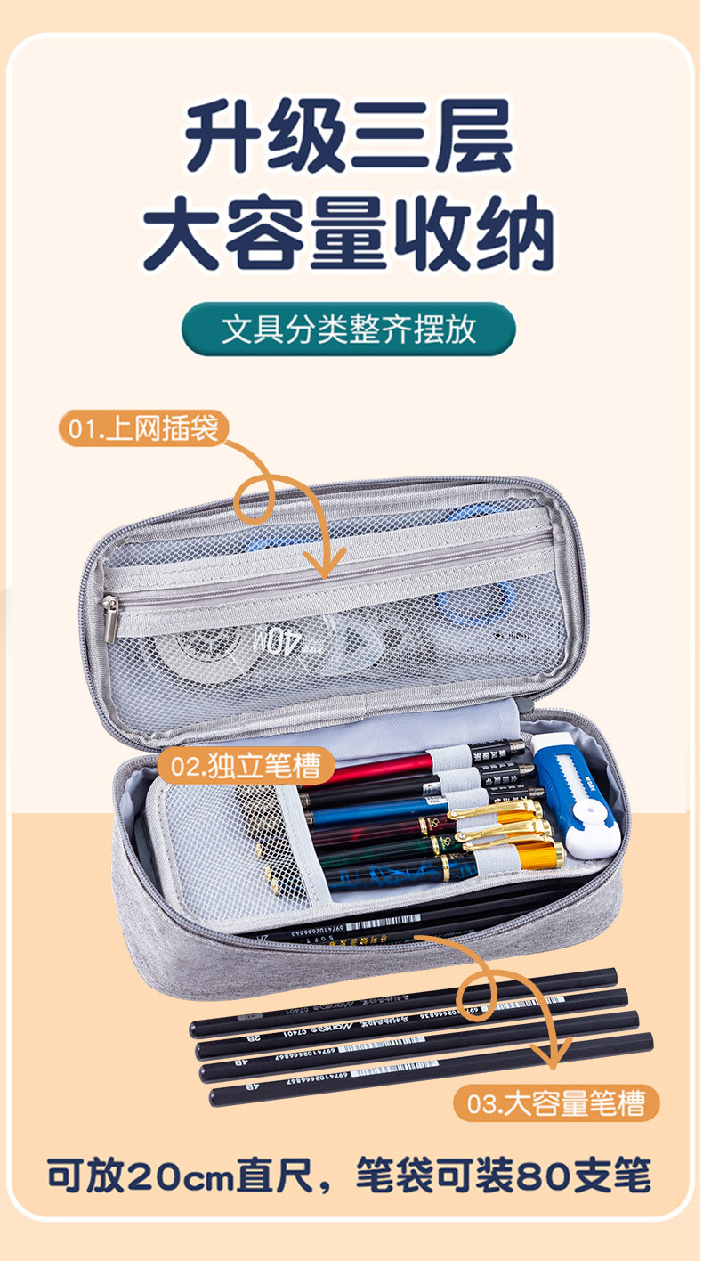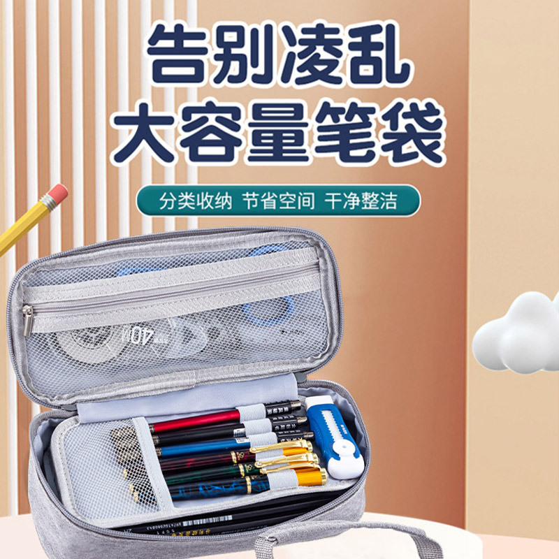 跨境大容量文具盒双层多功能简约笔袋高颜值日韩版中小学生铅笔盒