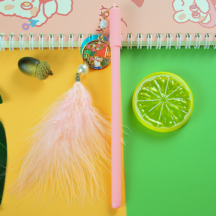 创意羽毛挂件笔复古镀金窗花画艺吊坠中性笔高颜值文具学生水性笔