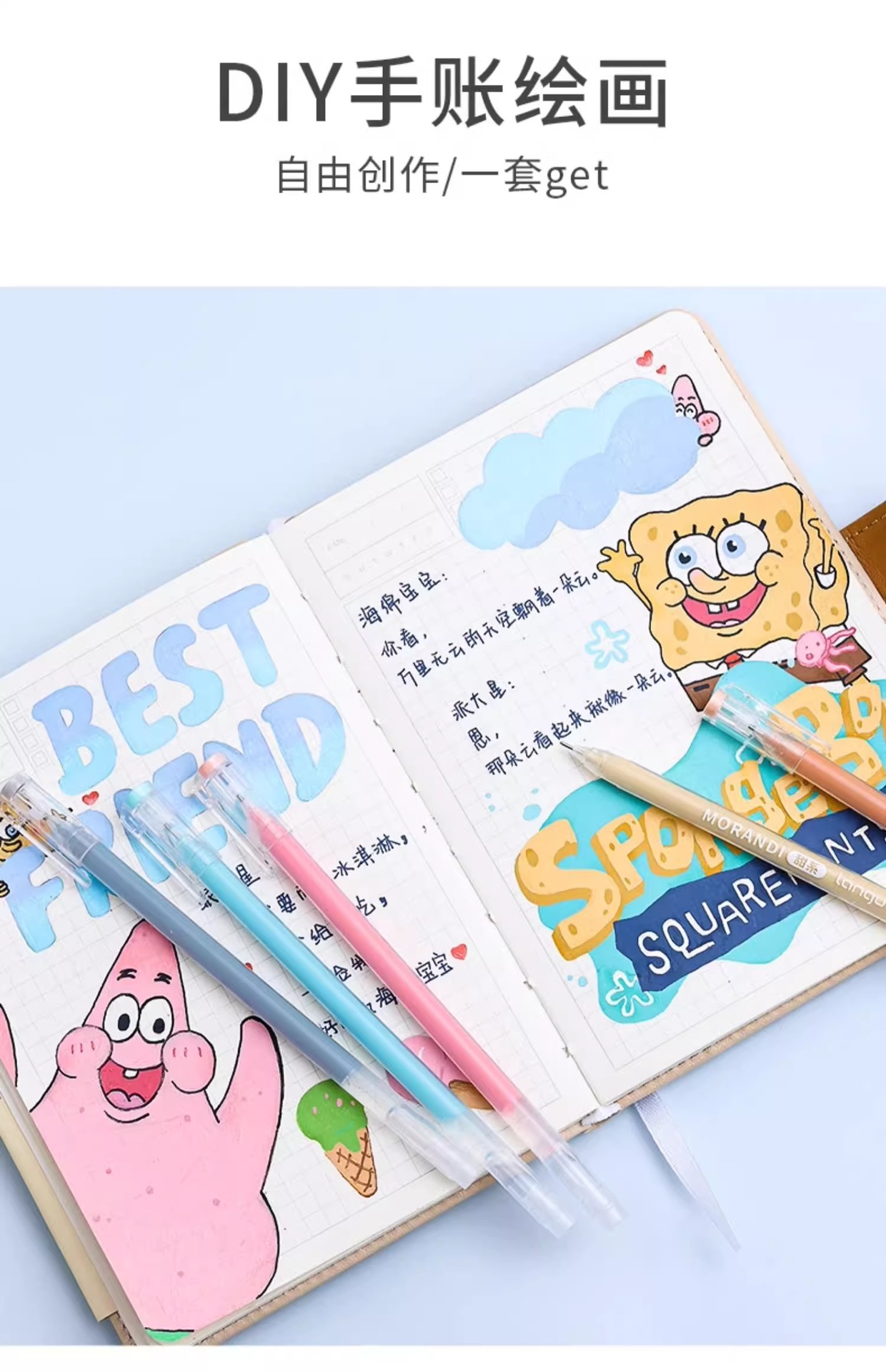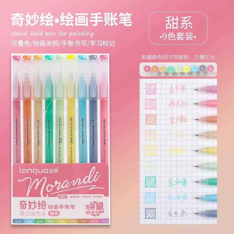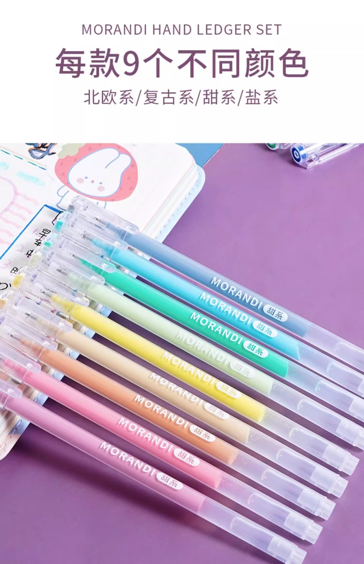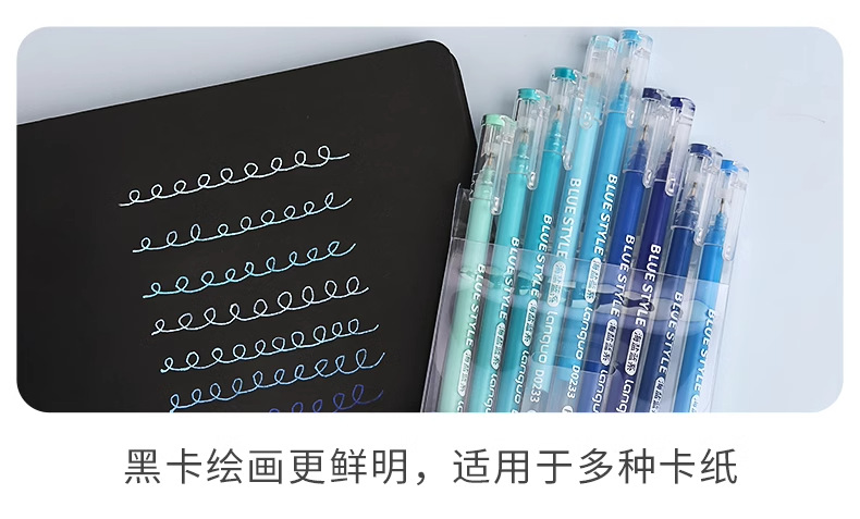蓝果手帐笔套装大容量手账中性笔绘画笔记荧光笔划重点笔单头细笔