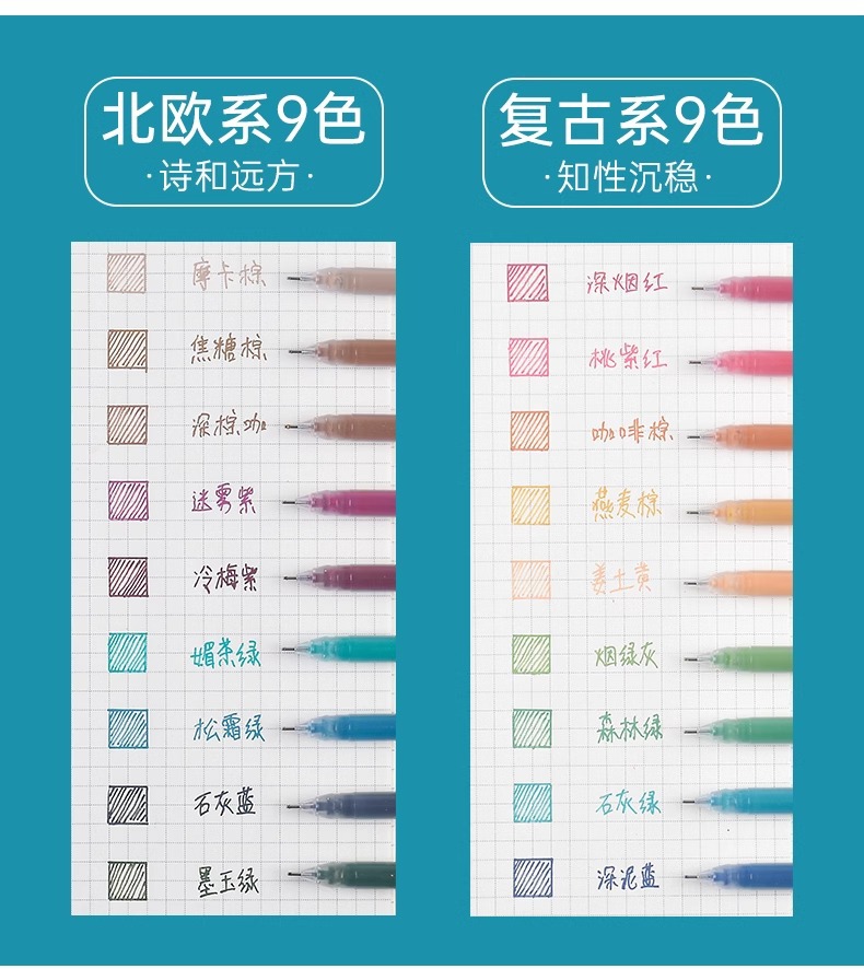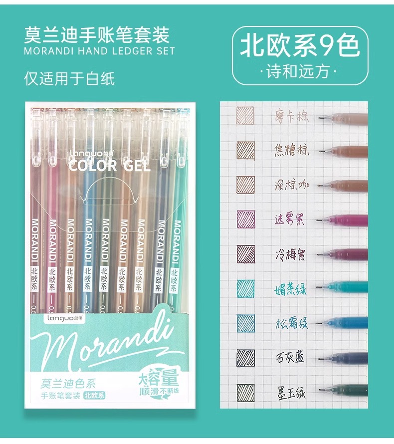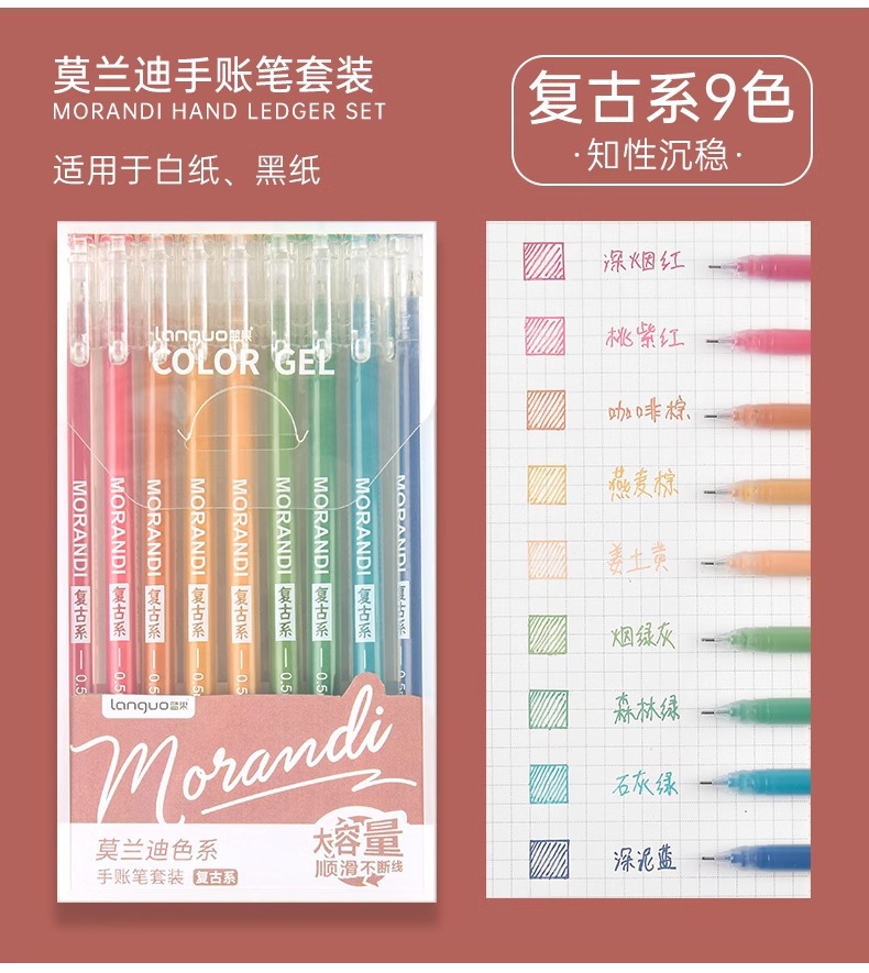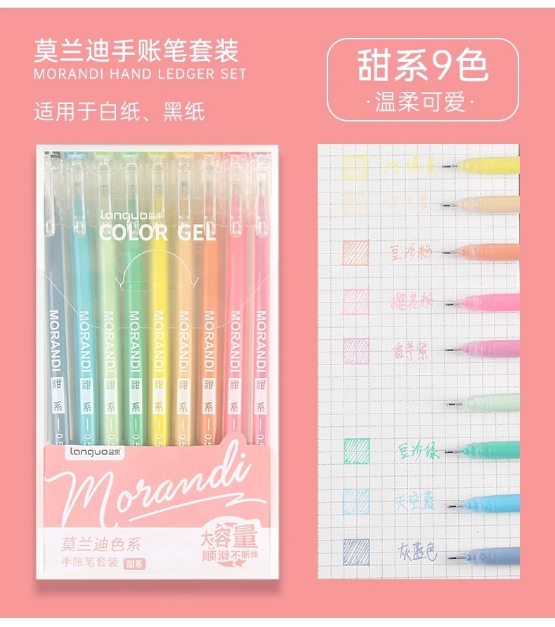 蓝果手帐笔套装大容量手账中性笔绘画笔记荧光笔划重点笔单头细笔