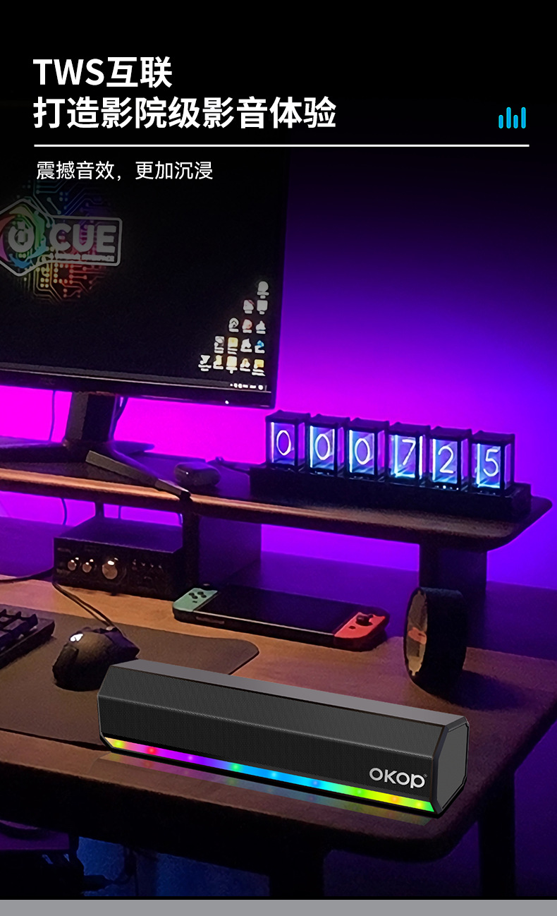 557蓝牙音响RGB炫彩灯家用长条无线蓝牙重低音高音质环绕插卡音响