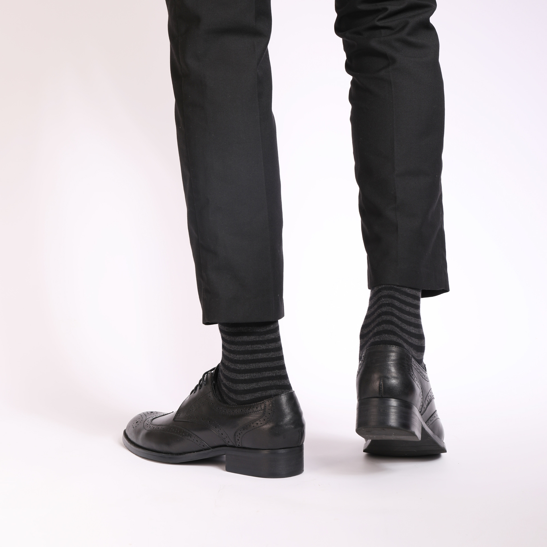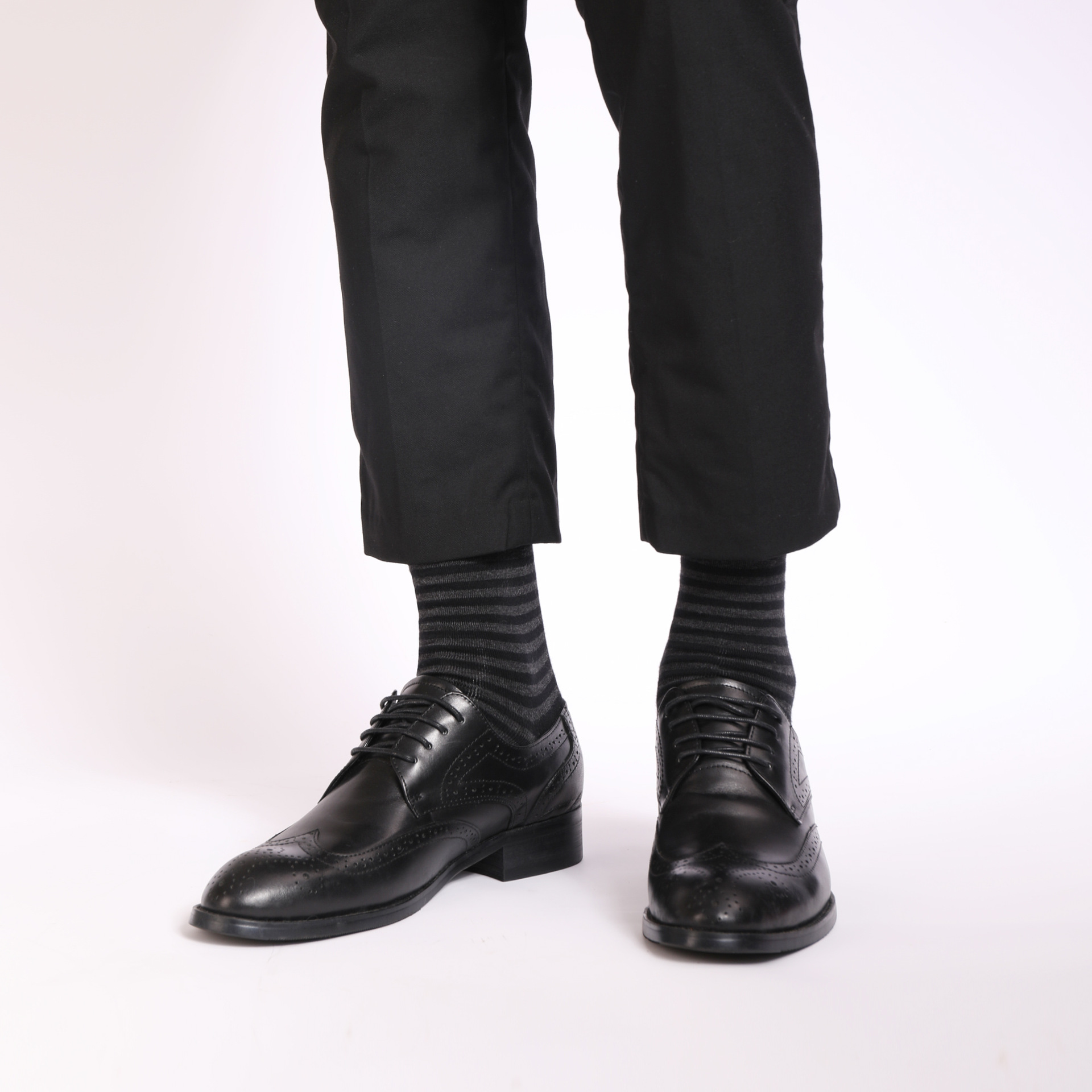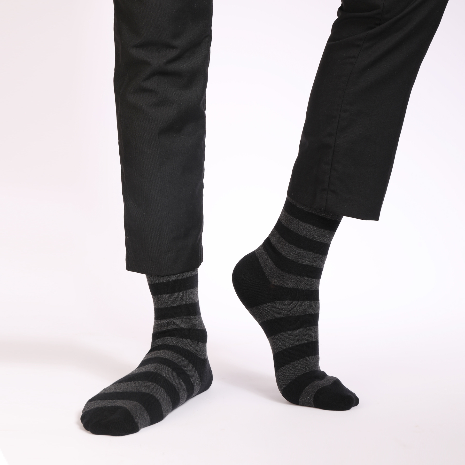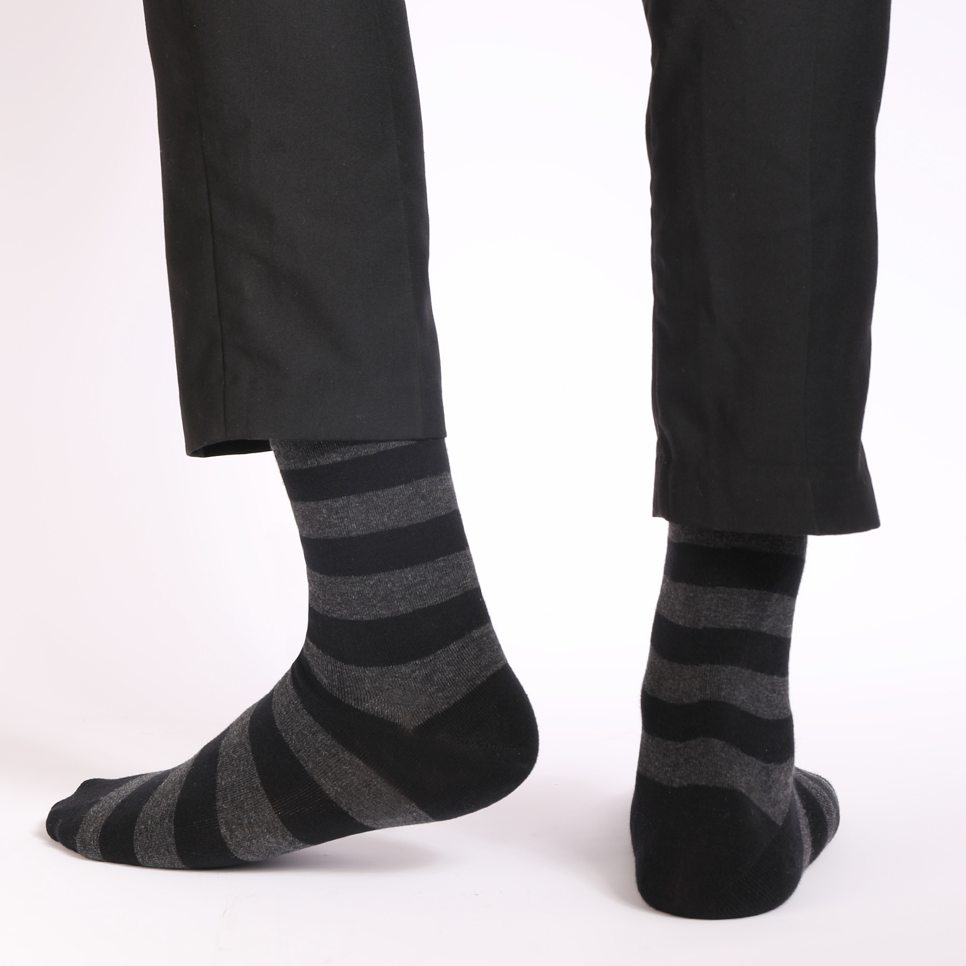跨境亚马逊货源男士长筒袜大码条纹纯黑色商务欧美棉袜外贸男长袜