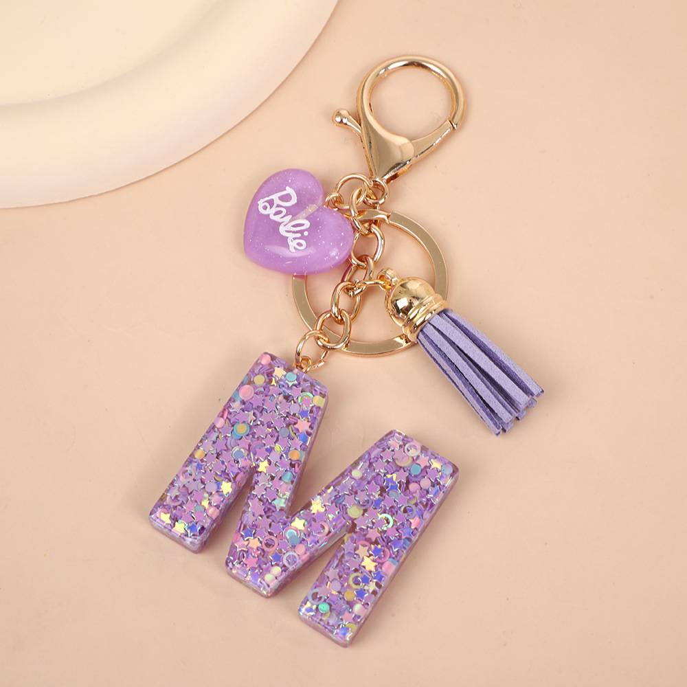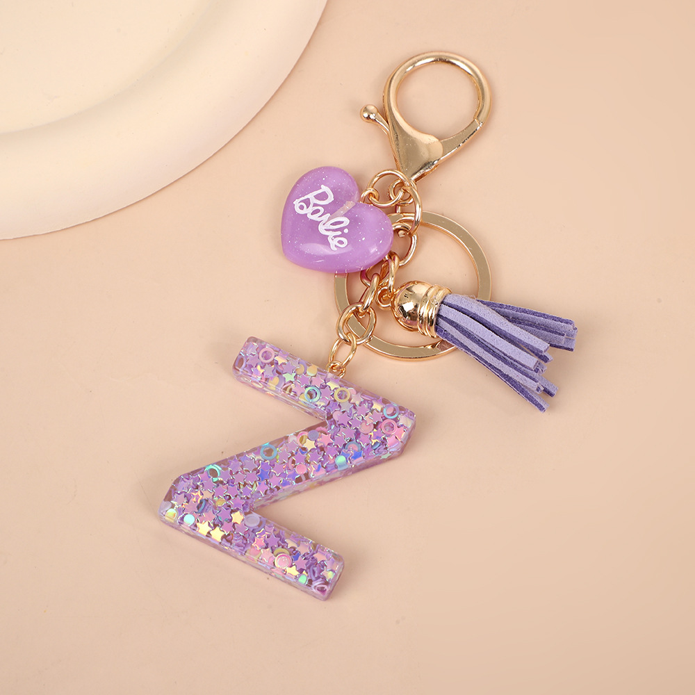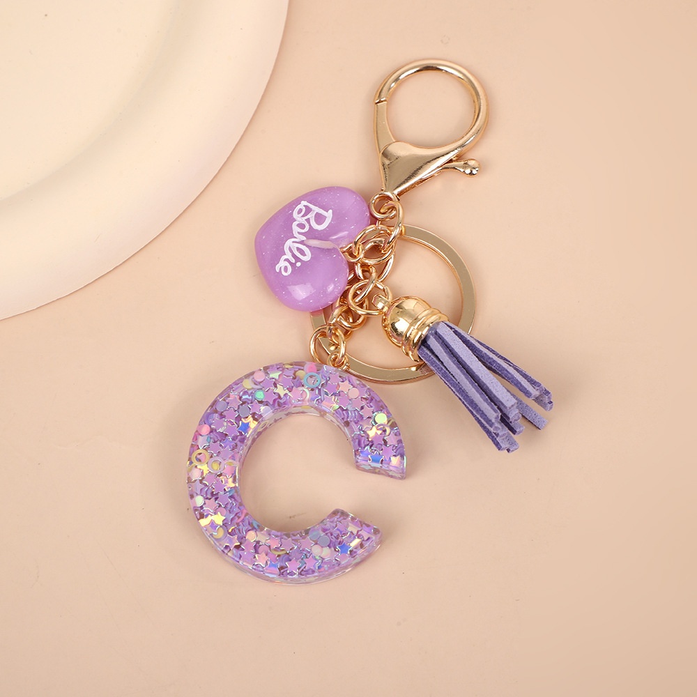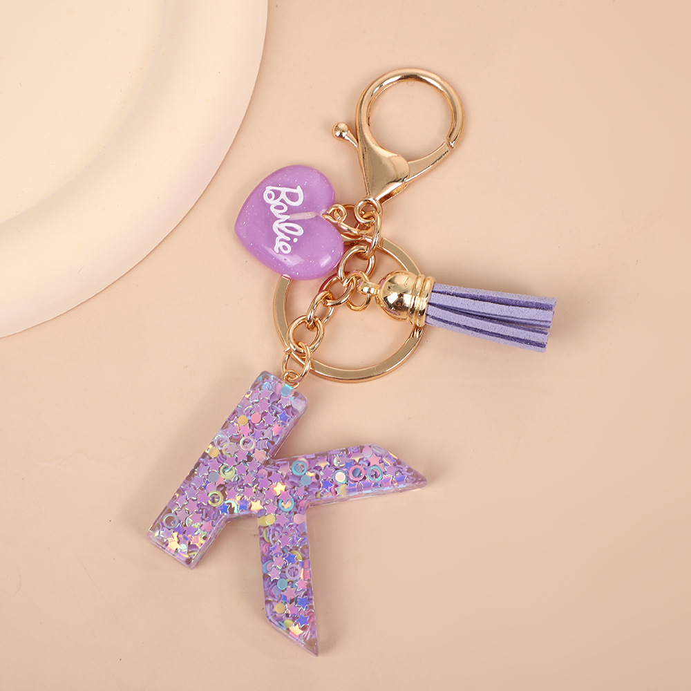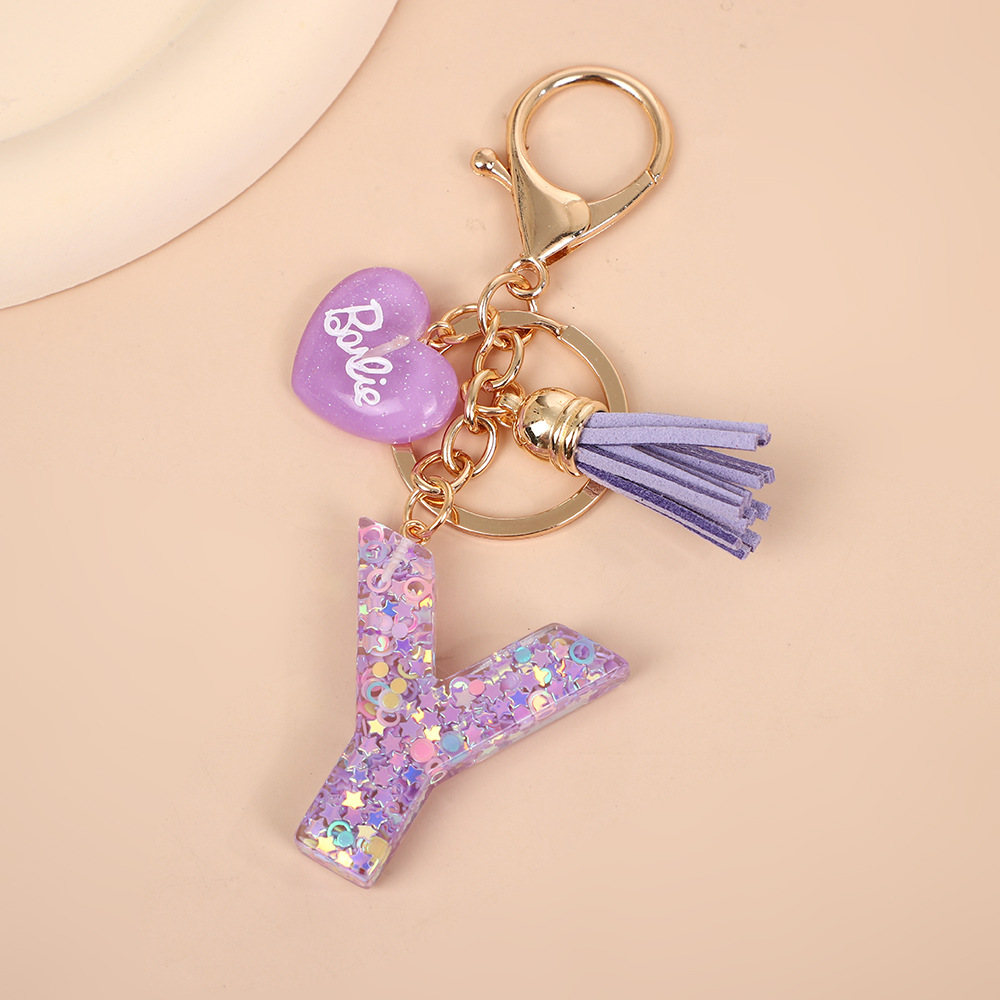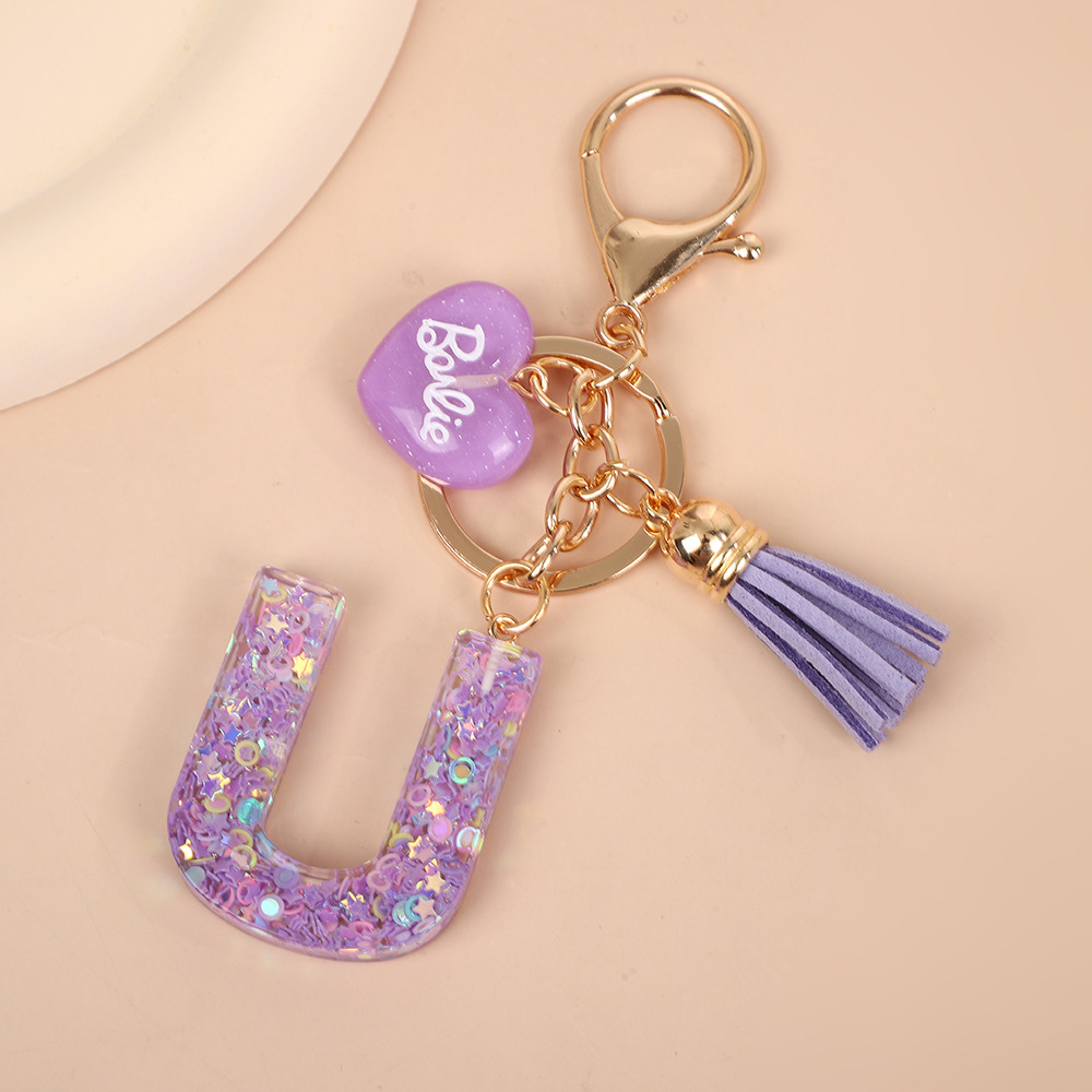 树脂26个英文字母钥匙扣字母首字母钥匙扣可爱心心形树脂流苏挂件