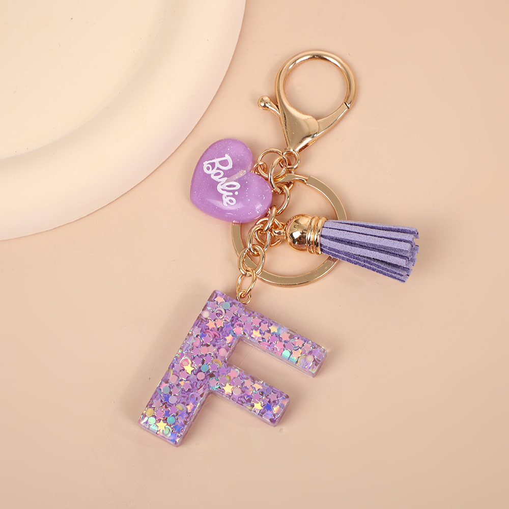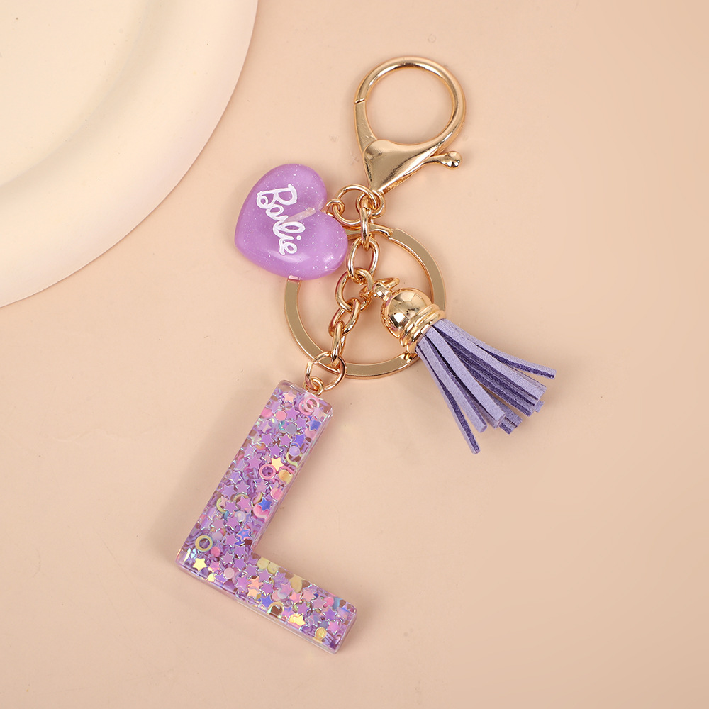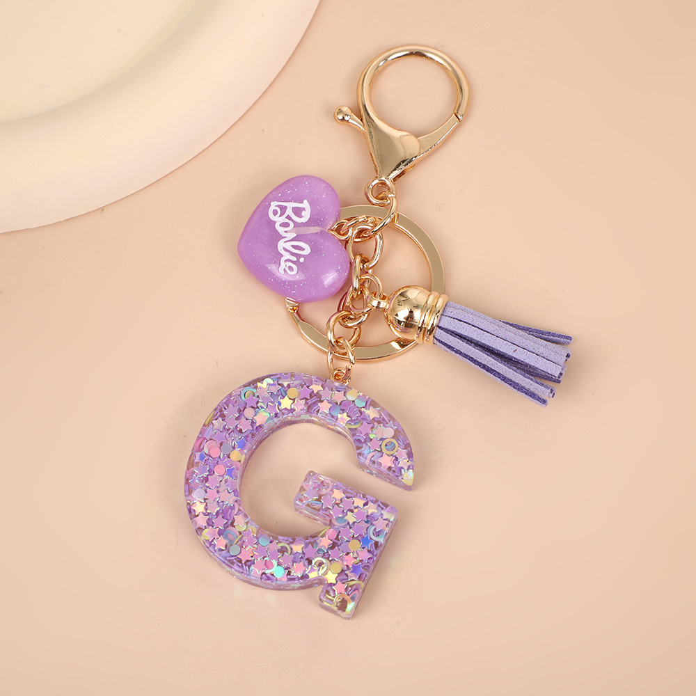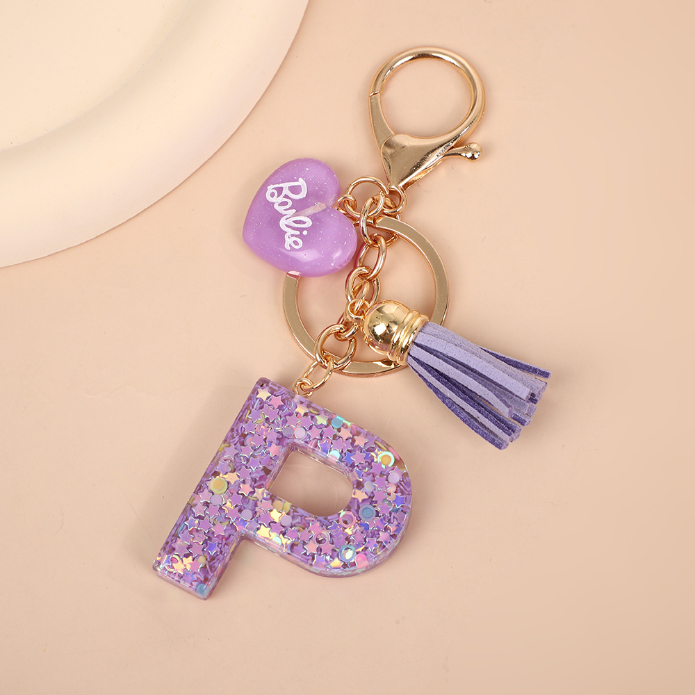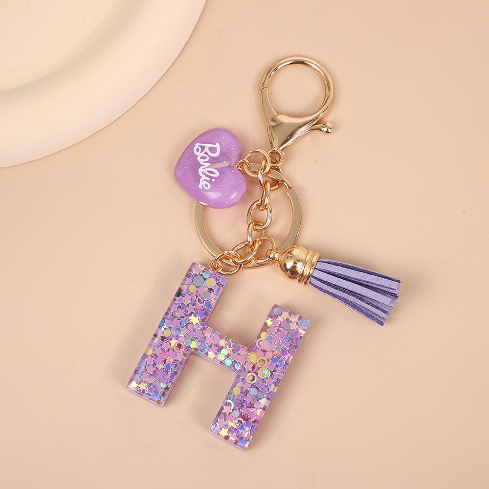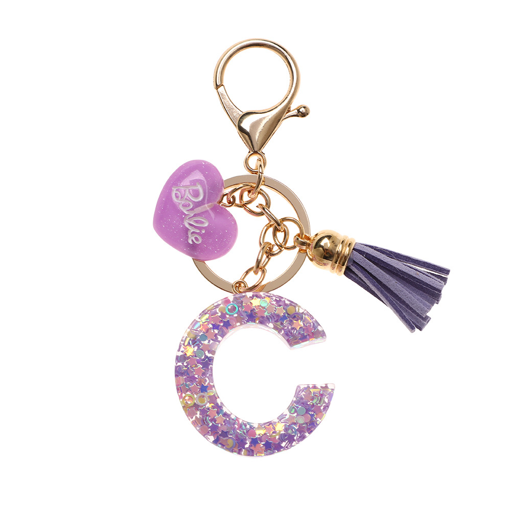 树脂26个英文字母钥匙扣字母首字母钥匙扣可爱心心形树脂流苏挂件