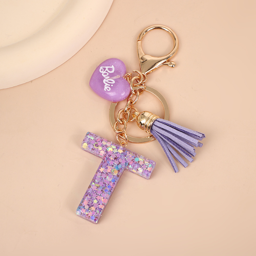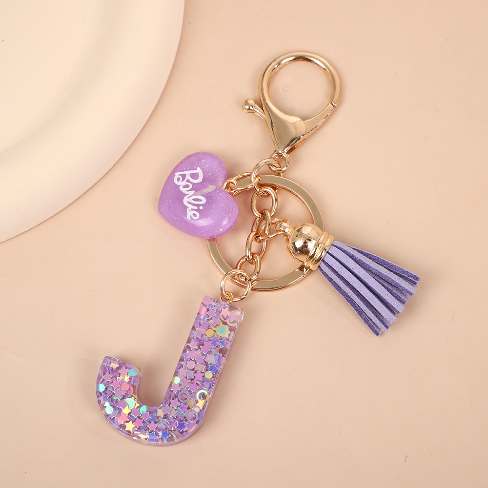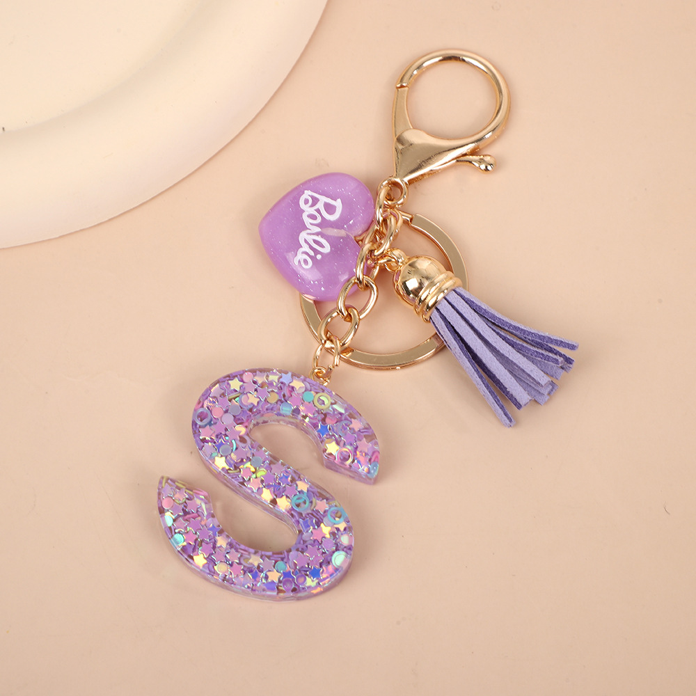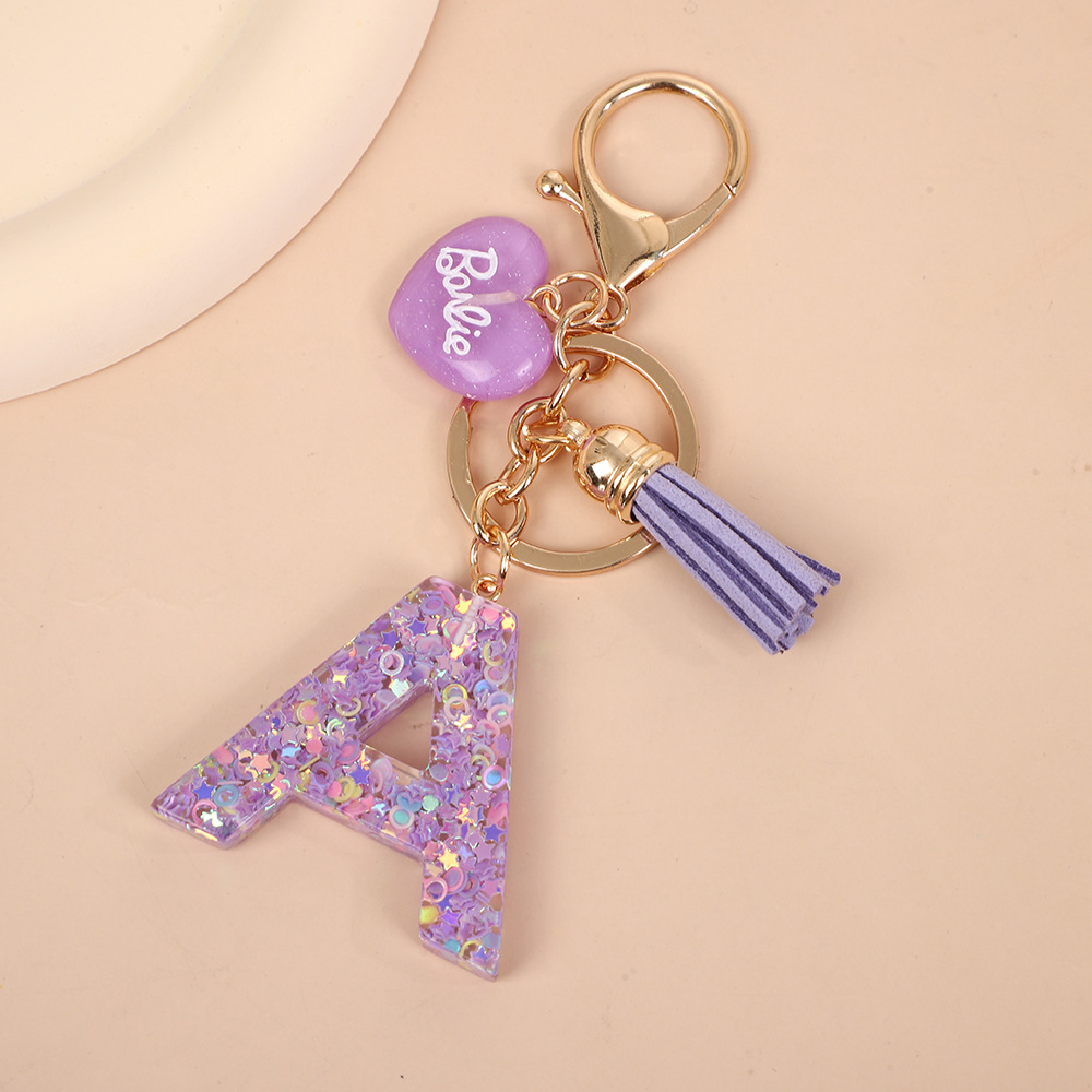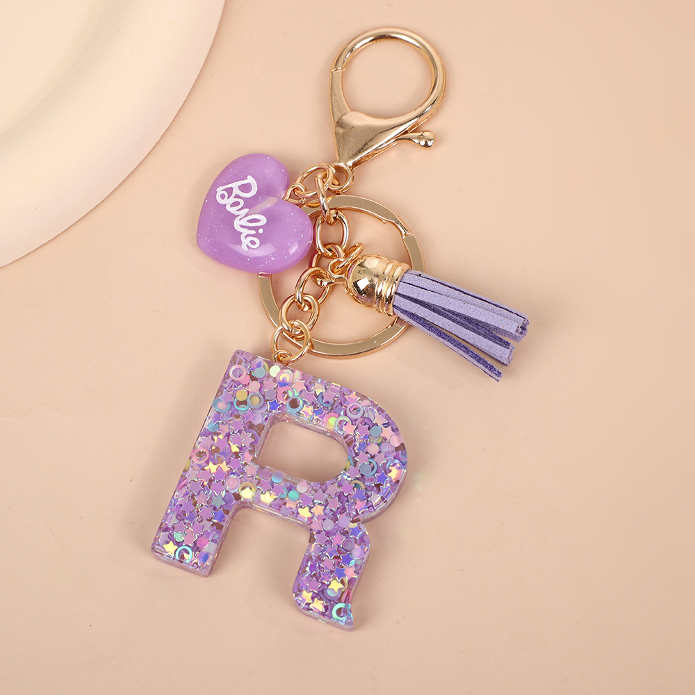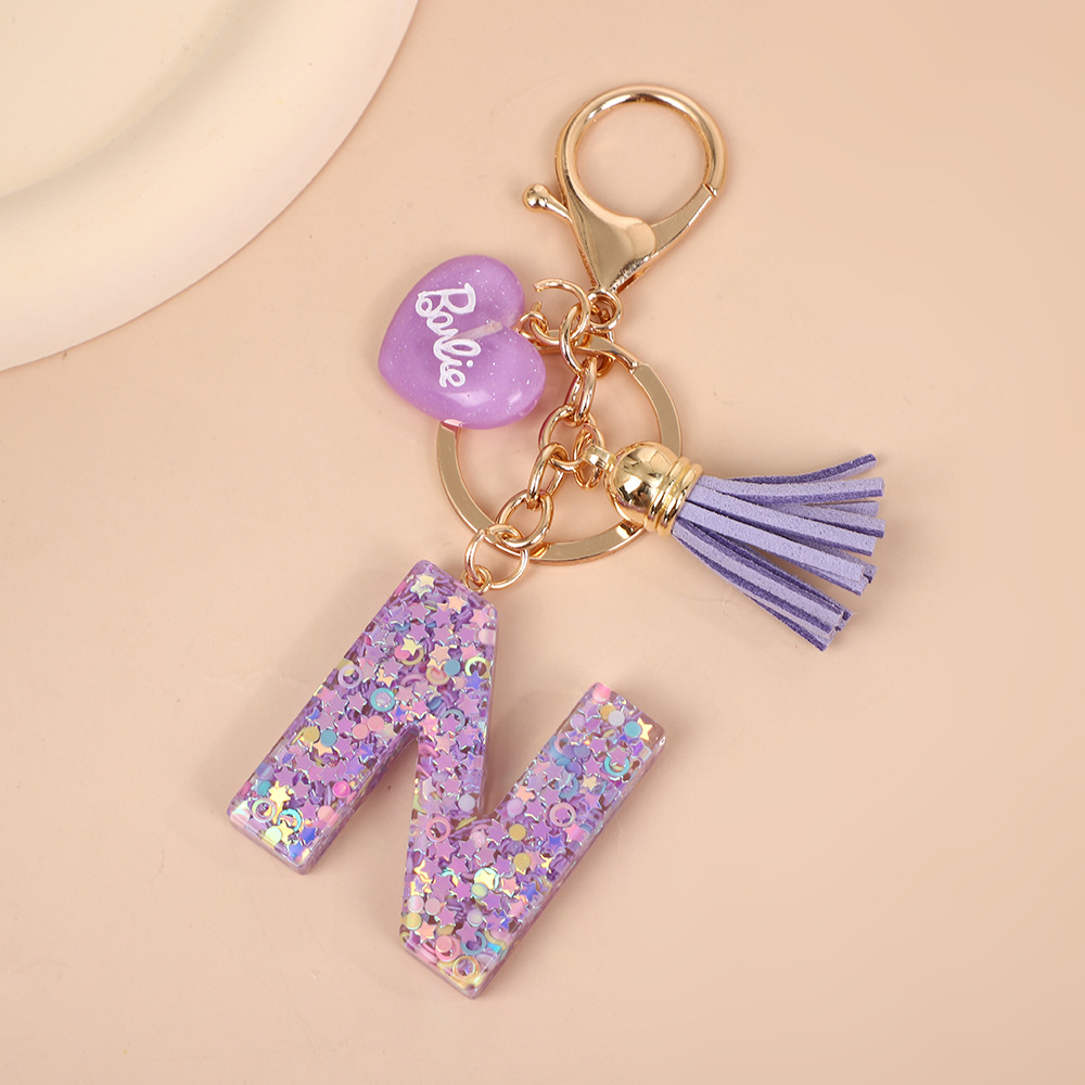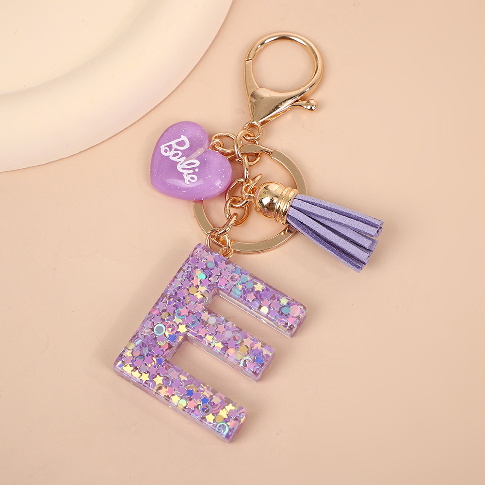 树脂26个英文字母钥匙扣字母首字母钥匙扣可爱心心形树脂流苏挂件