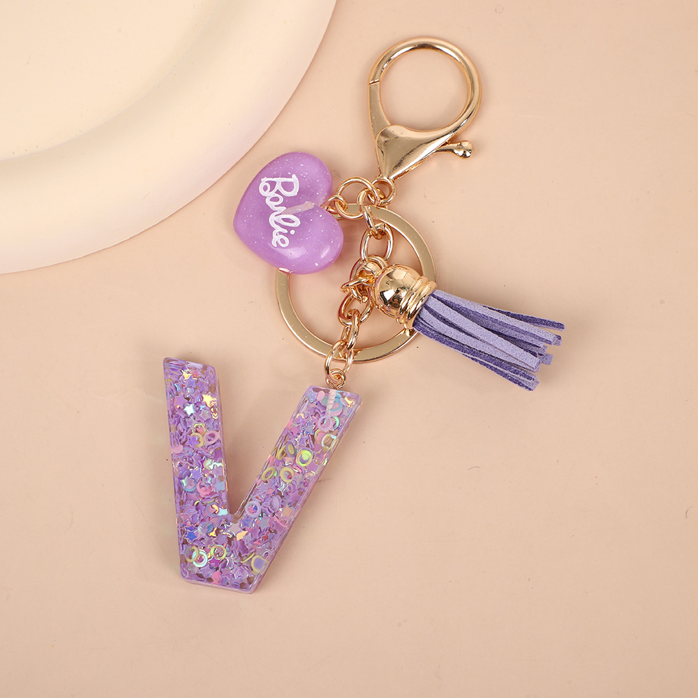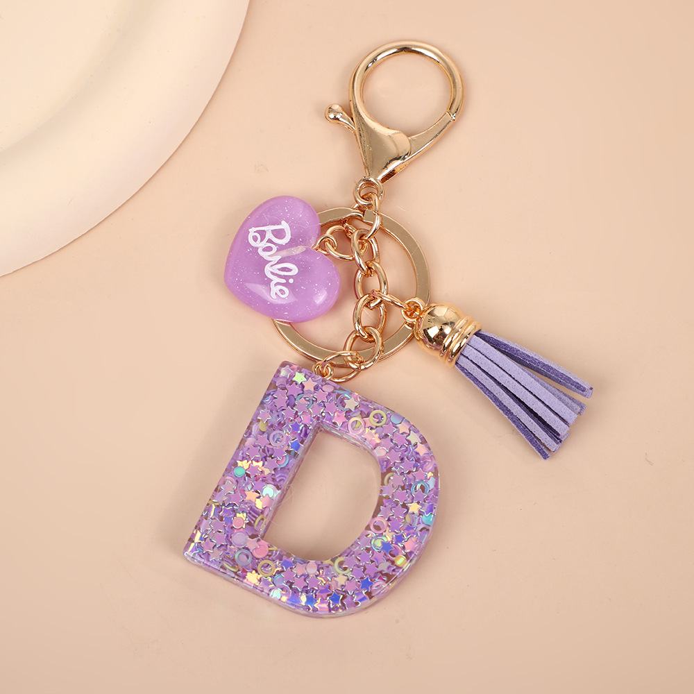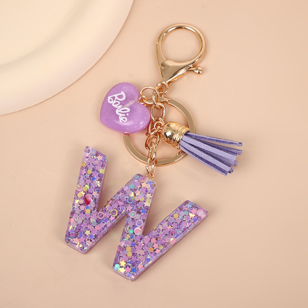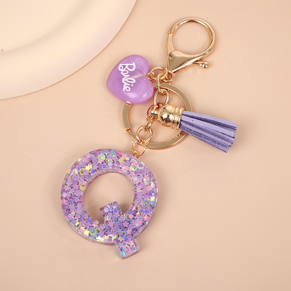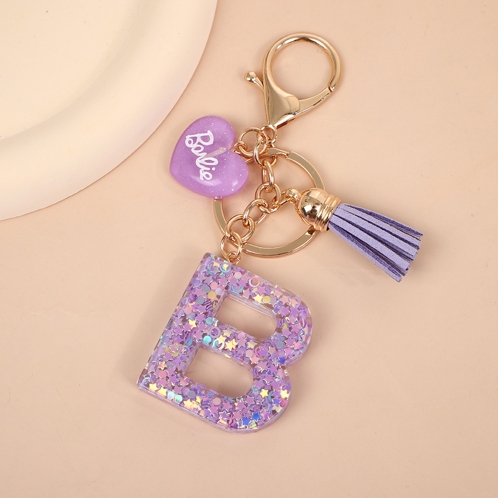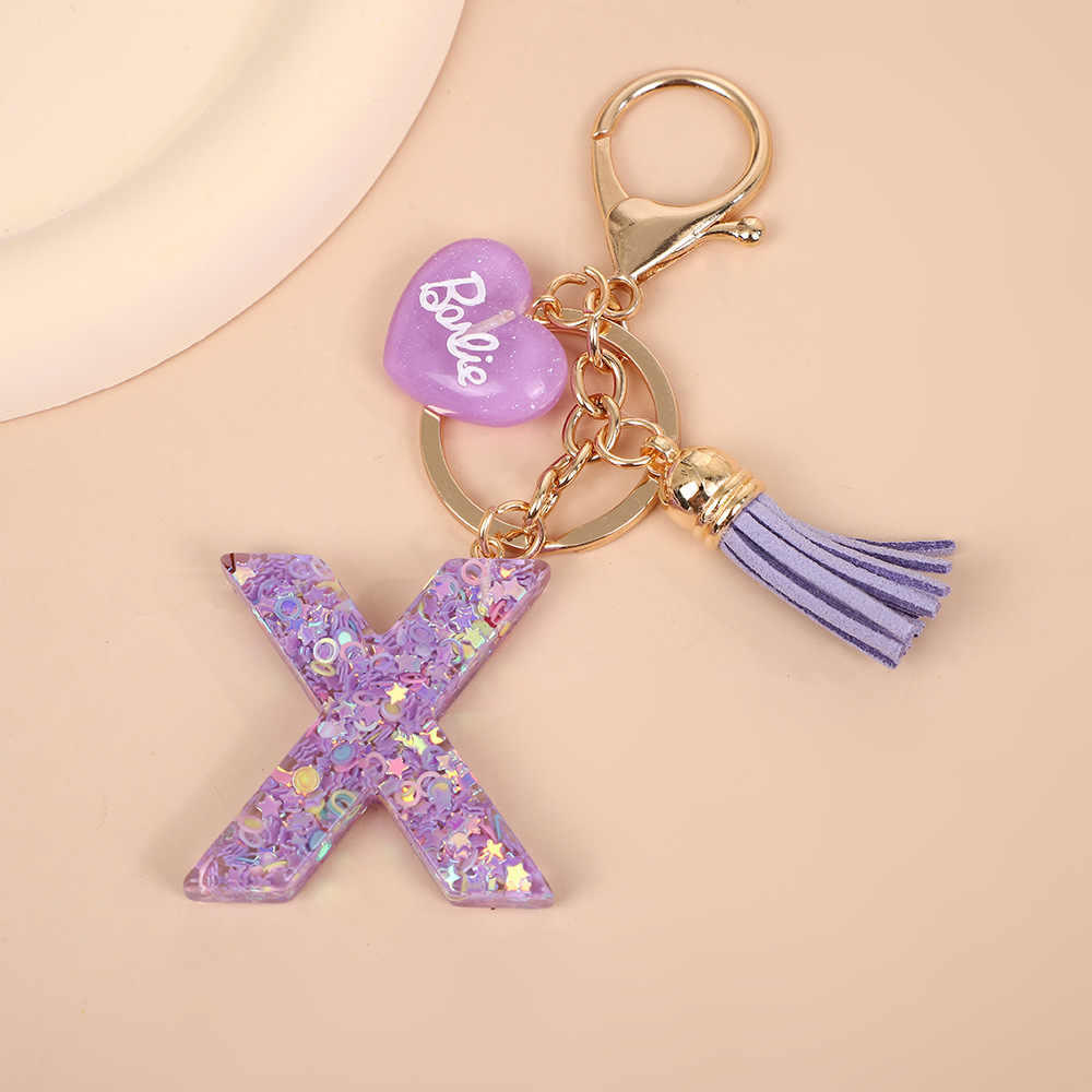 树脂26个英文字母钥匙扣字母首字母钥匙扣可爱心心形树脂流苏挂件