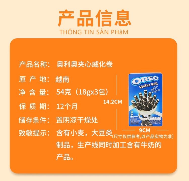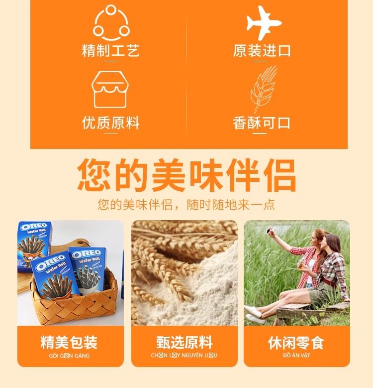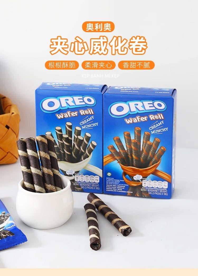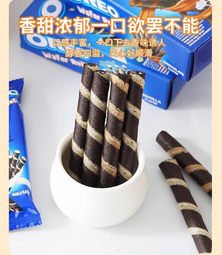 奥利奥巧克力香草味夹心威化卷办公室休闲儿童小零食54g