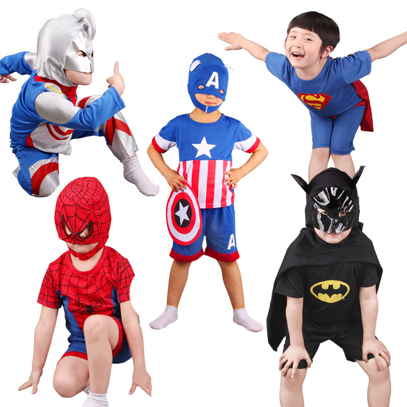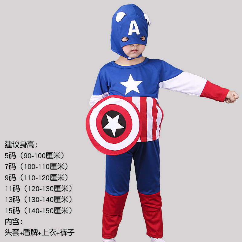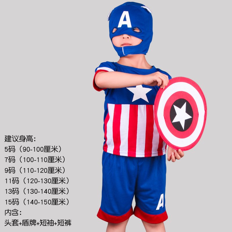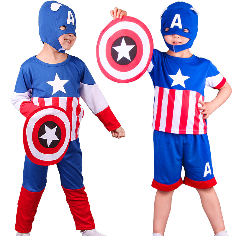 跨境万圣节男童cosplay漫威英雄长袖短袖美国队长蜘蛛侠衣服装扮