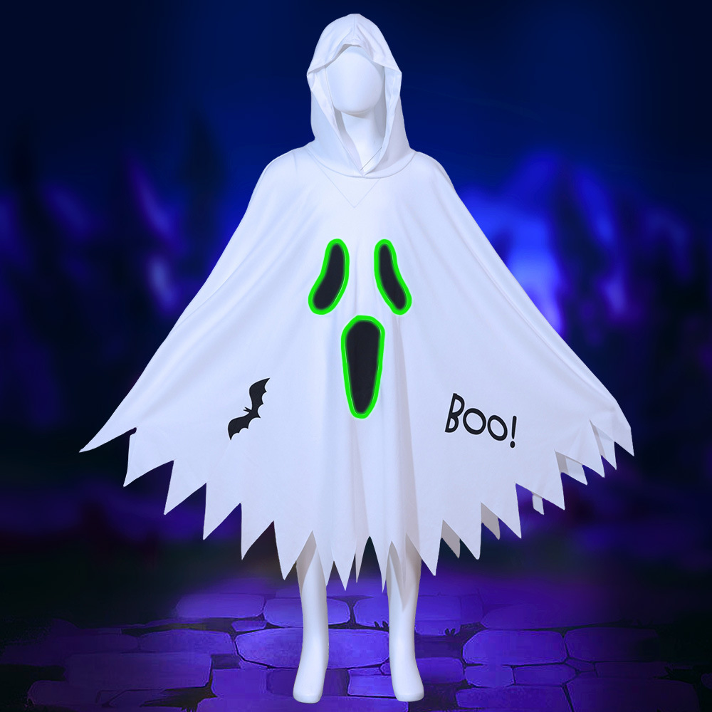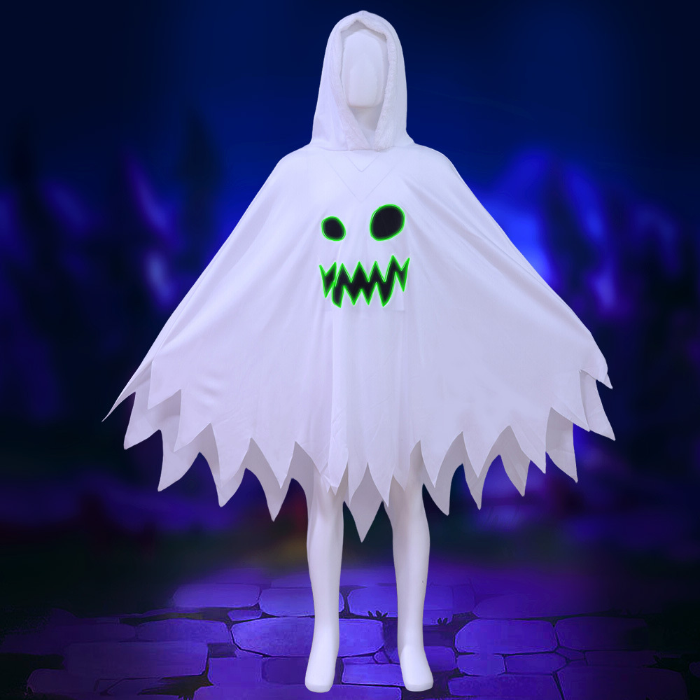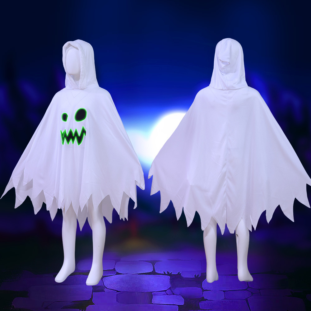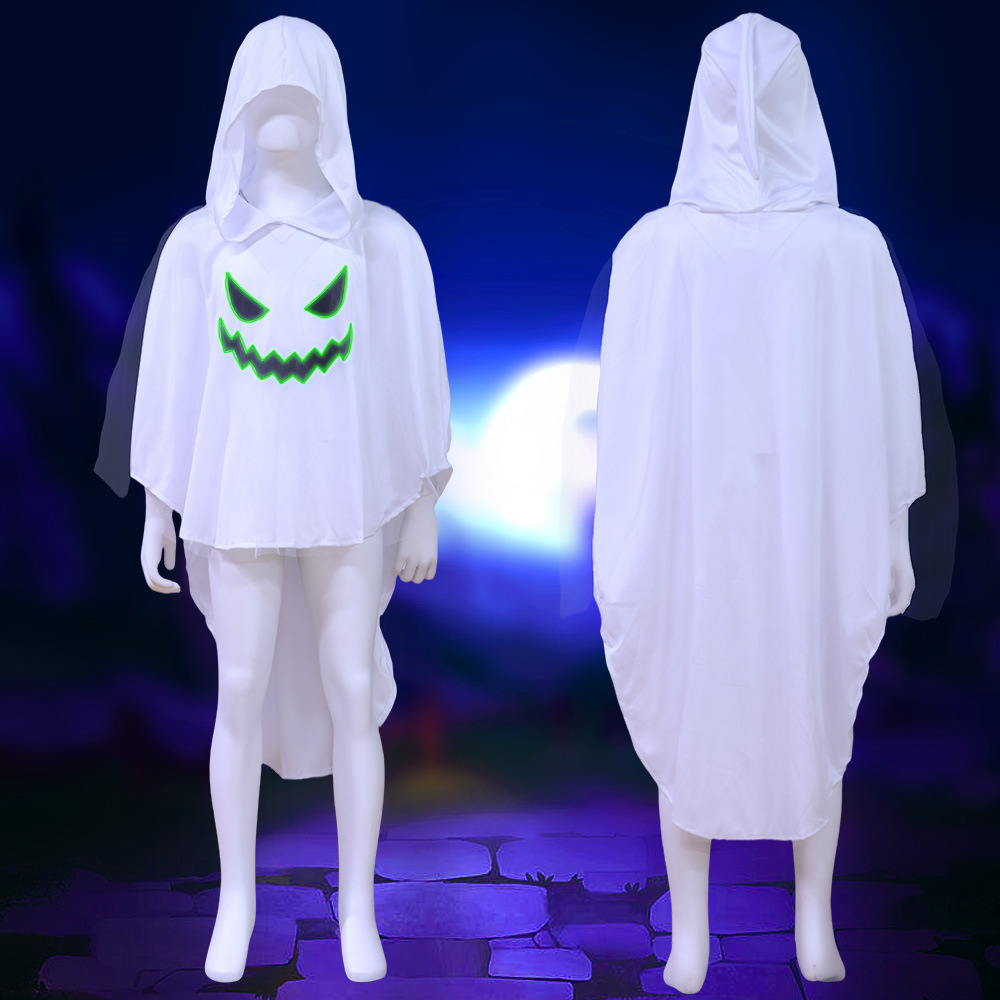 万圣节儿童衣服装扮白色夜光发光幽灵披风斗篷万圣派对聚会衣服