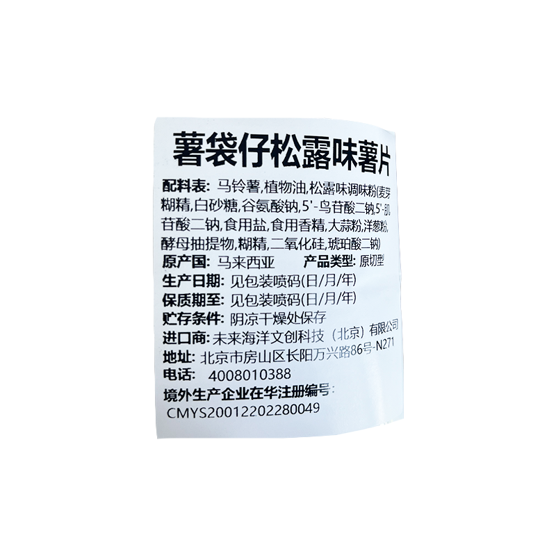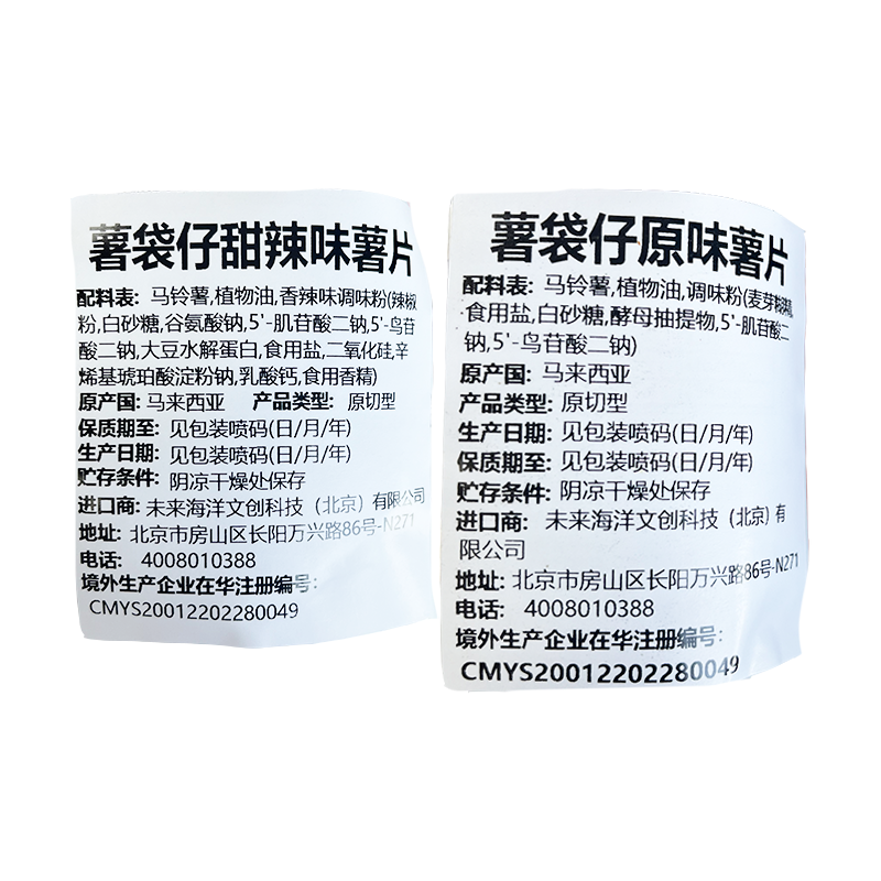 马来西亚进口薯袋仔原味甜辣味松露味薯片袋装60g