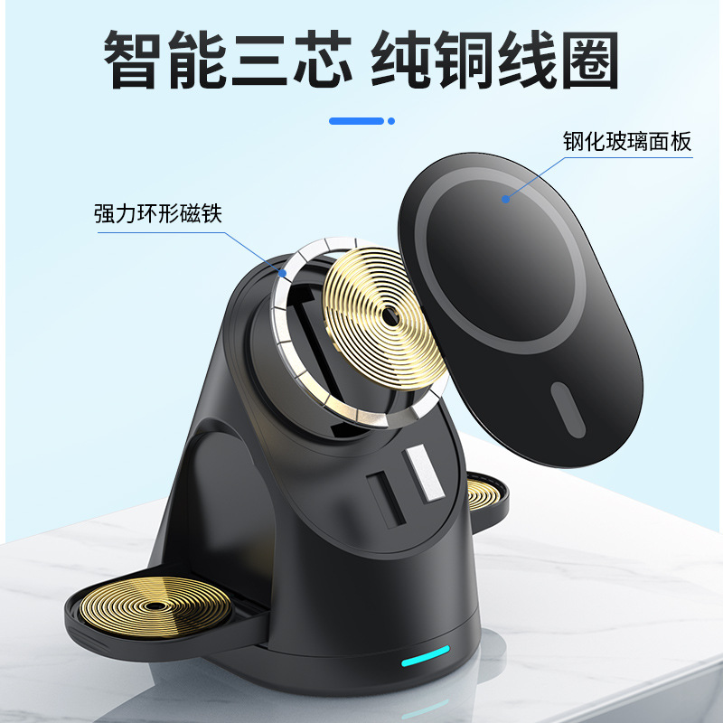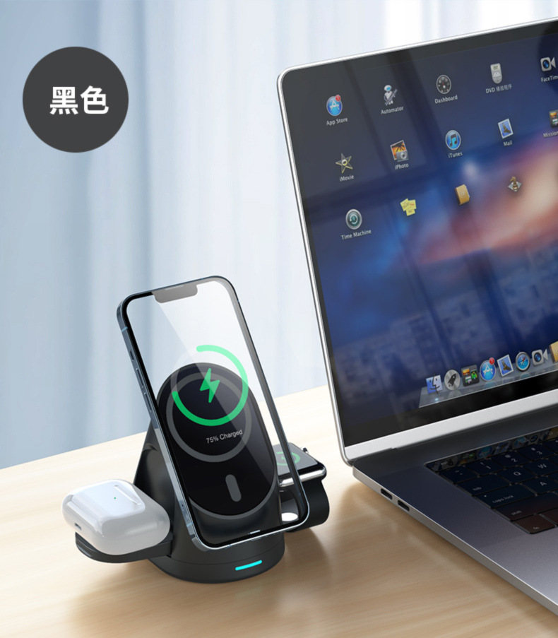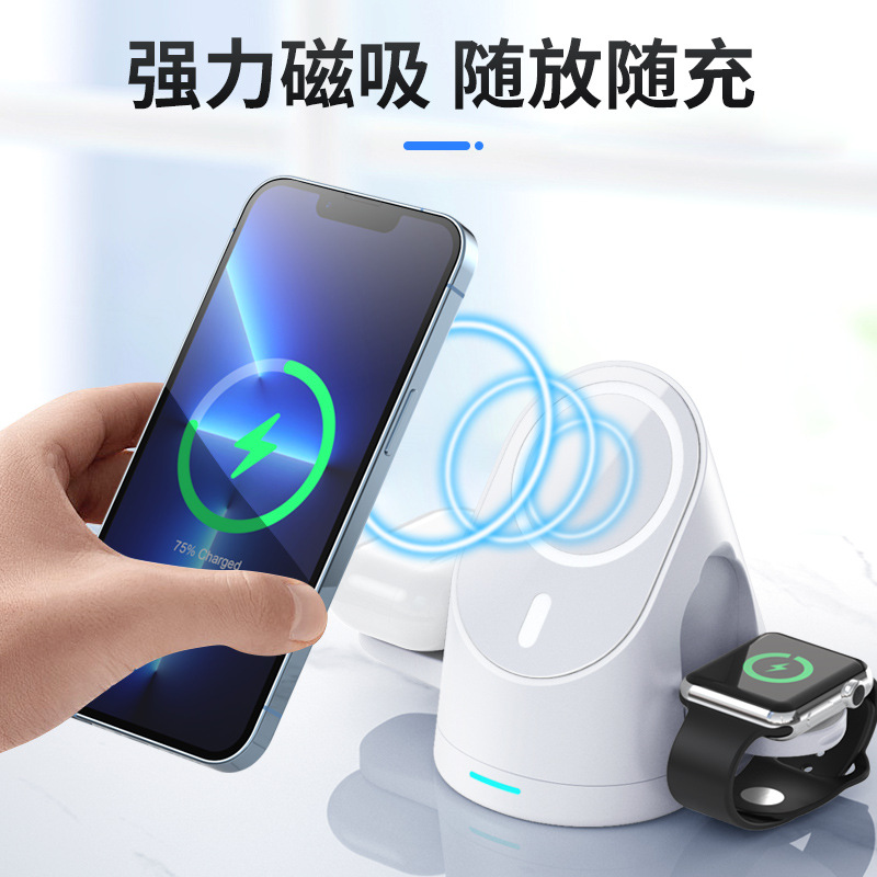 供应折叠magsafe磁吸无线充电器三合一适用苹果14手机8代手表耳机