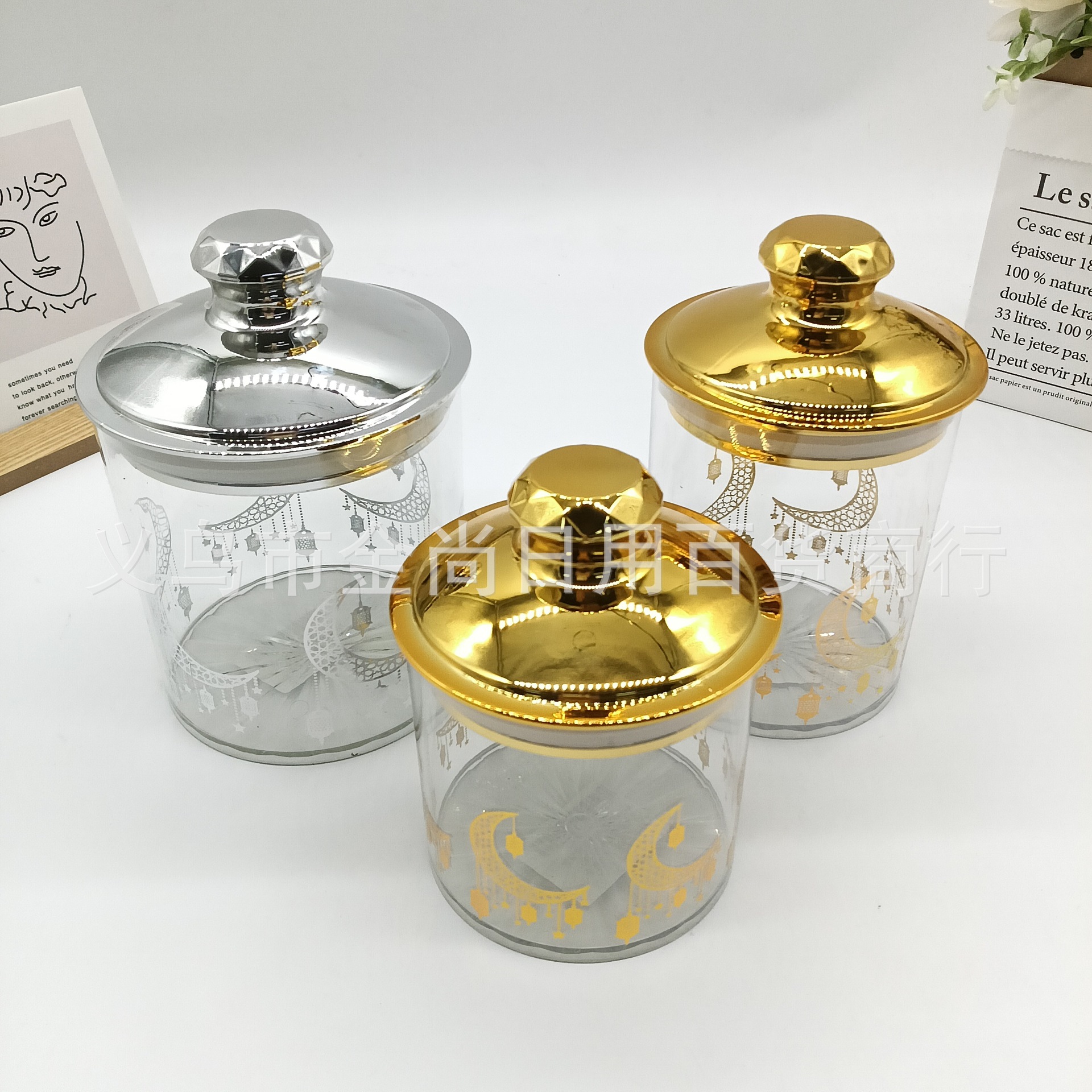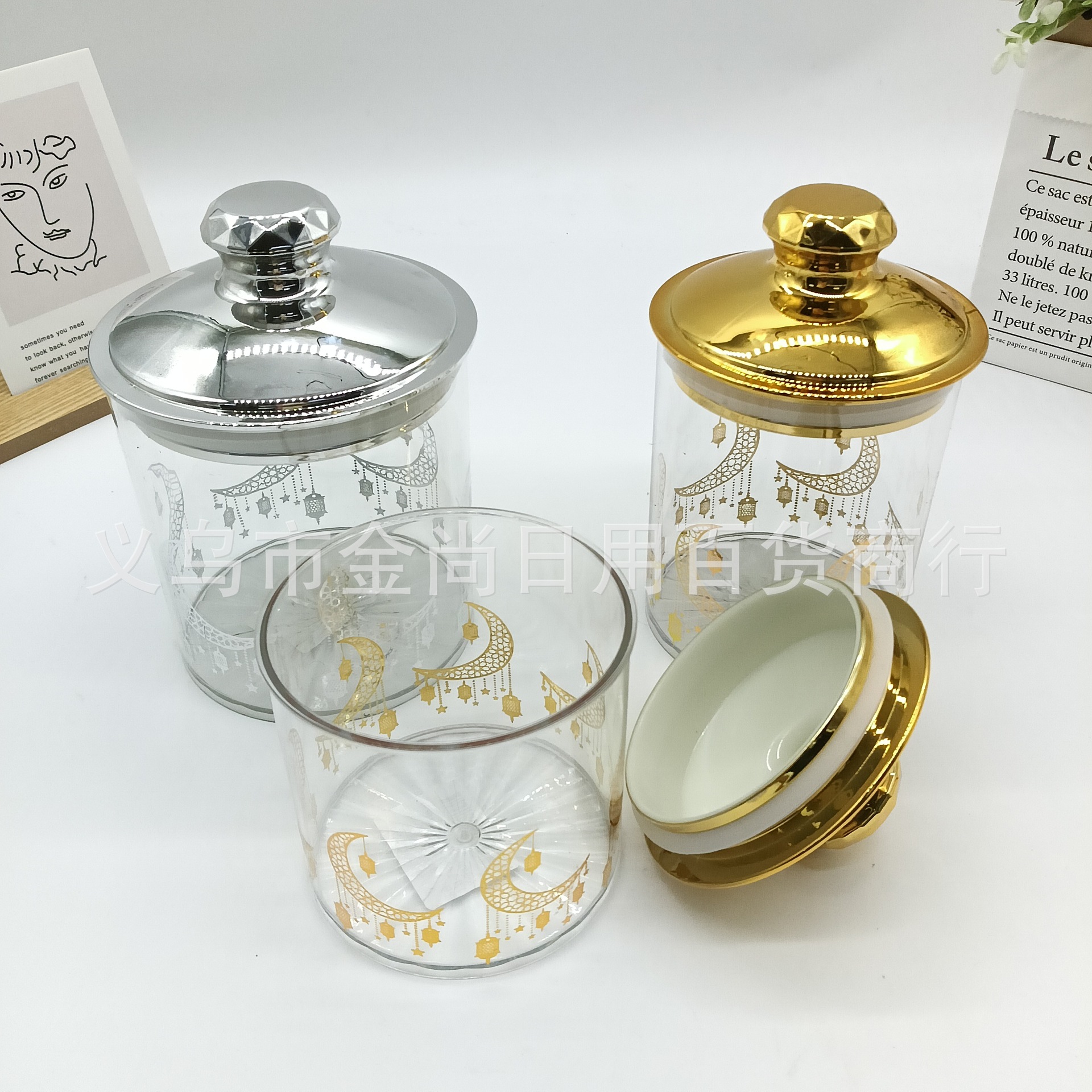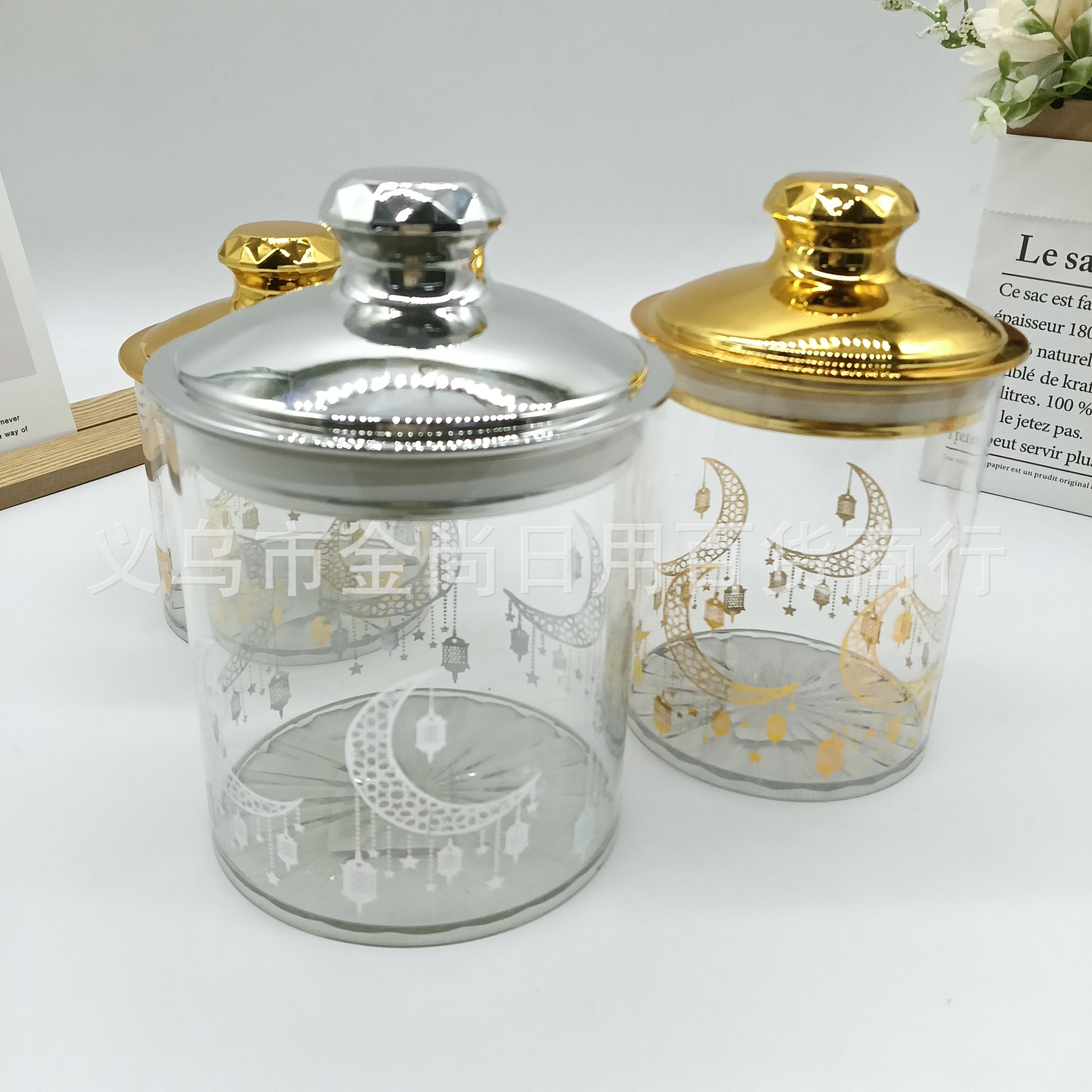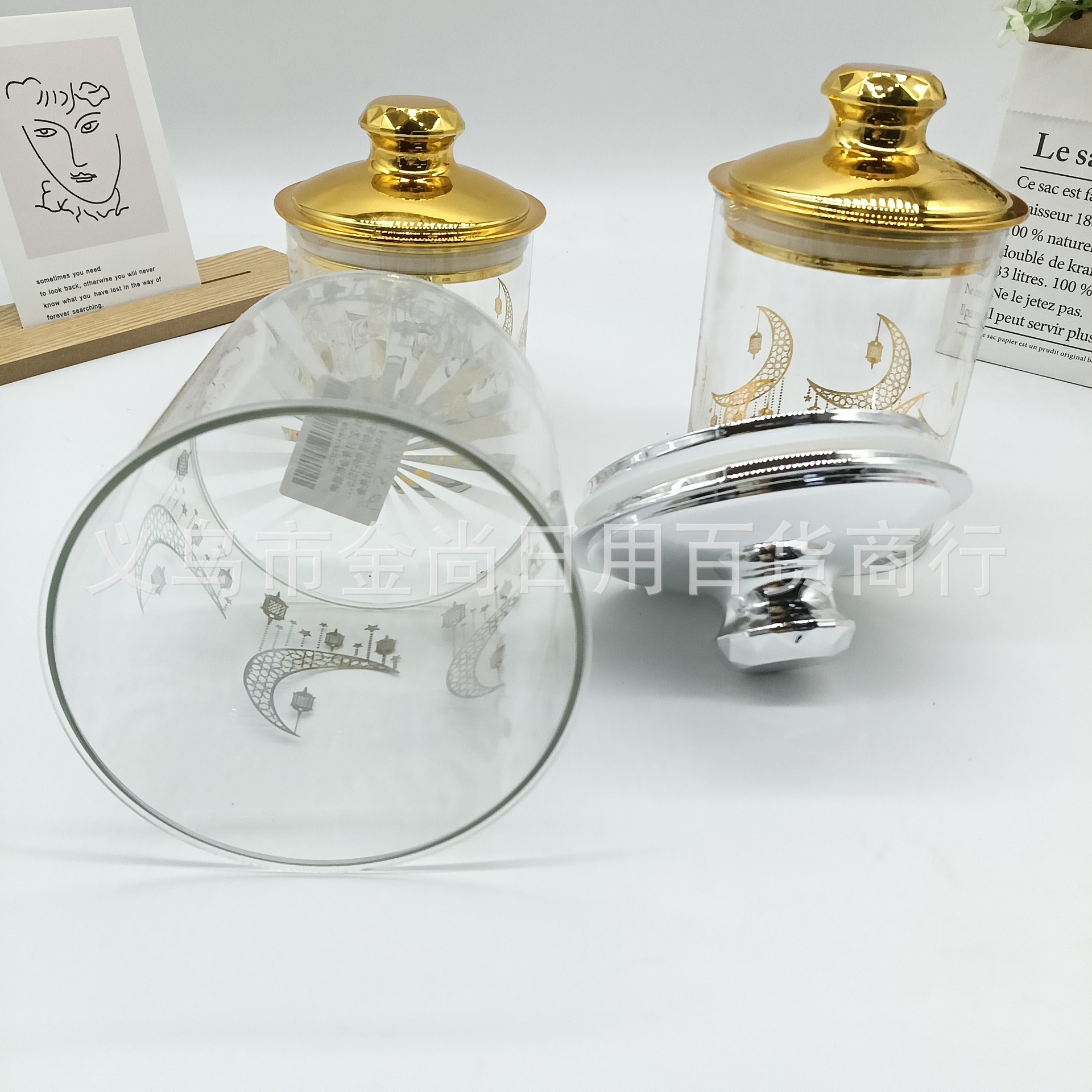 外贸新款茶叶罐糖果罐厨房密封罐圆形金色银色提手储物罐客厅批发