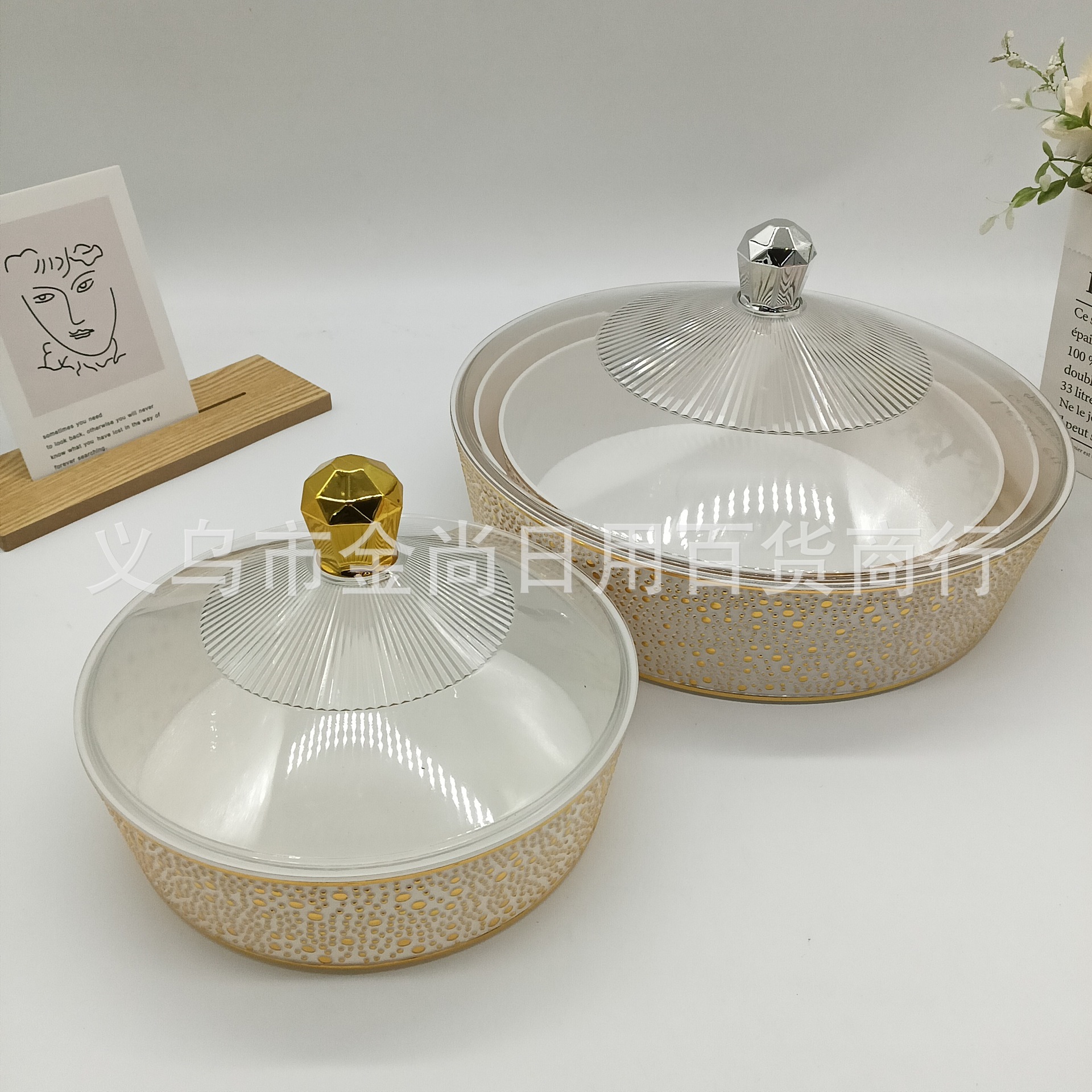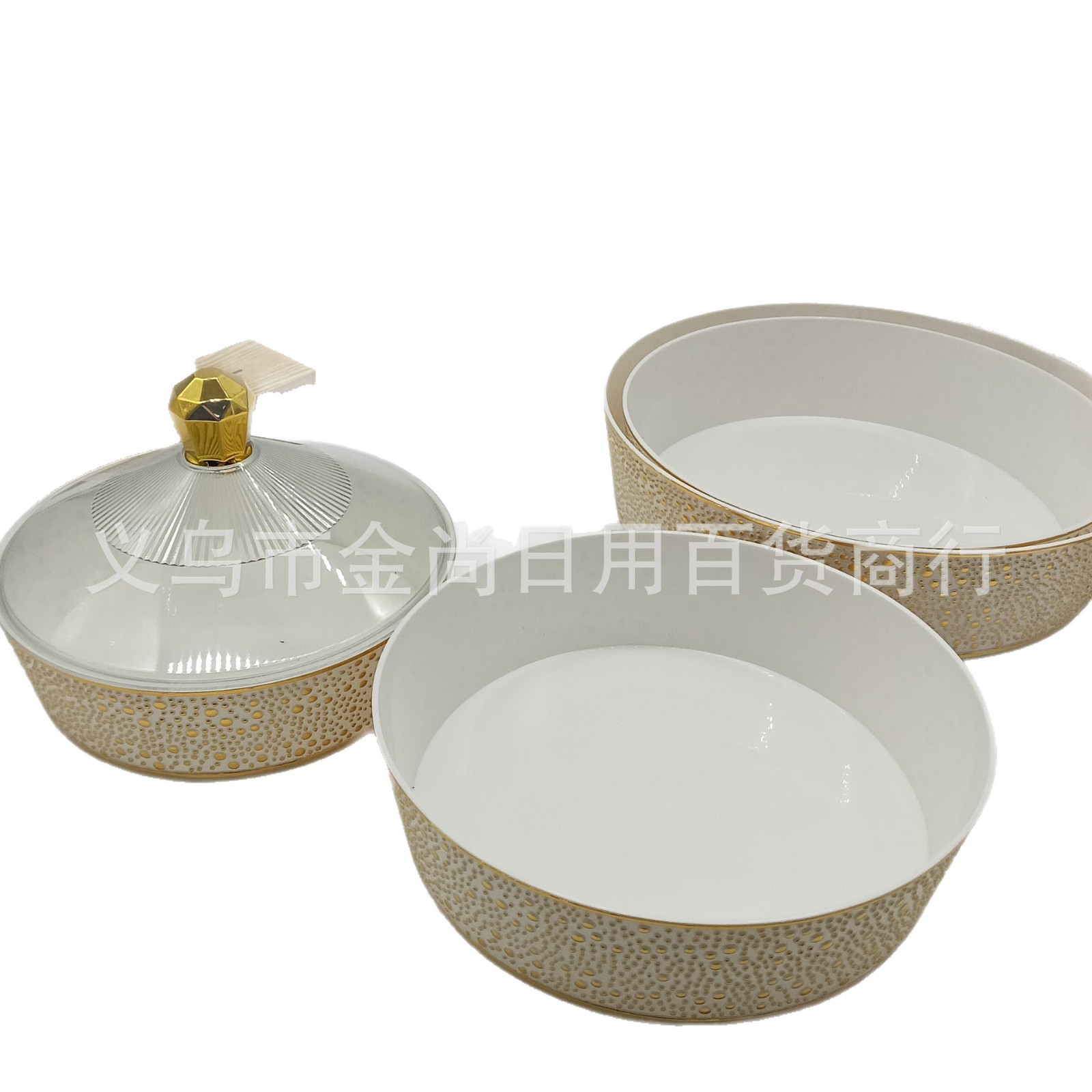 跨境奶白色珍珠纹水果盘轻奢圆形金边桌面果盘带盖批发