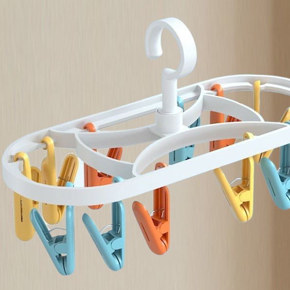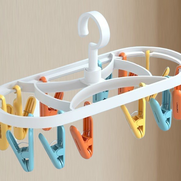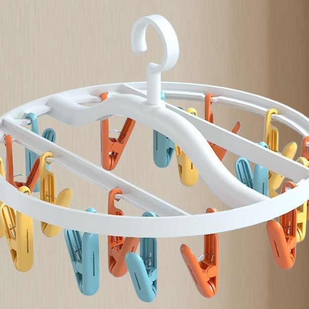 彩色晾衣架圆形晾衣架宿舍高颜值晾晒防多夹子晒袜子跨境批发